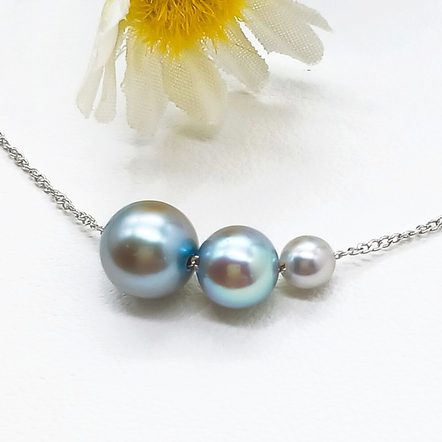 SVあこやグレー真珠3ピーススルーネックレス・長さ40センチ(商品番号15-875)