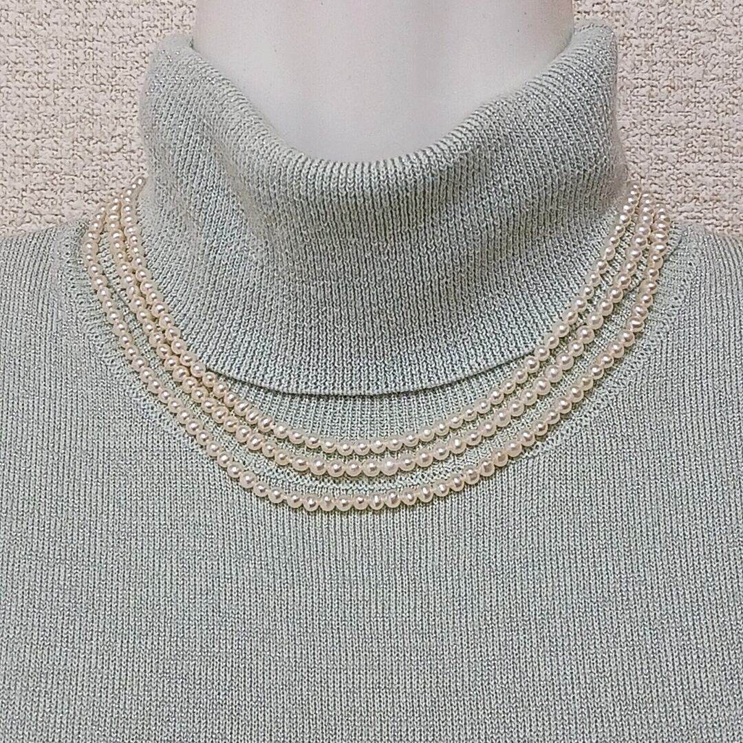 照りにこだわって仕入れた可愛いサイズの淡水真珠で作製したロングネックレスです。