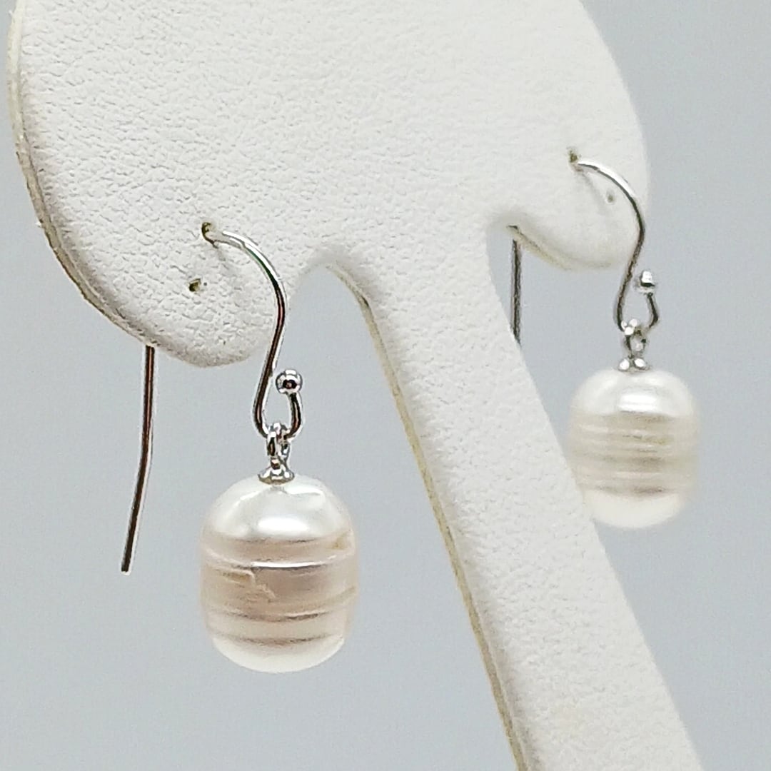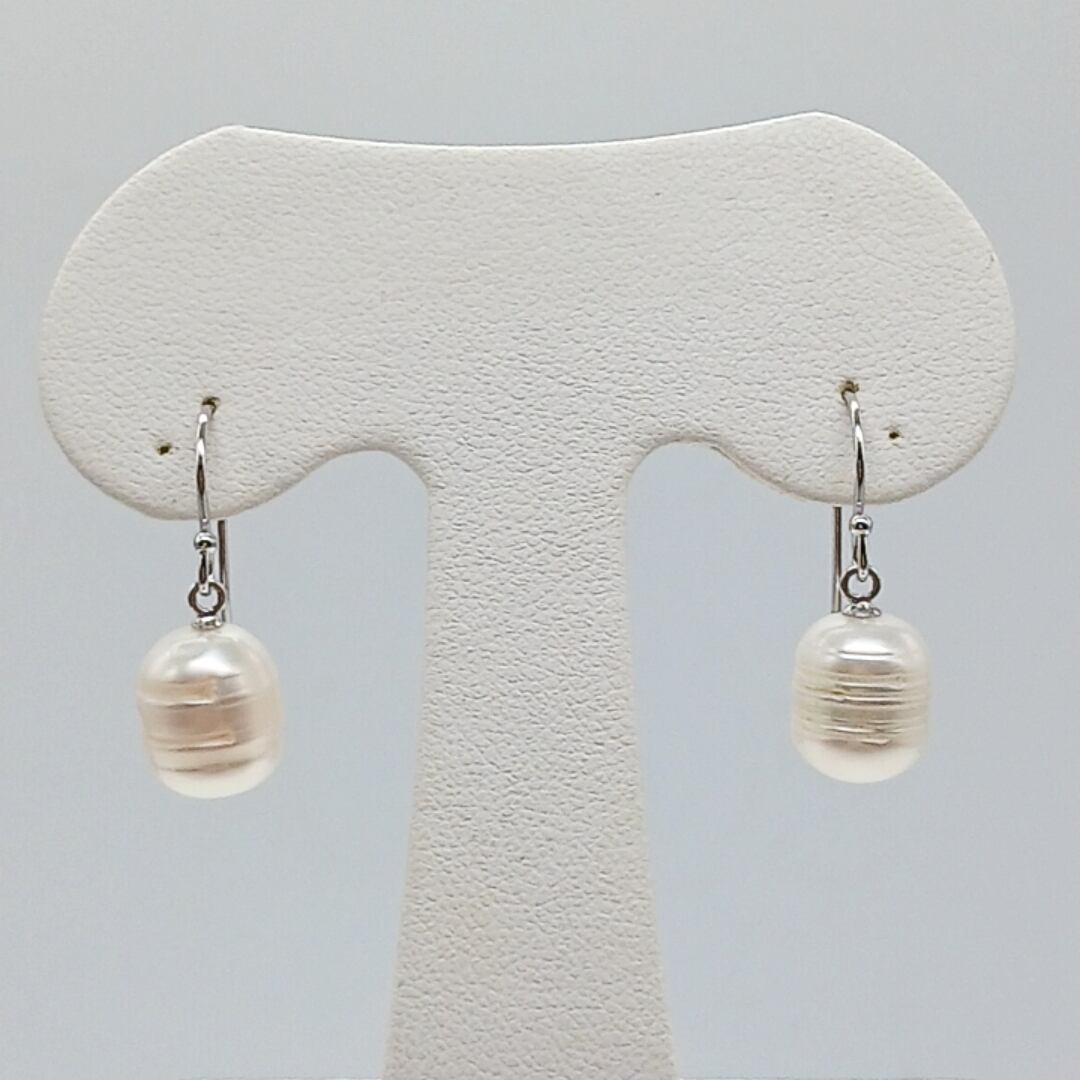 SV淡水真珠フックピアス・貫通珠・ホワイト系ライス型バロック(商品番号14-796)