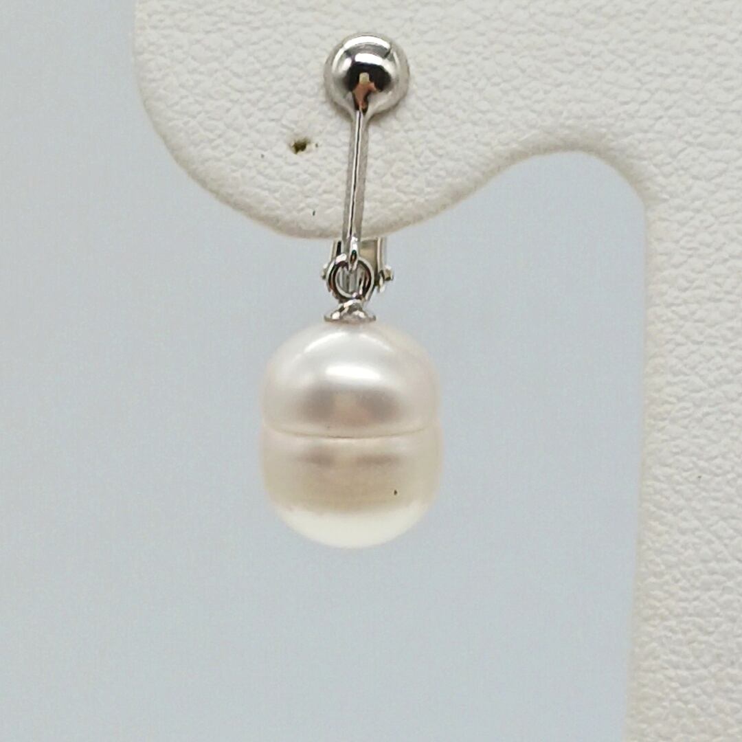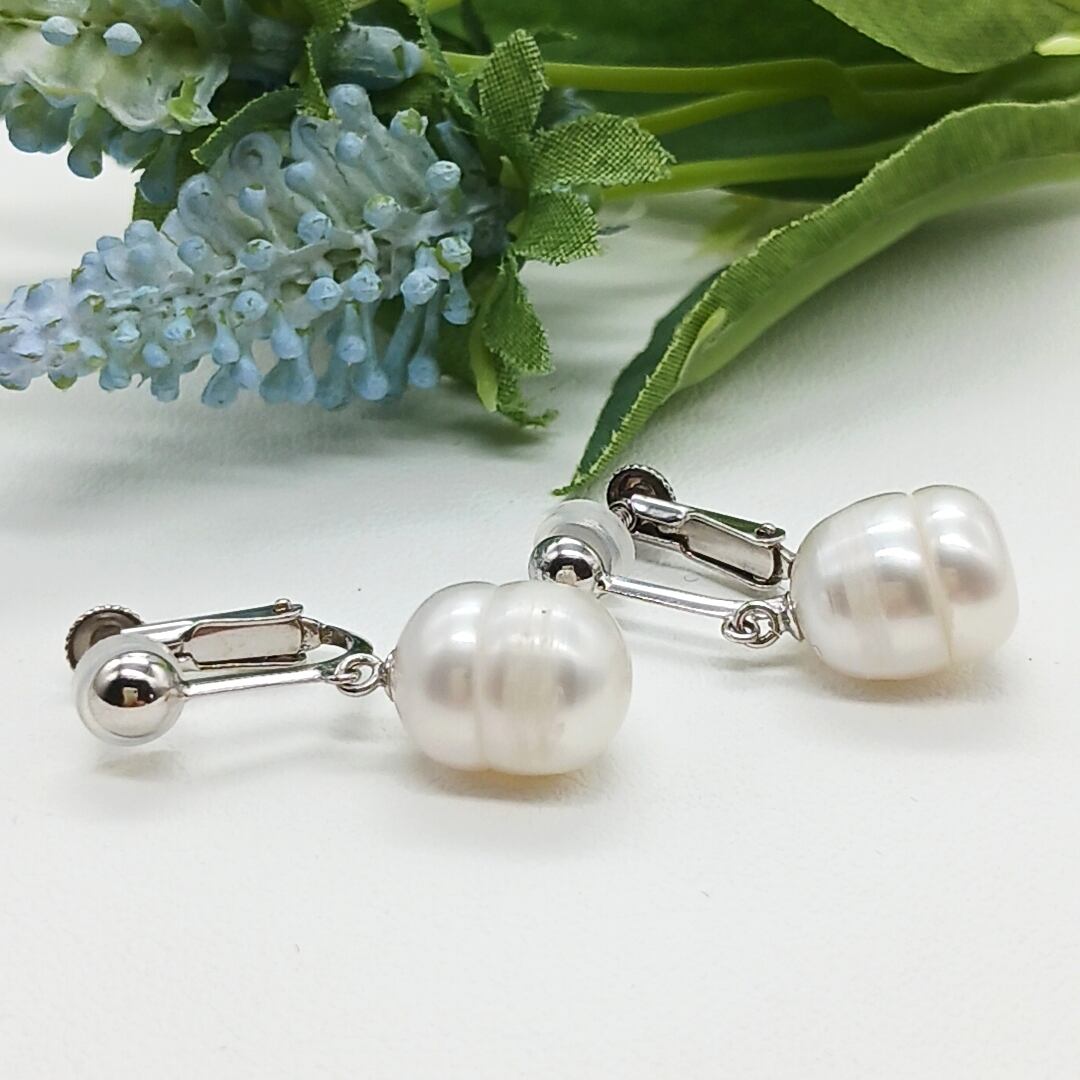 SV淡水真珠ぶら下がりイヤリング・貫通珠・ホワイト系バロック(商品番号14-797)