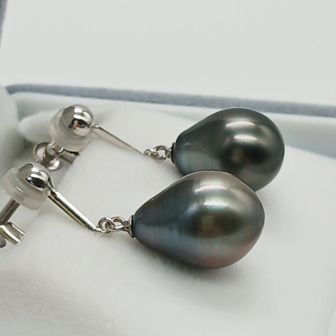 SV雫型南洋黒蝶真珠イヤリング・横幅10~10、5×縦約13ミリ(商品番号14-811)