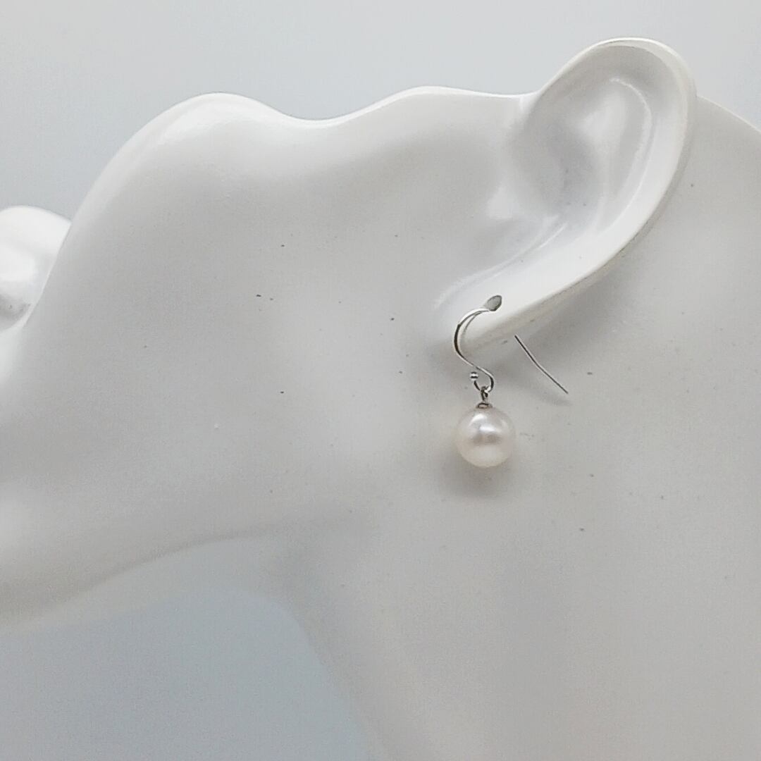 SV淡水真珠フックピアス・9、3ミリ貫通珠(商品番号14-817)