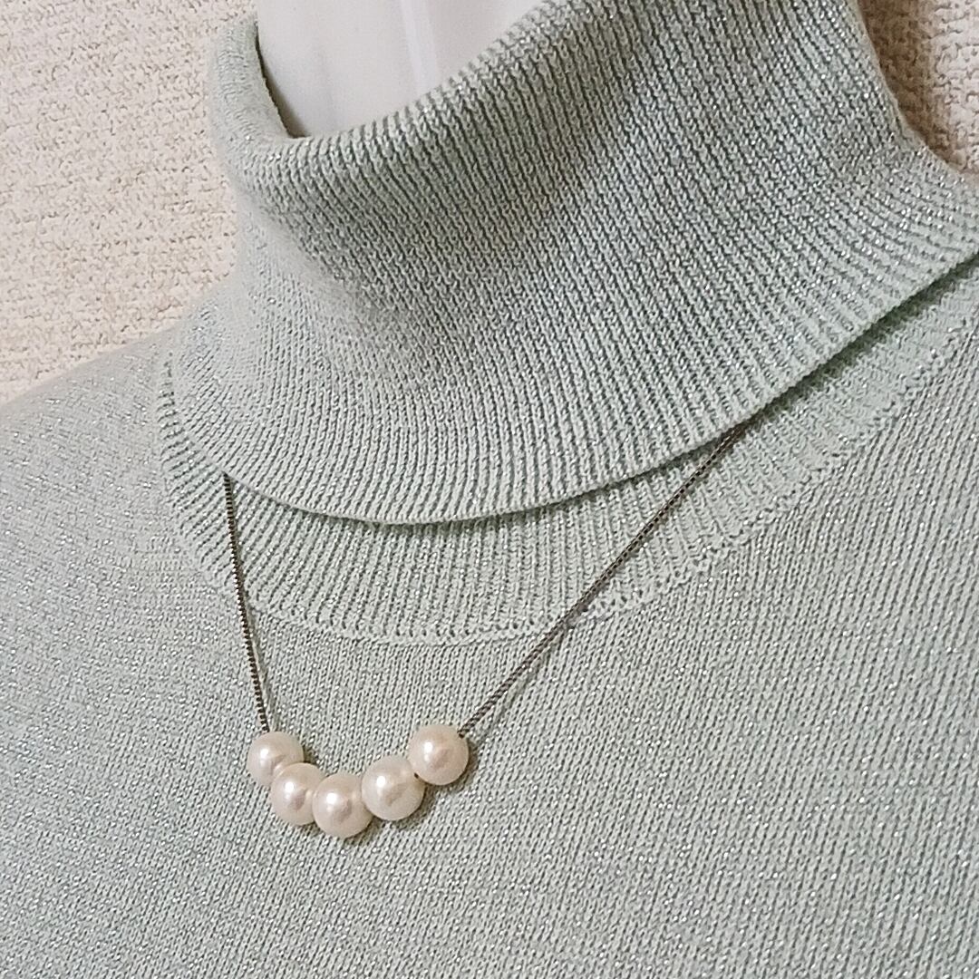 淡水真珠5ピーススルーネックレス・サージカルステンレスチェーン(商品番号14-819)
