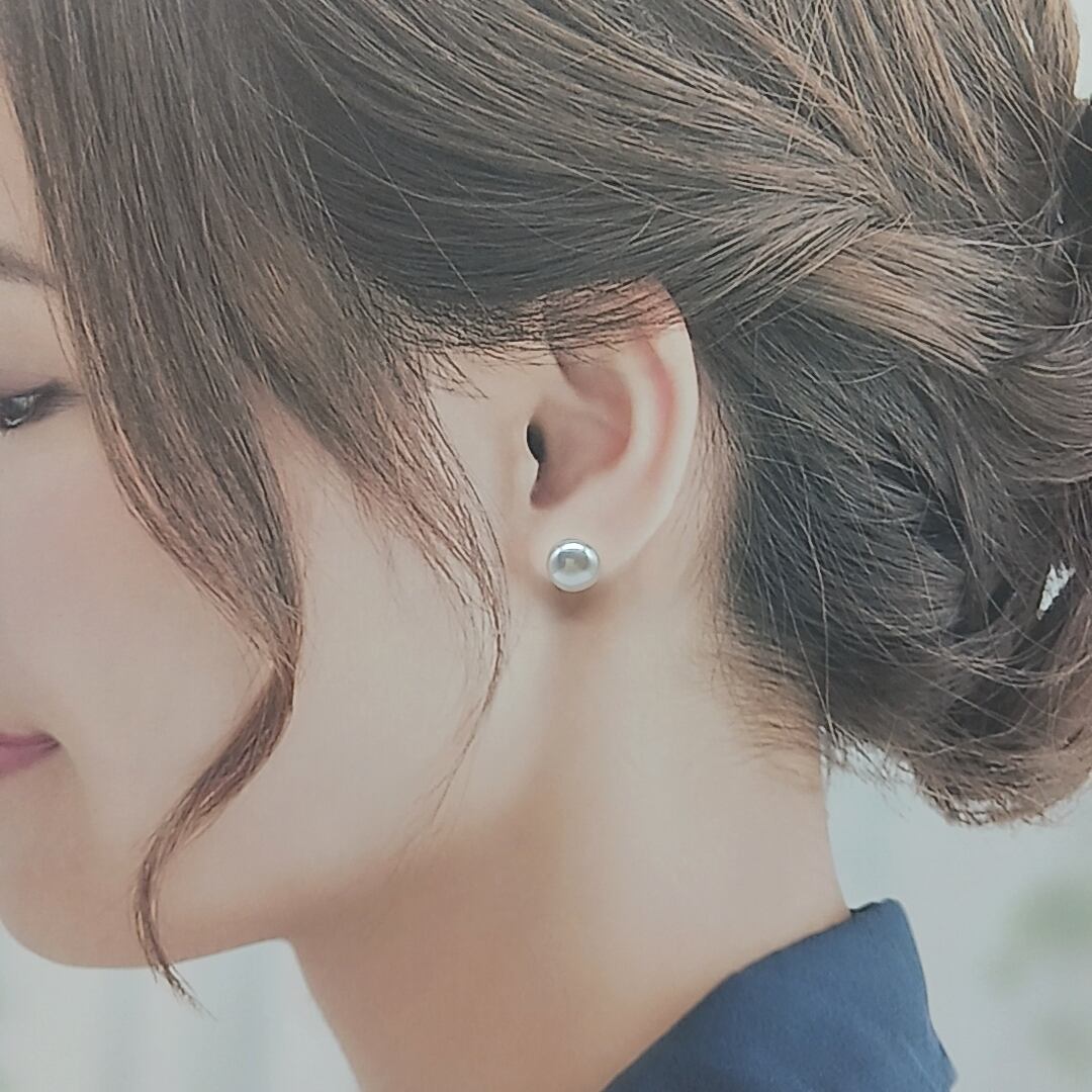 照りの良いボタン型淡水真珠の直付けタイプのピアスです。