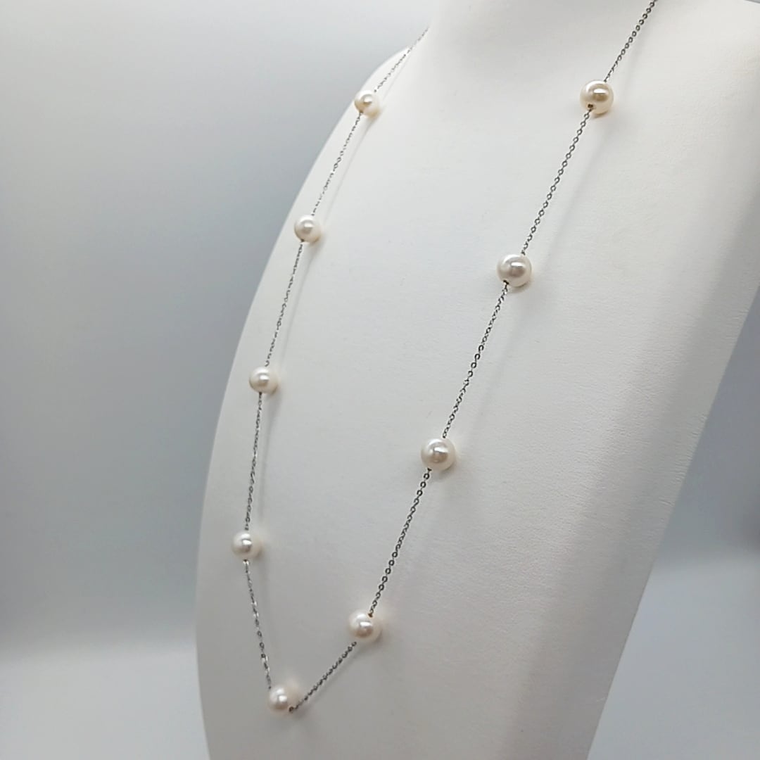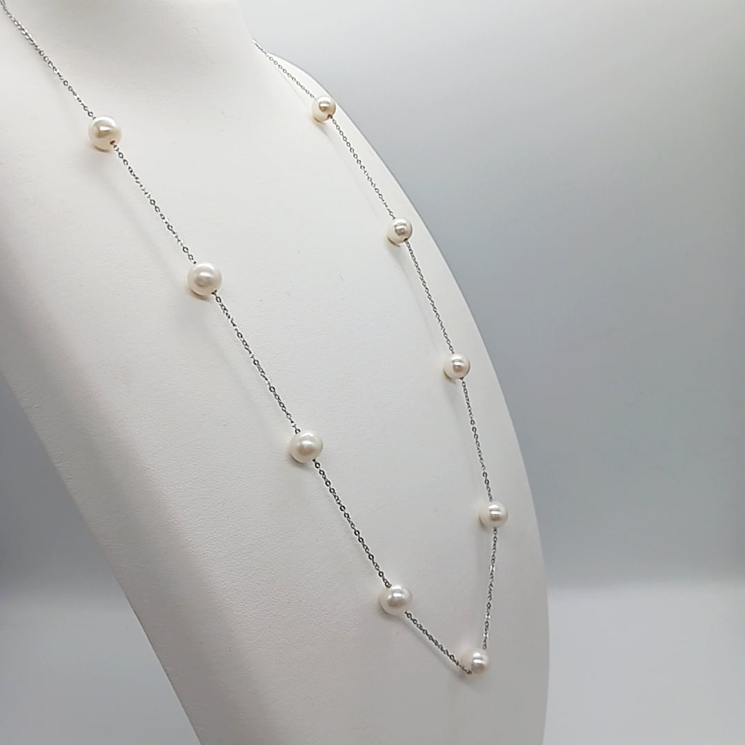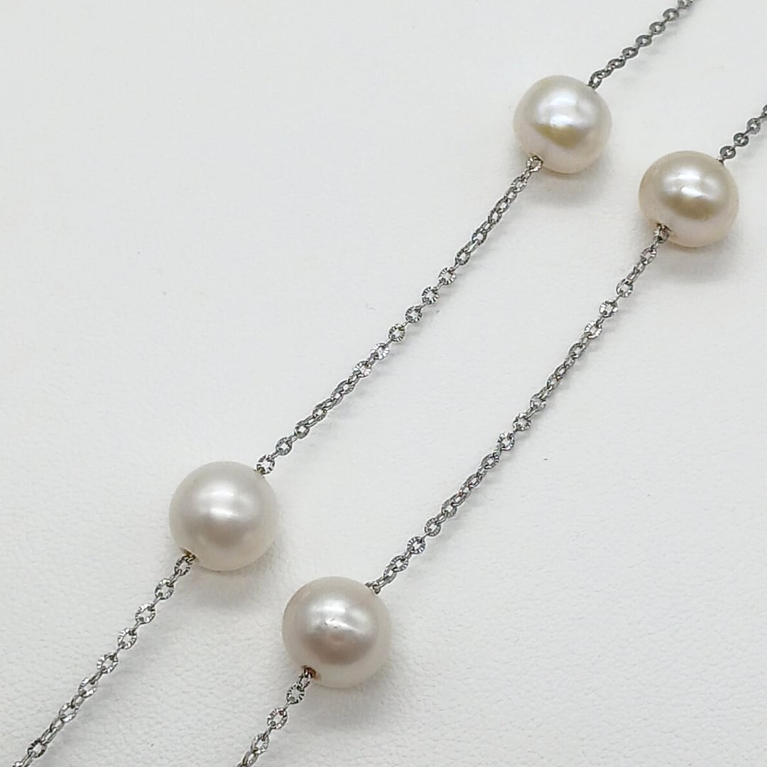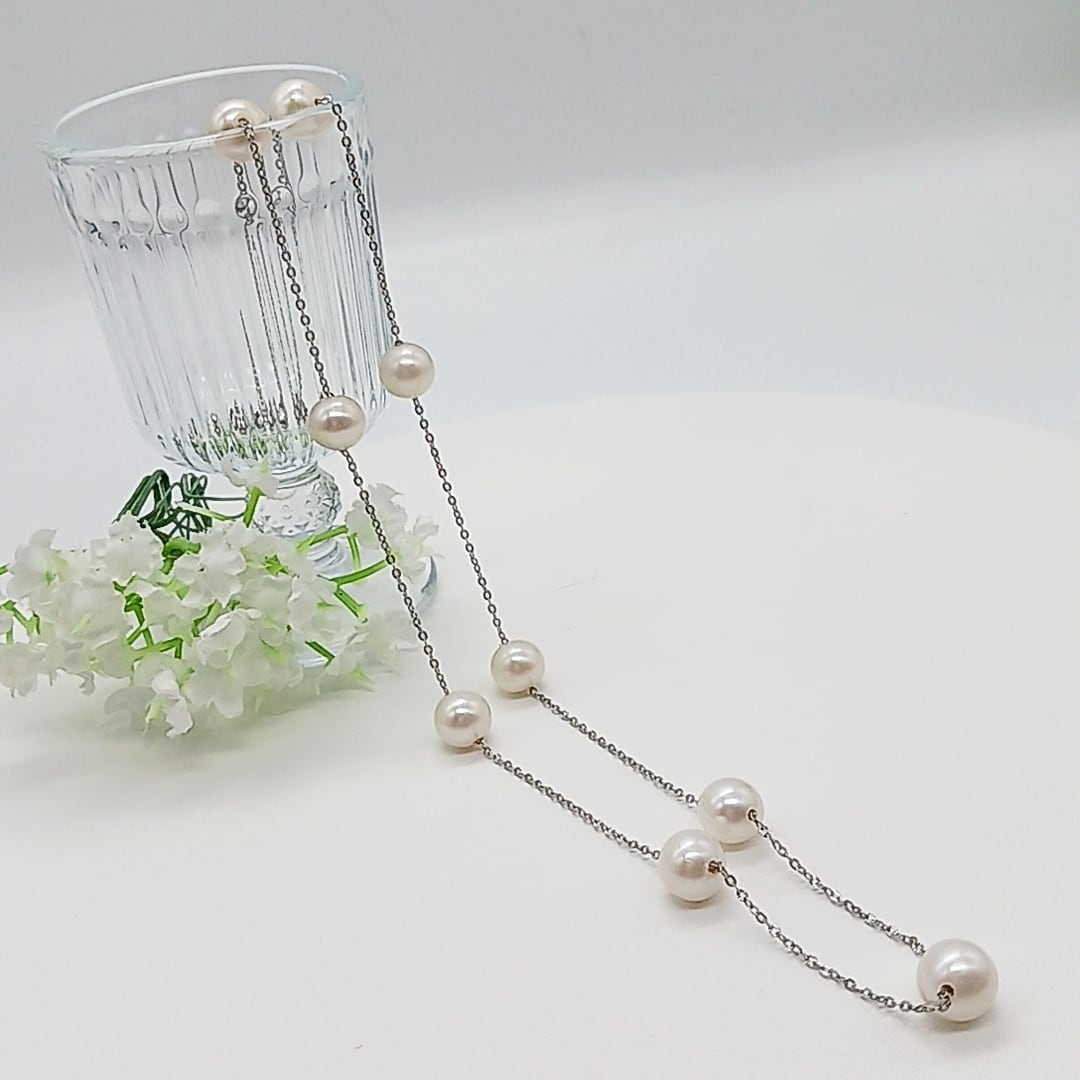 淡水真珠をチェーンに均等に配置した、