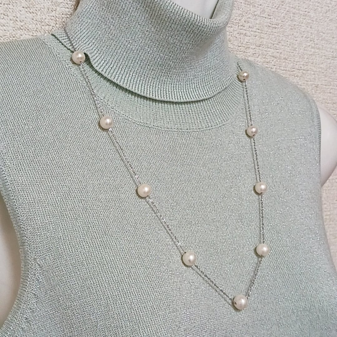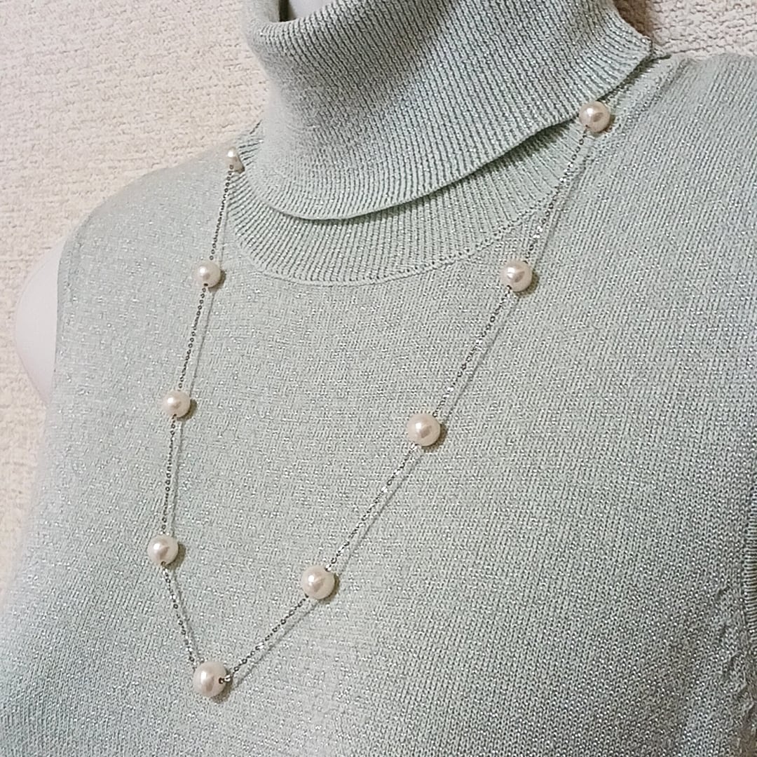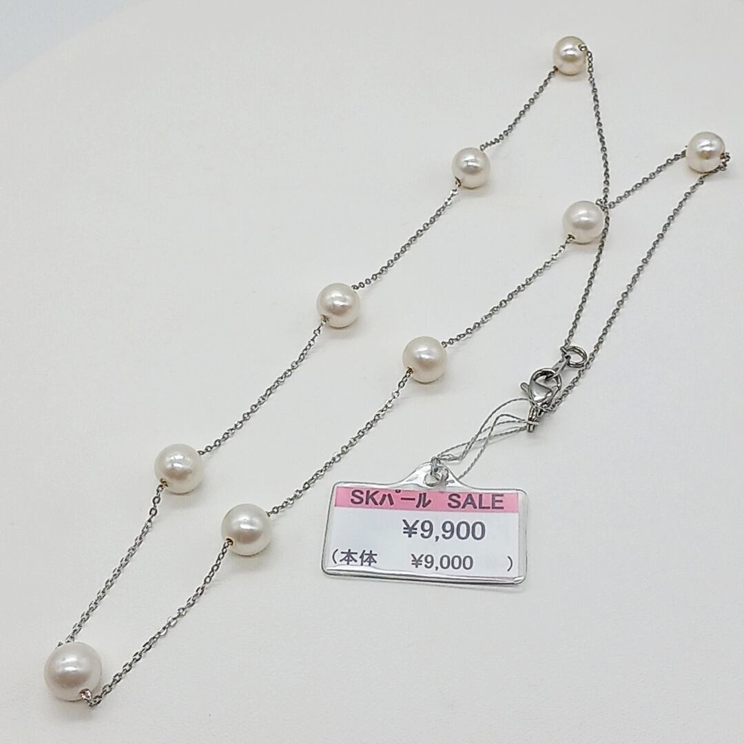 【訳あり商品】淡水真珠ステーションネックレス・サージカルステンレスチェーン(商品番号14-832)