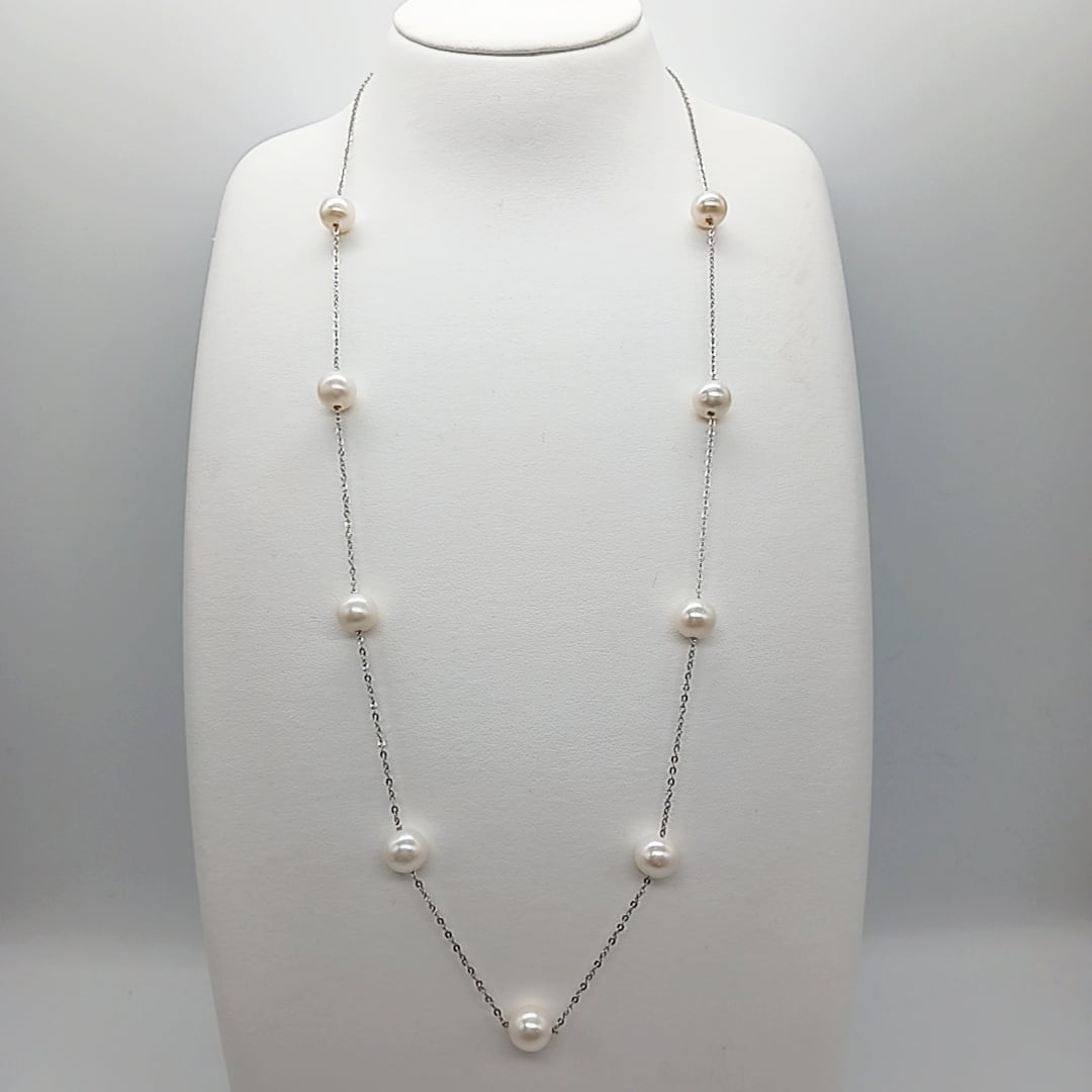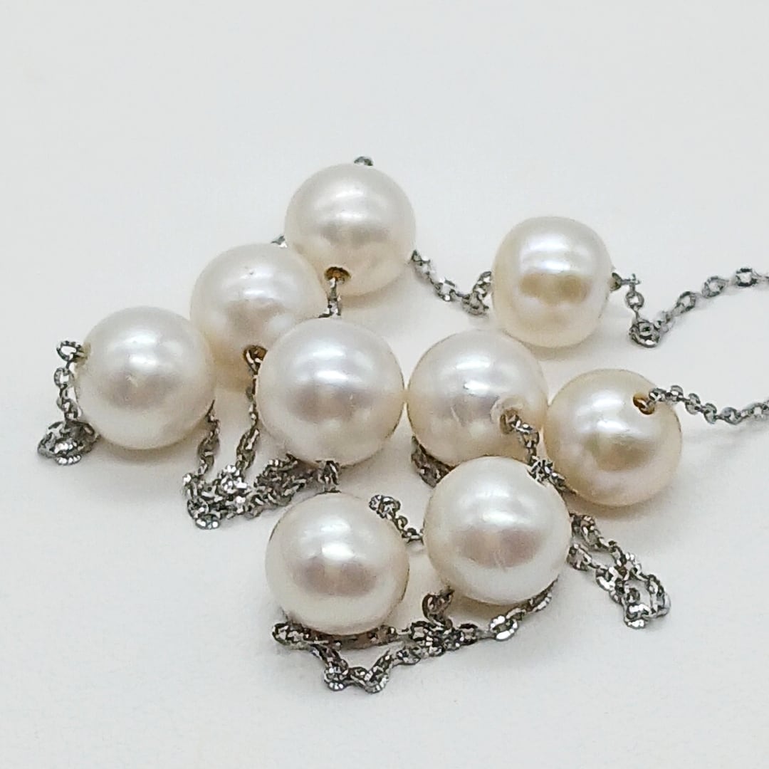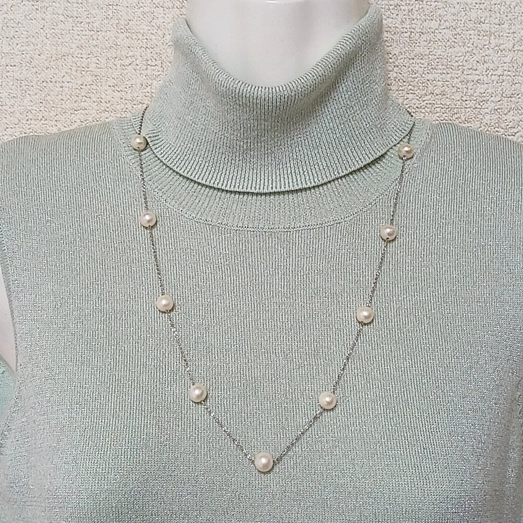 【訳あり商品】淡水真珠ステーションネックレス・サージカルステンレスチェーン(商品番号14-832)