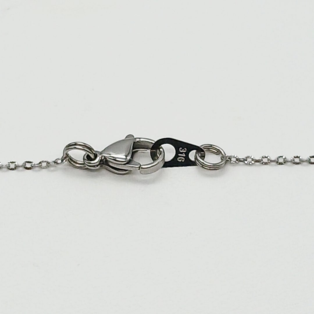 チェーンはサージカルステンレスの1、2ミリ幅の小豆チェーン(プレートに刻印有)
