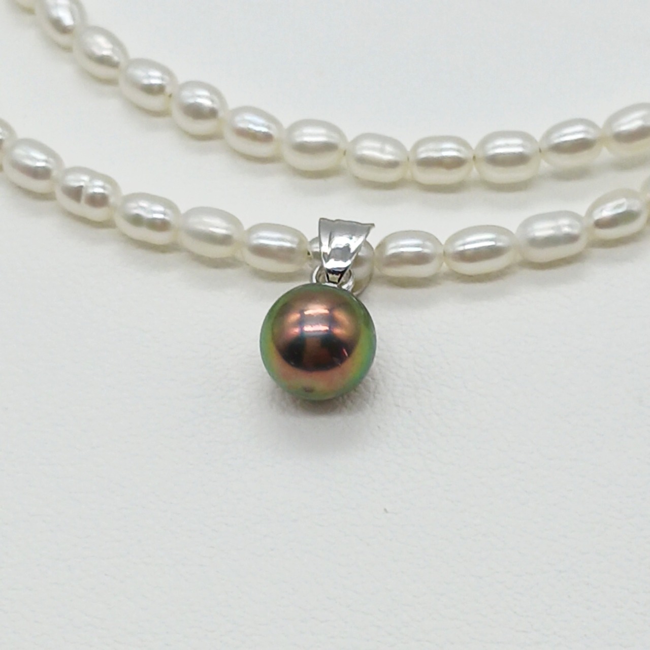 淡水ベビー真珠ネックレス付きあこや真珠ペンダント・タヒチカラー7、0ミリ(商品番号14-842)