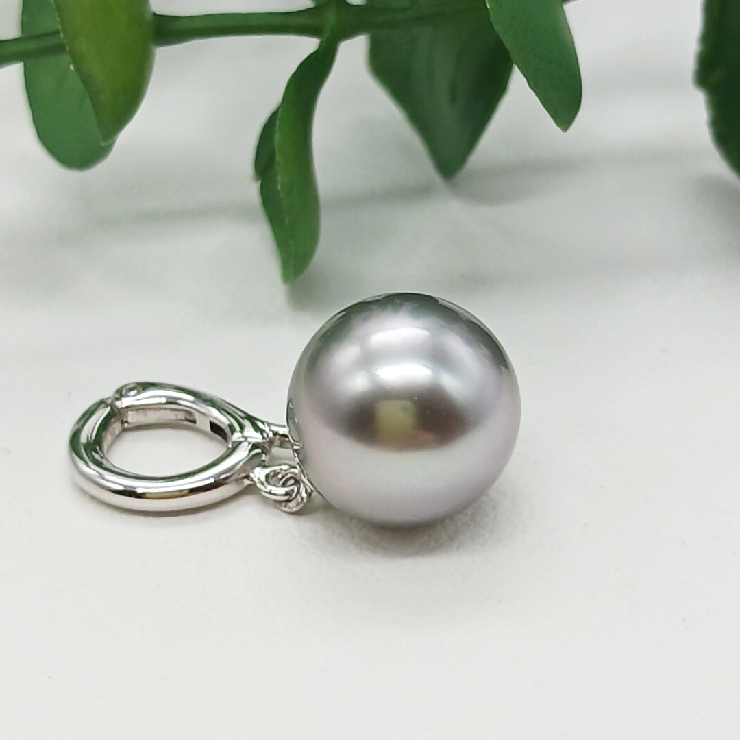 照りの良い南洋黒蝶真珠のクリッカー式ペンダントトップです。