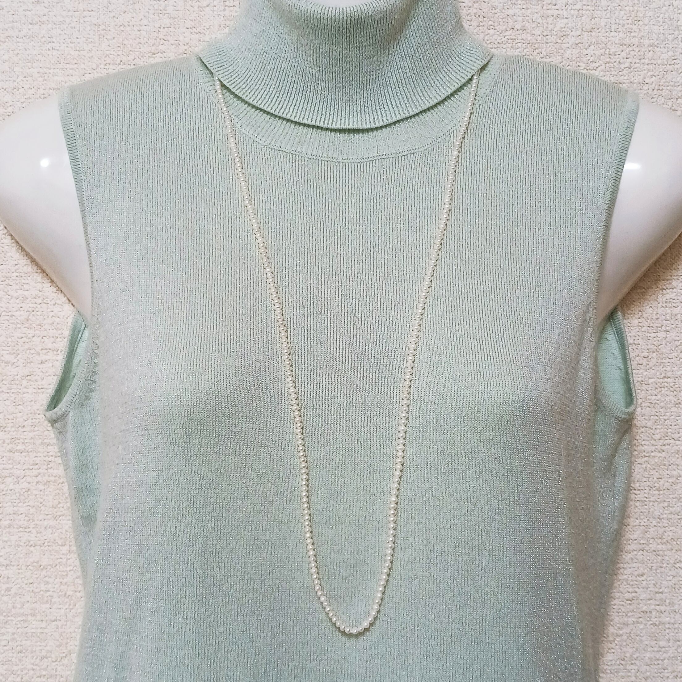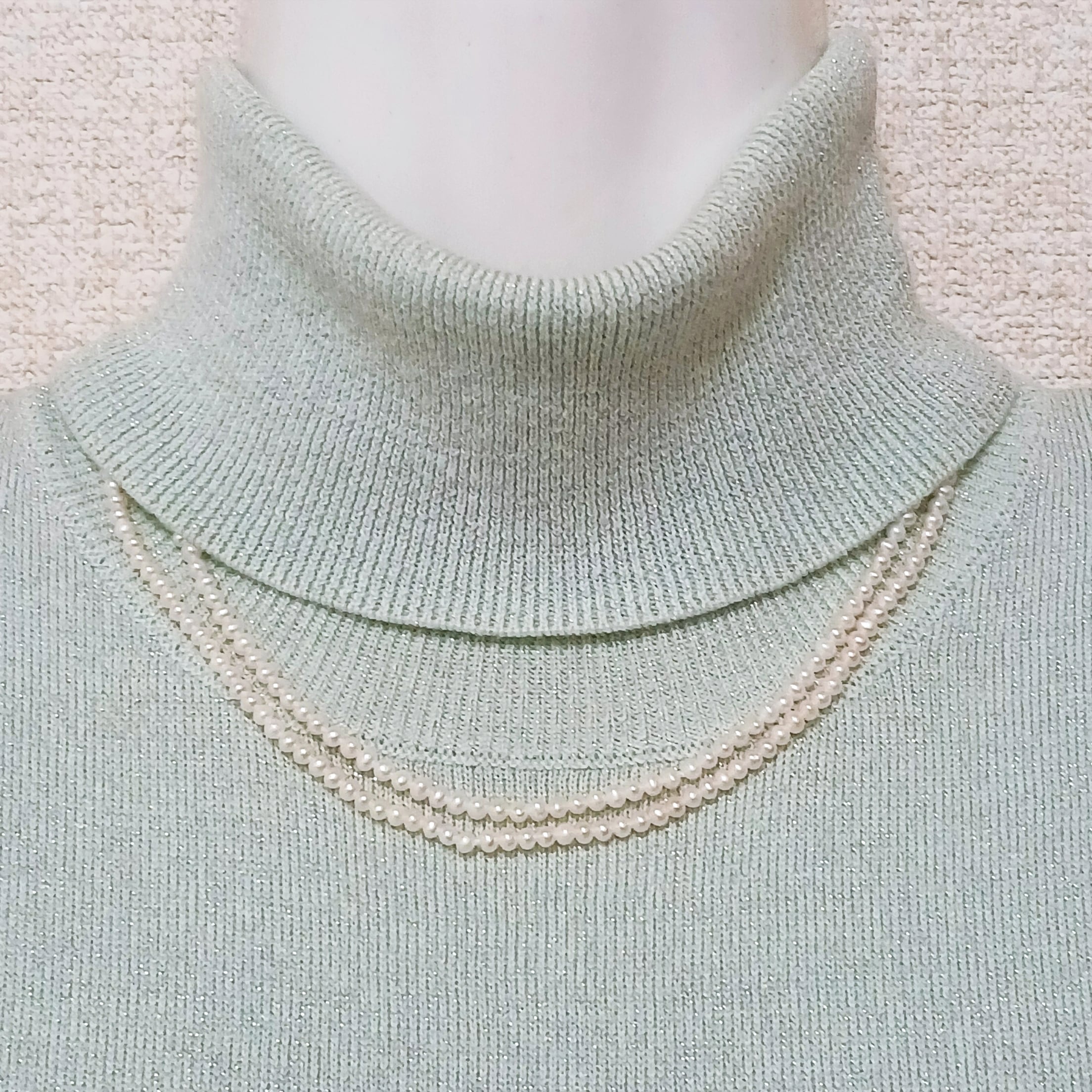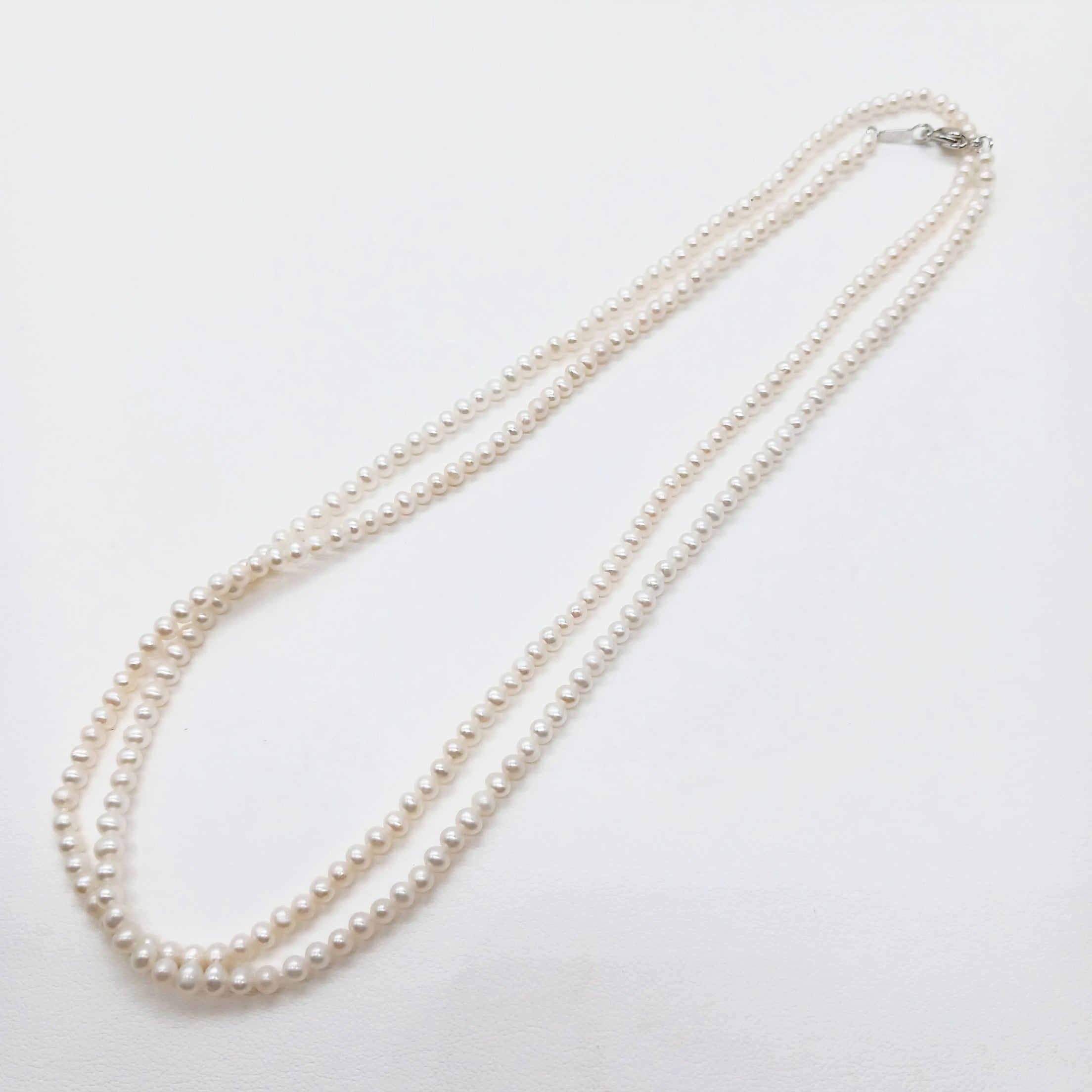 照りの良い小さな淡水真珠の連2本分で作製したロングネックレスです。