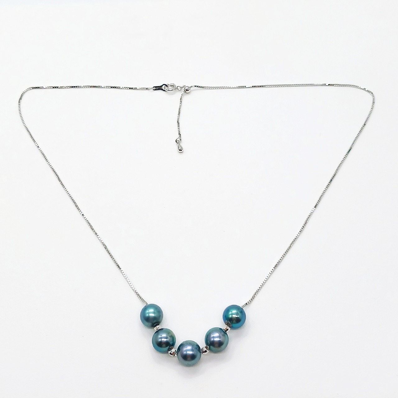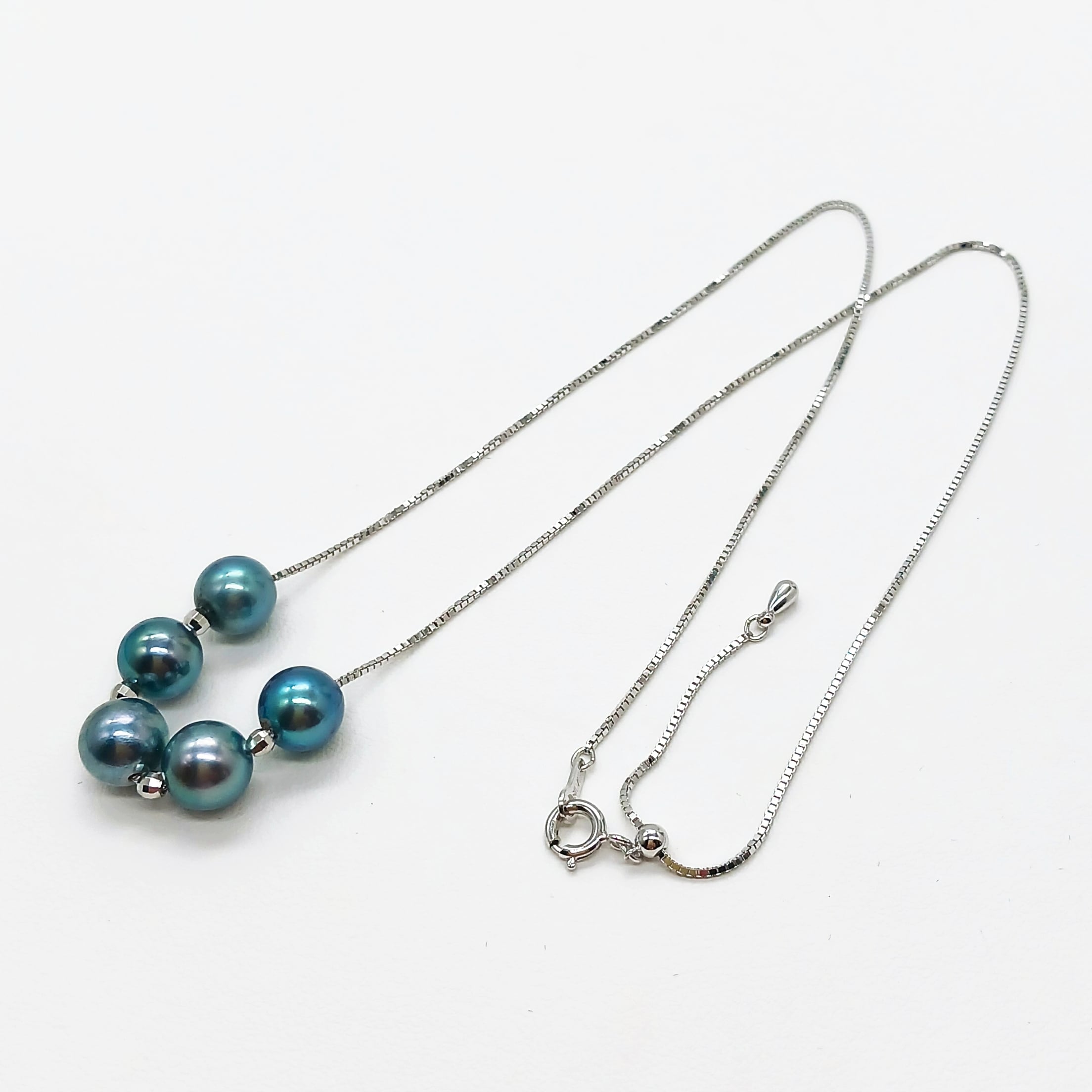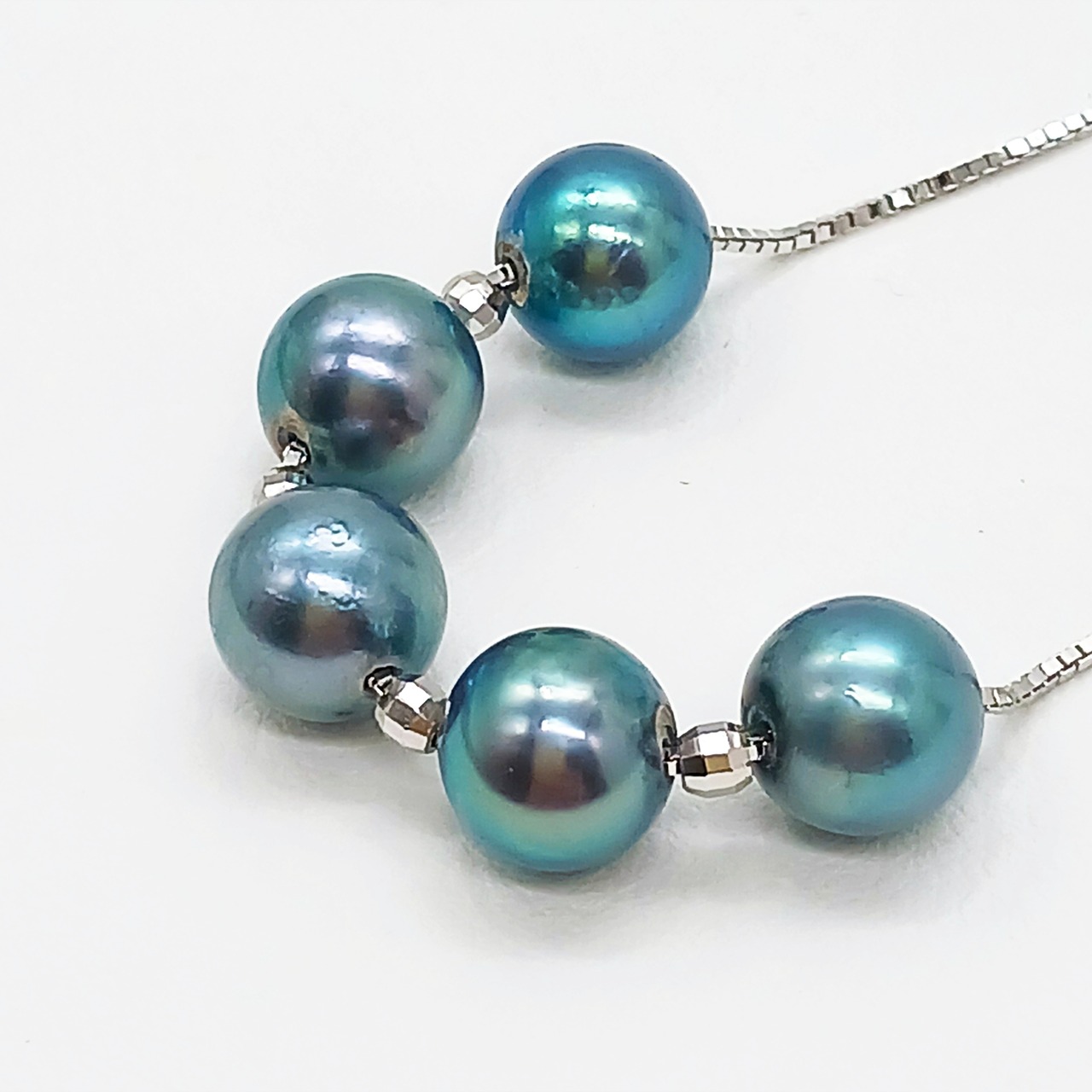 あこや真珠を5珠チェーンに通した、