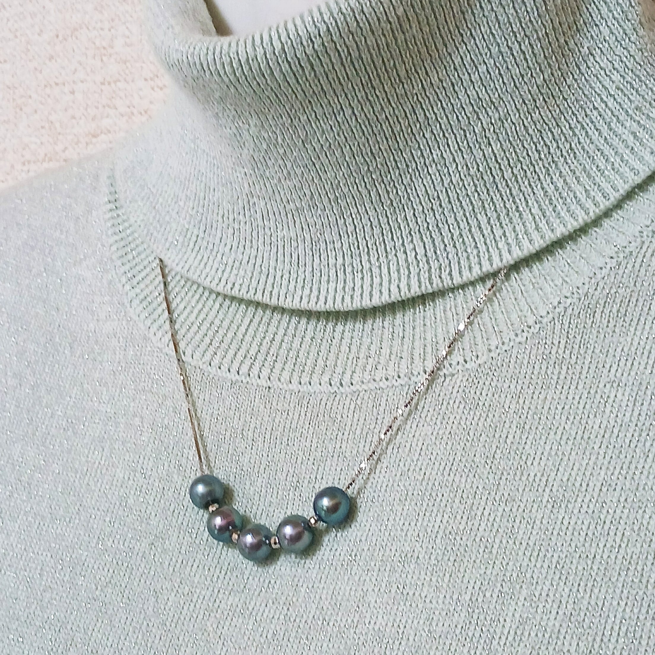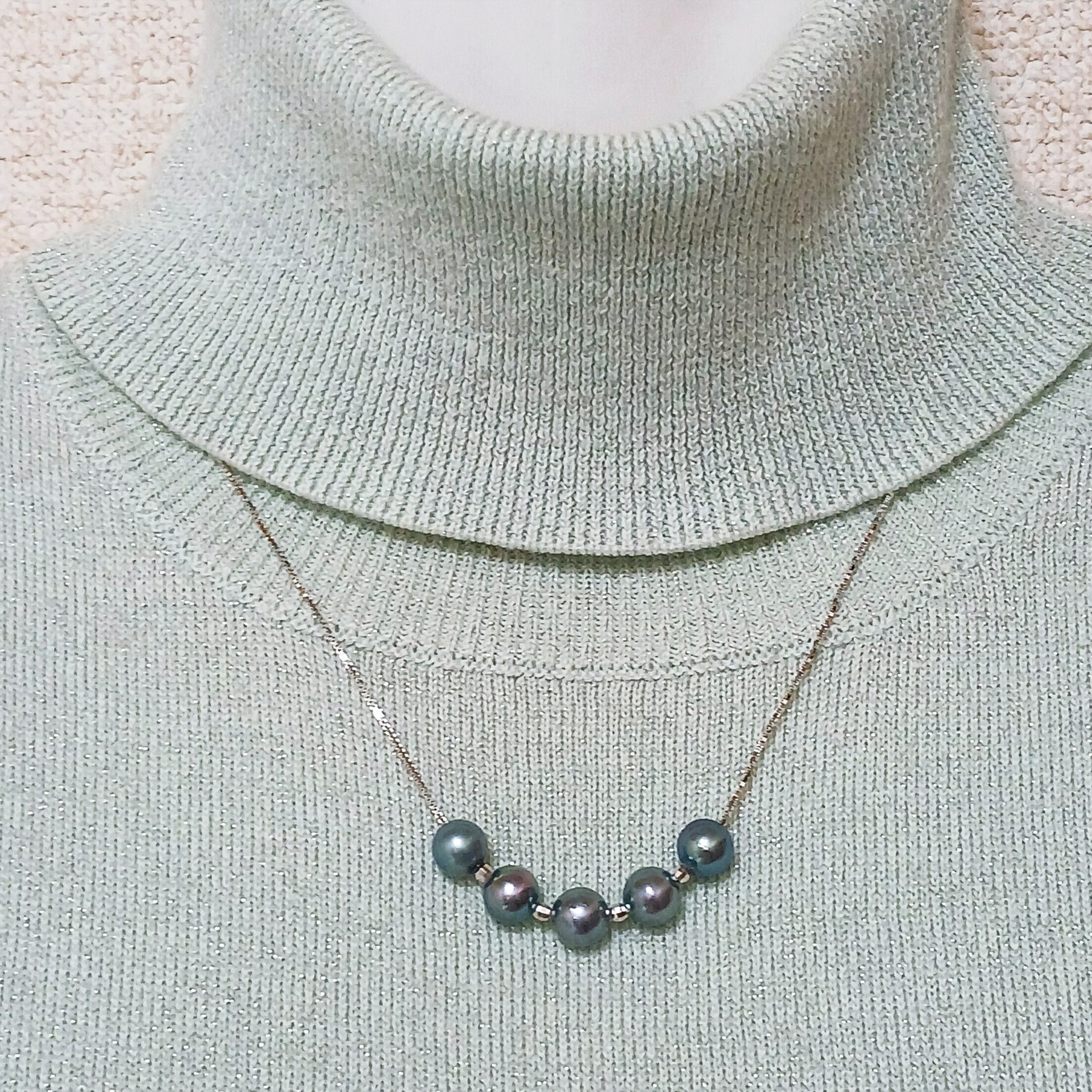 SVあこや真珠5ピーススルーネックレス・7、5ミリUPタヒチカラー(商品番号14-856)