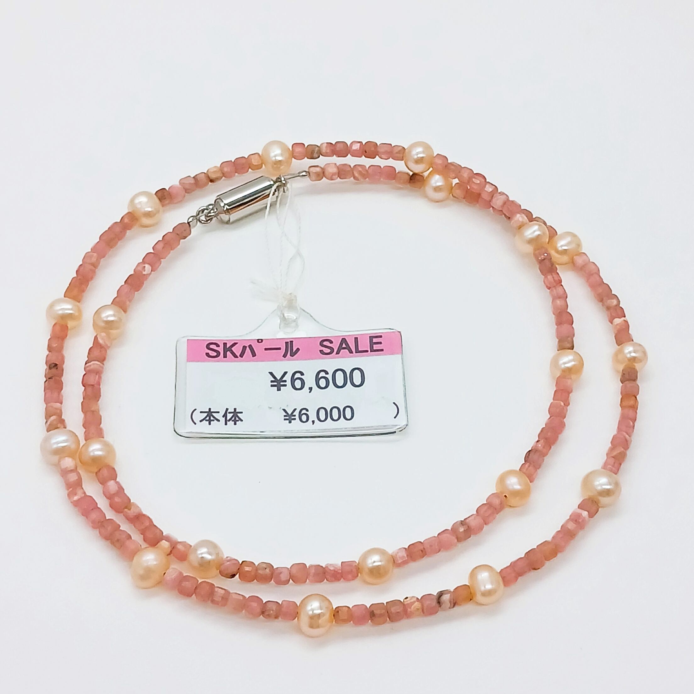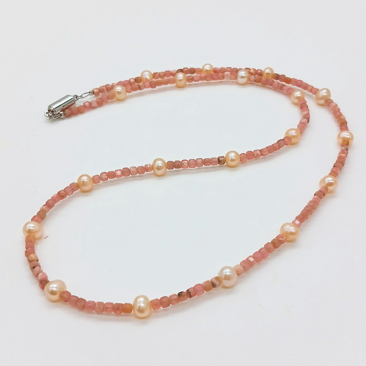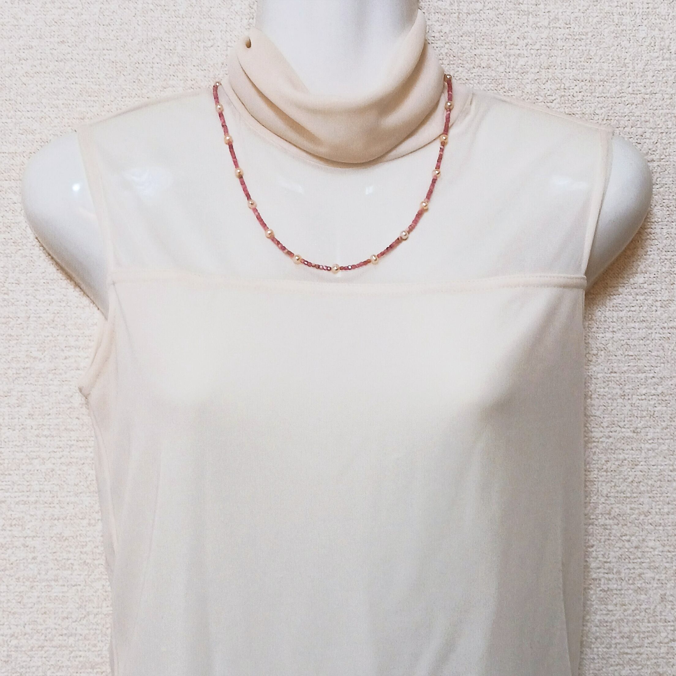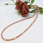 淡水真珠入りインカローズネックレス・淡水真珠ステーションネックレス(商品番号14-857)