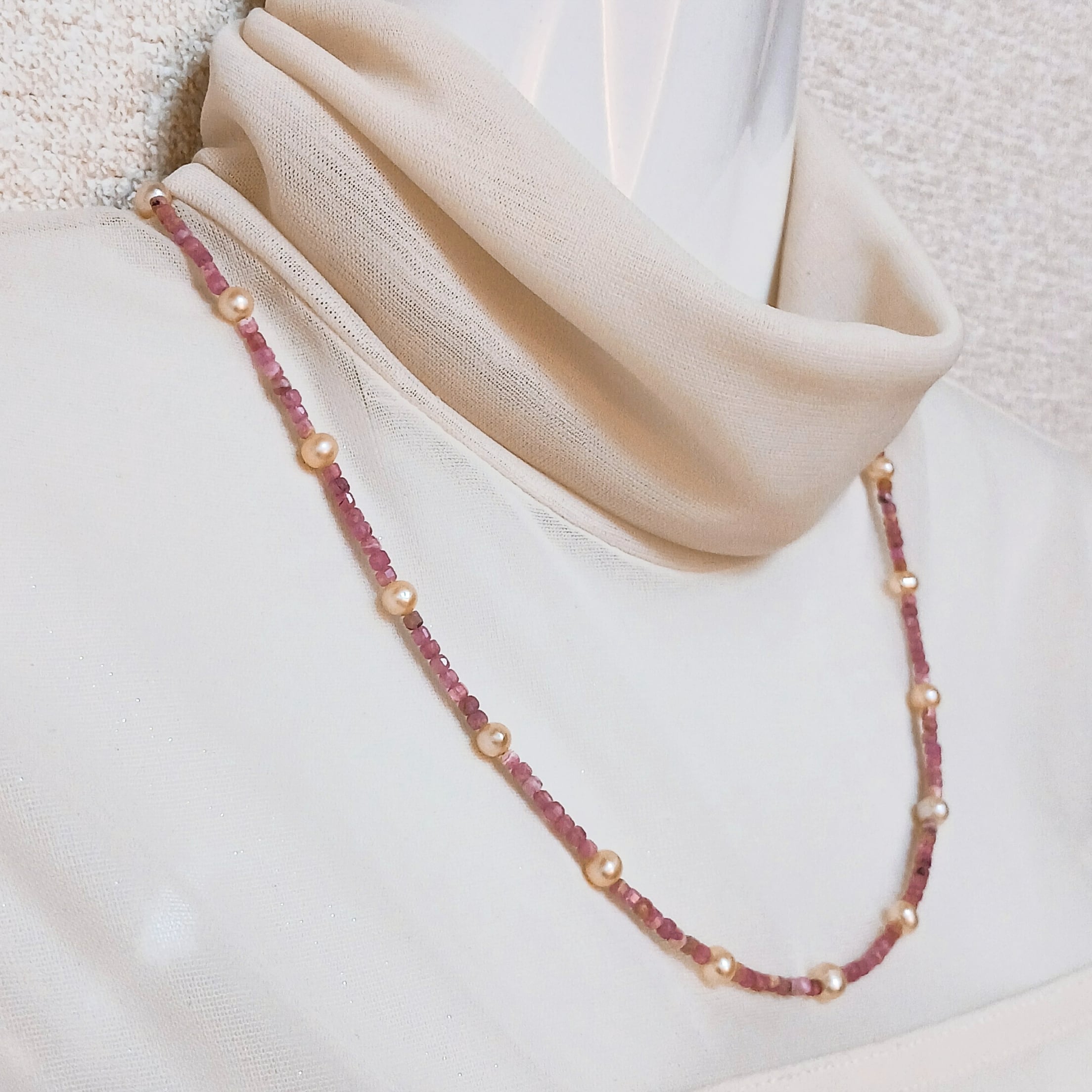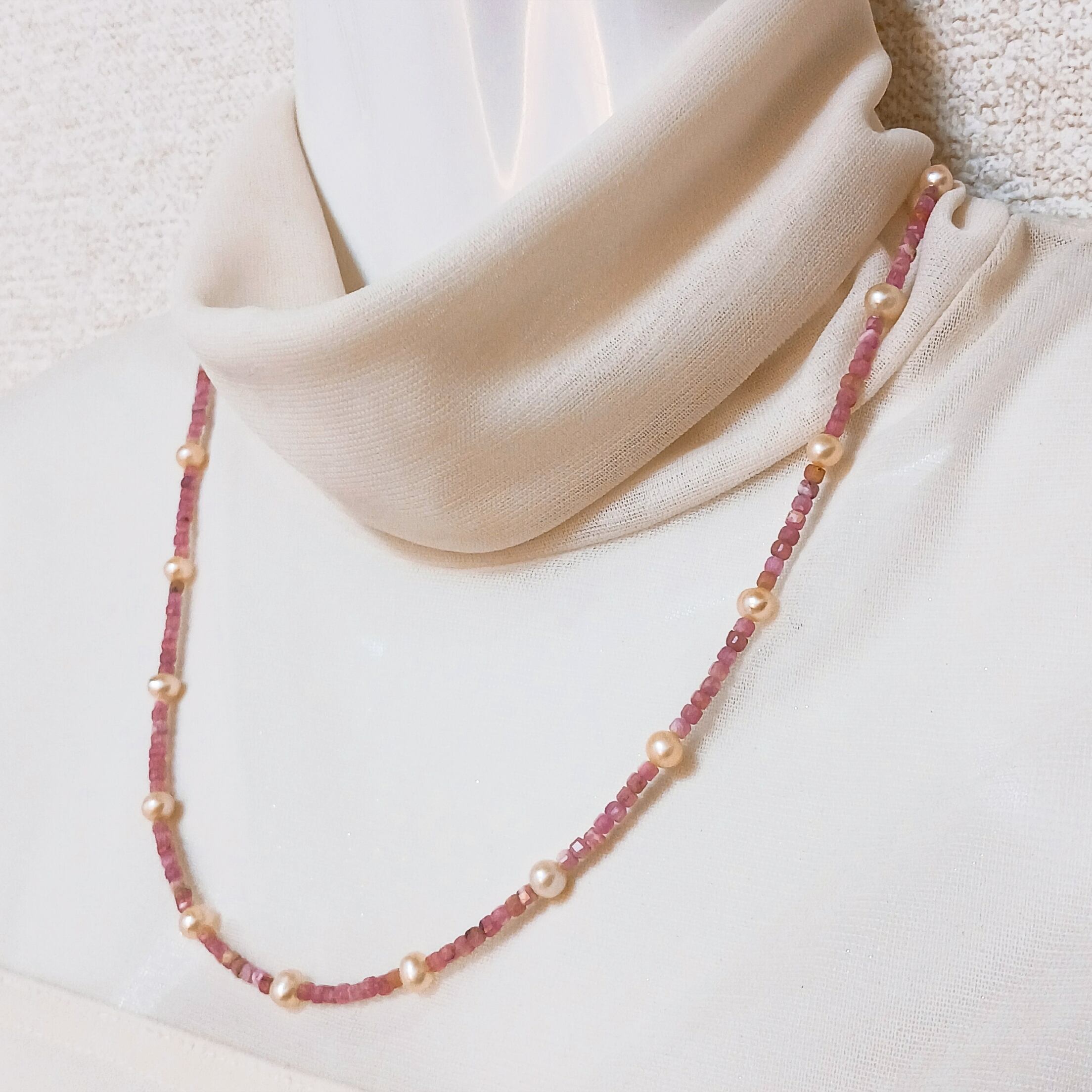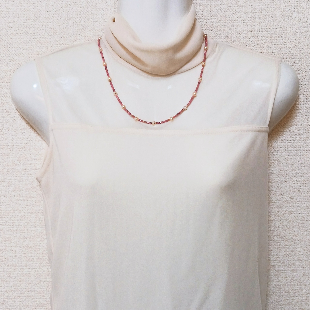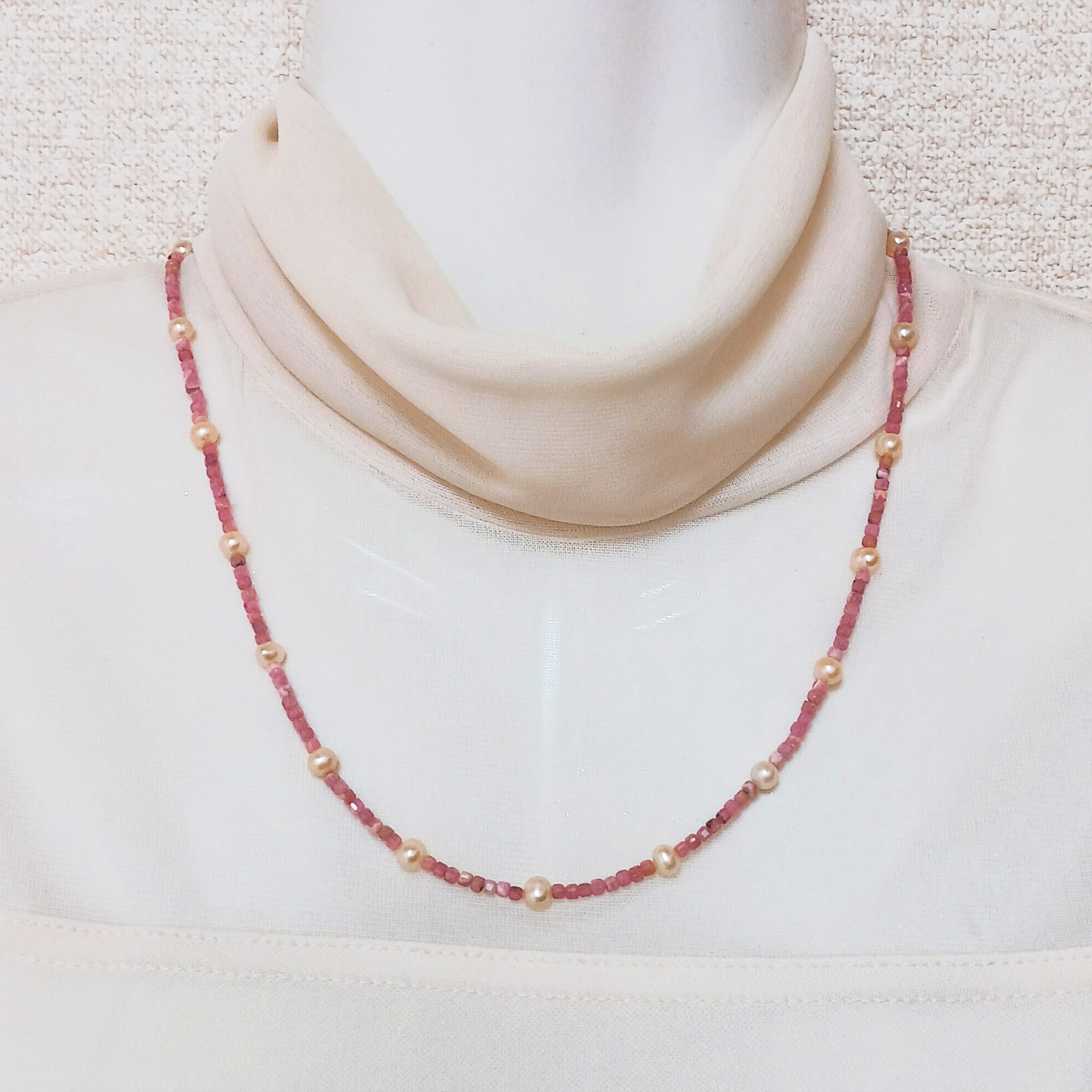 淡水真珠入りインカローズネックレス・淡水真珠ステーションネックレス(商品番号14-857)