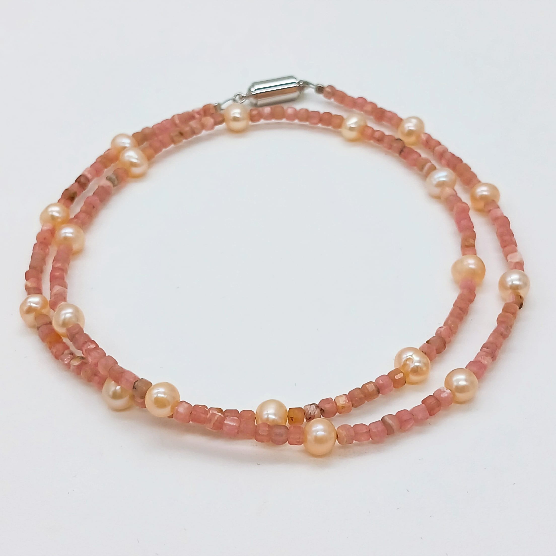 優しいイメージのインカローズに淡水真珠を均等に入れた