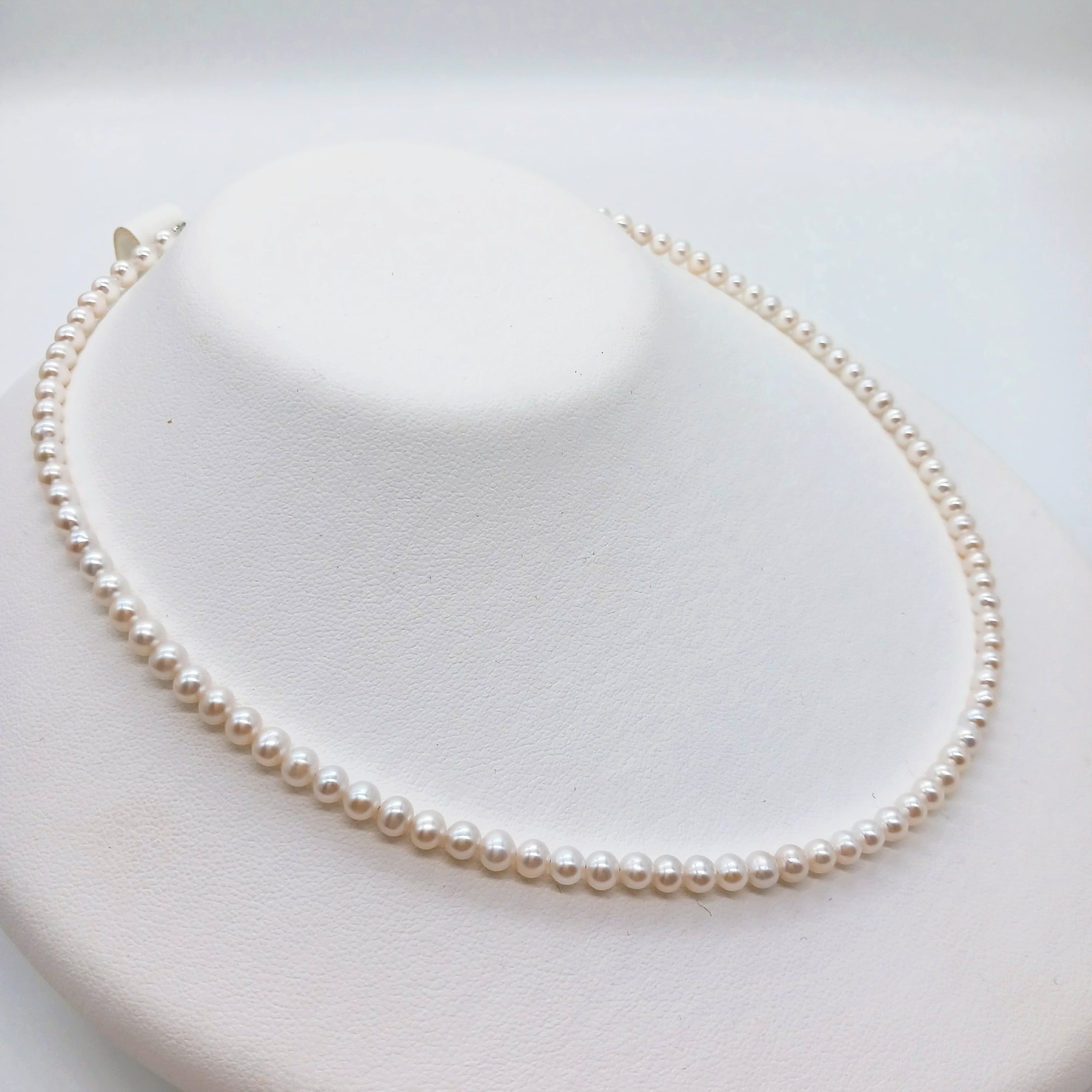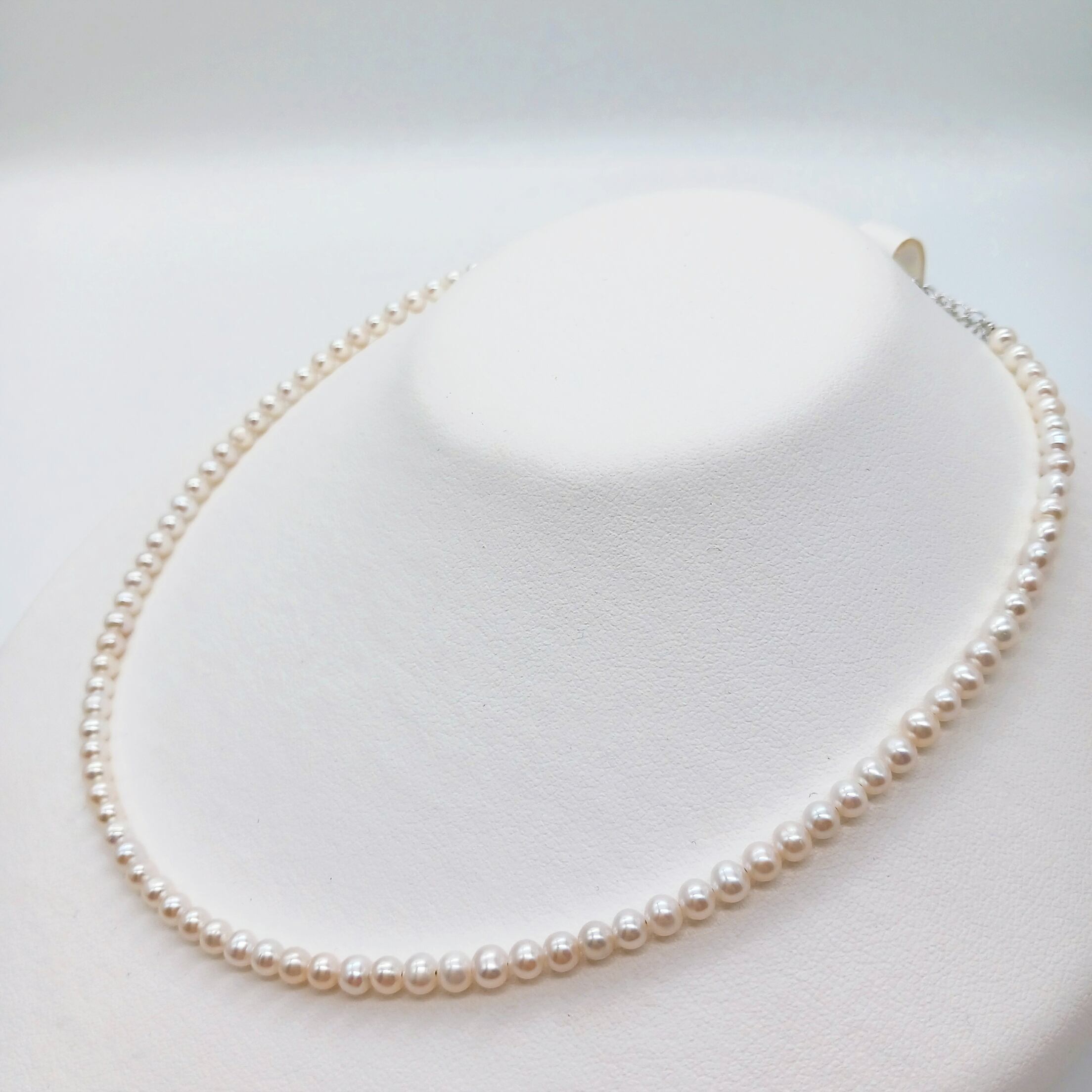 淡水ベビー真珠ネックレス・照りの良い約4ミリセミラウンド・ホワイト系(商品番号14-859)