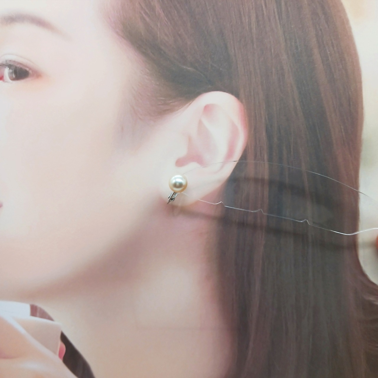 SVあこや真珠イヤリング・照りの良いクリーム系8、7ミリ珠(商品番号14-861)