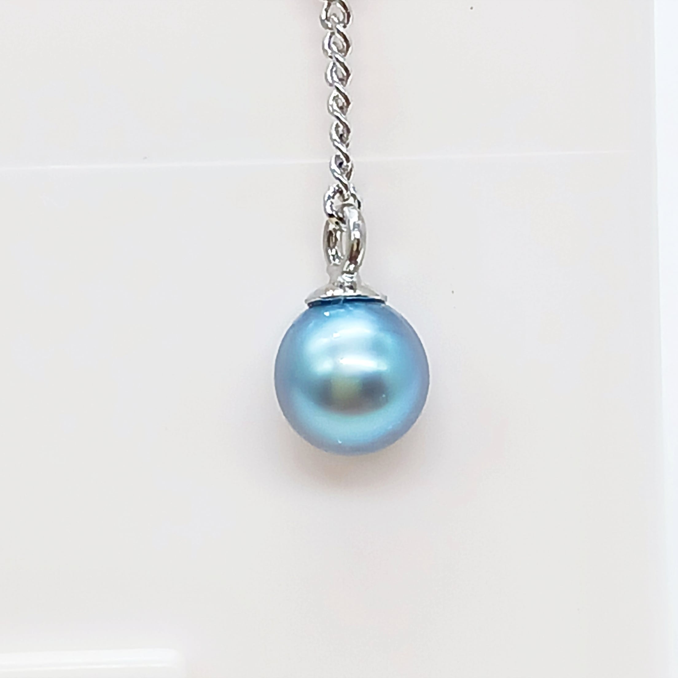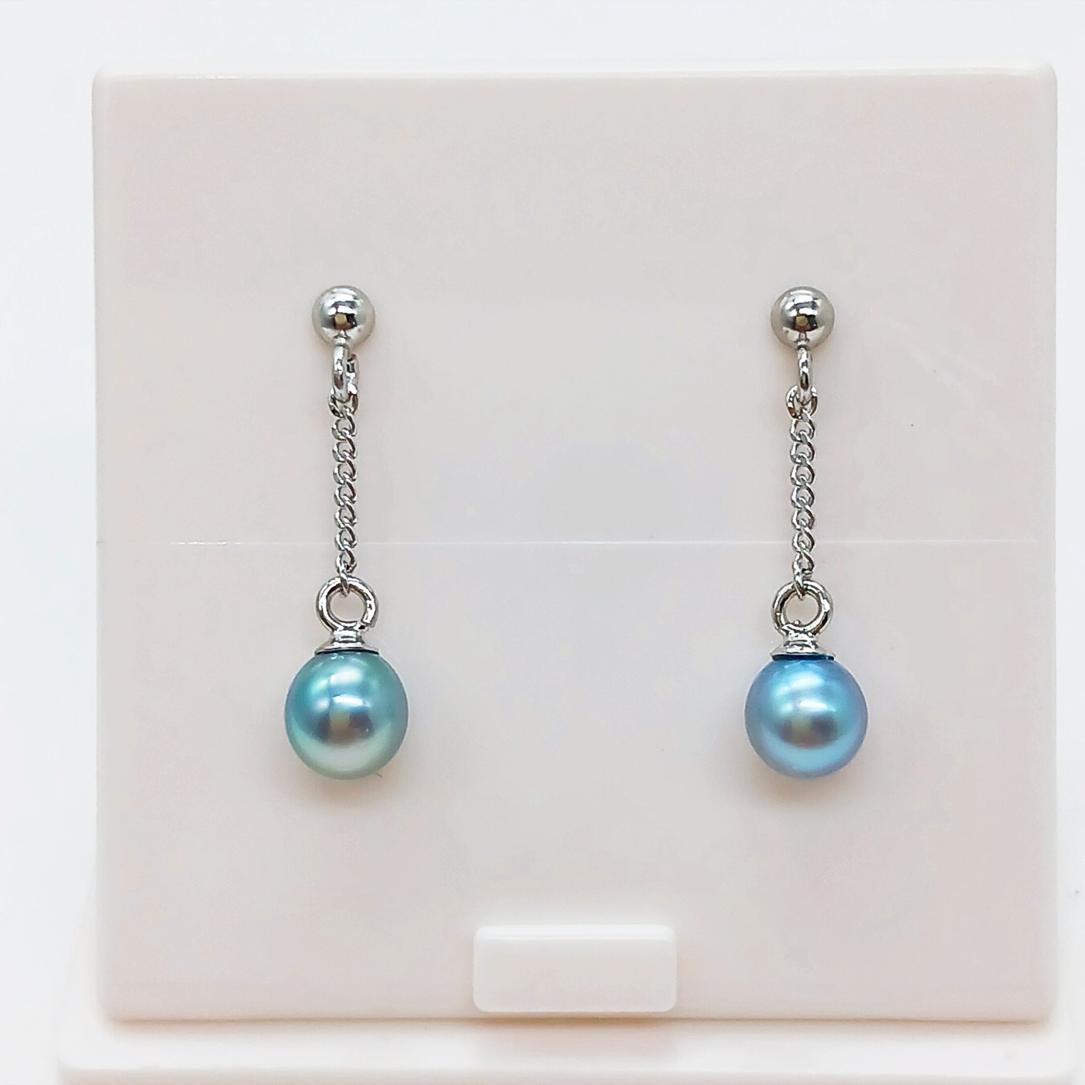 ピアス金具とチェーンはロジウムコーティングされたシルバーです。