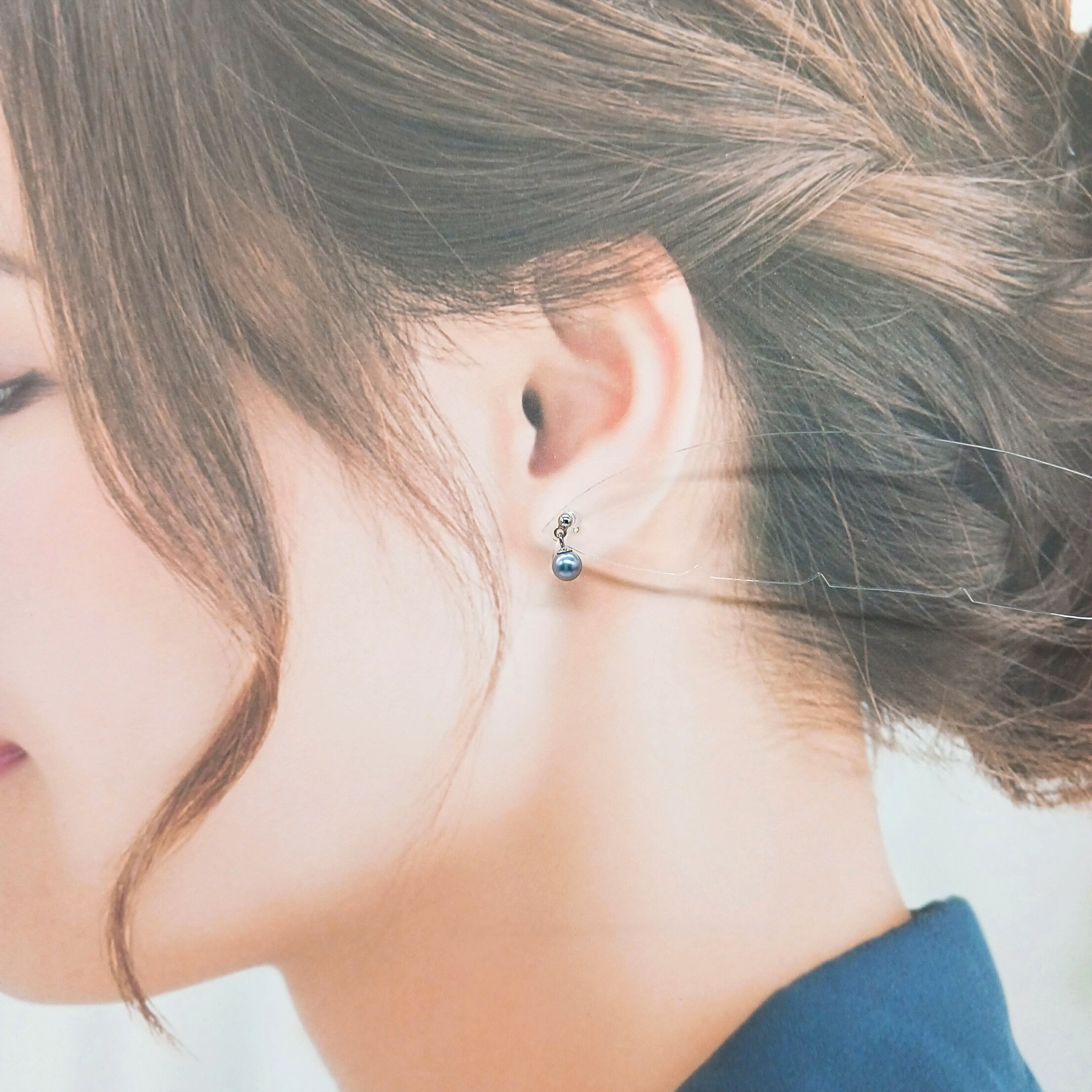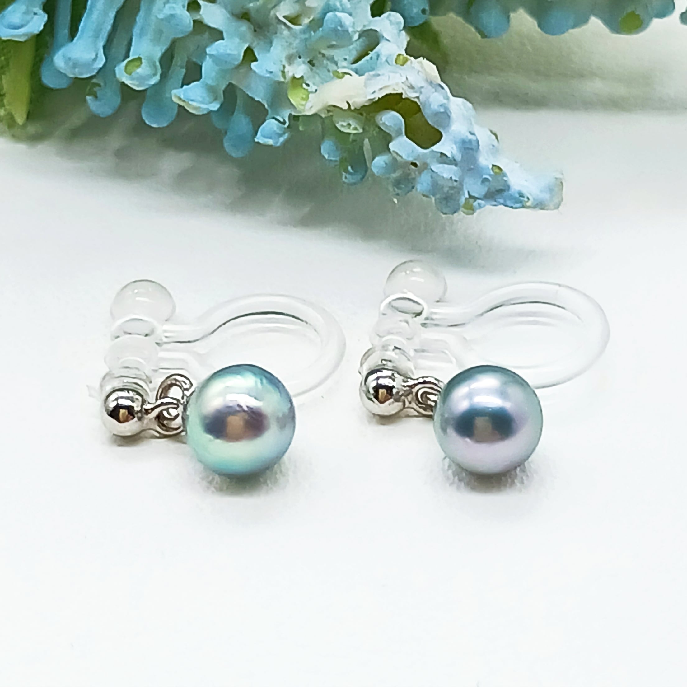あこやベビー真珠ぶら下がりイヤリング・ノンホールピアス(商品番号15-869)