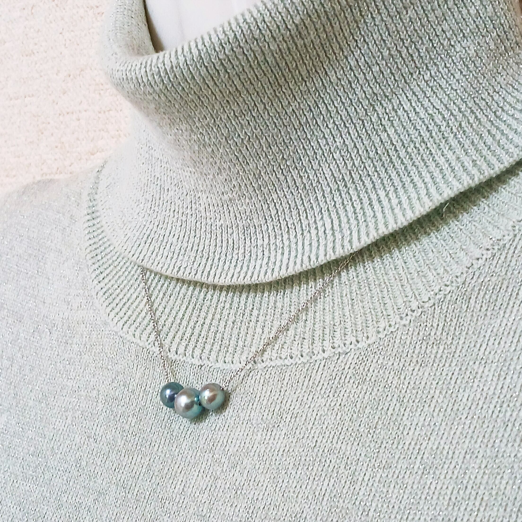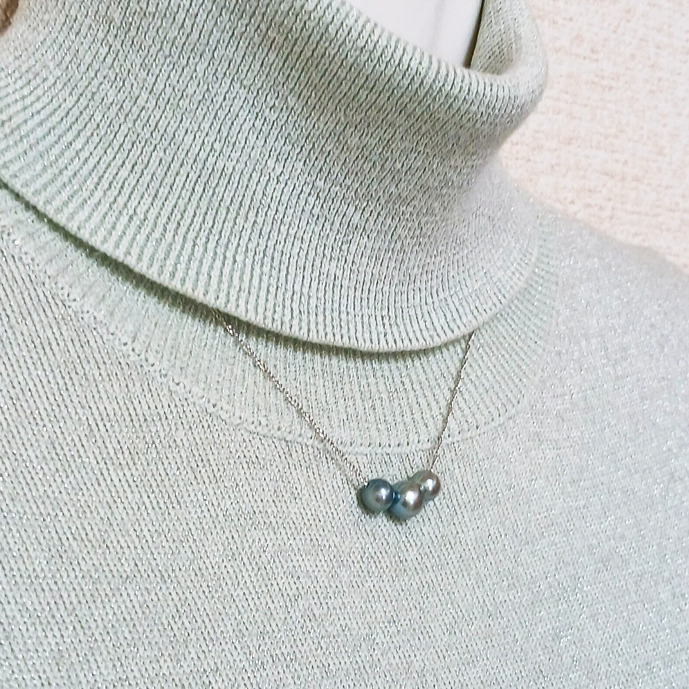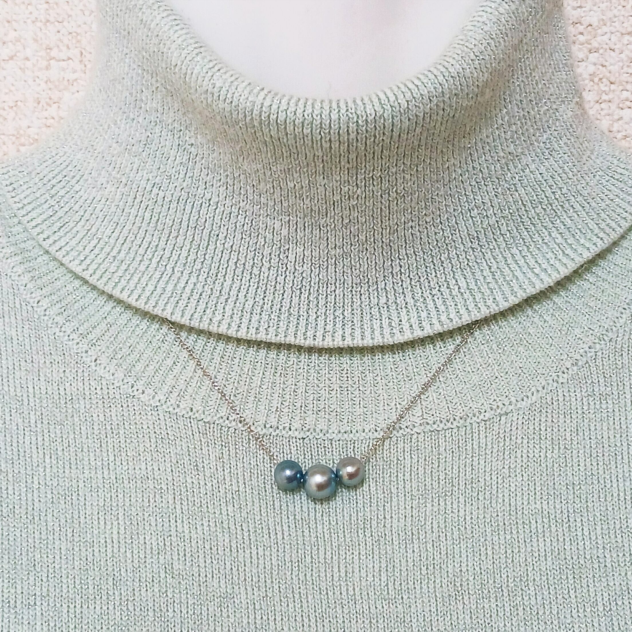 SVあこやグレー真珠3ピーススルーネックレス・長さ40センチ(商品番号15-875)