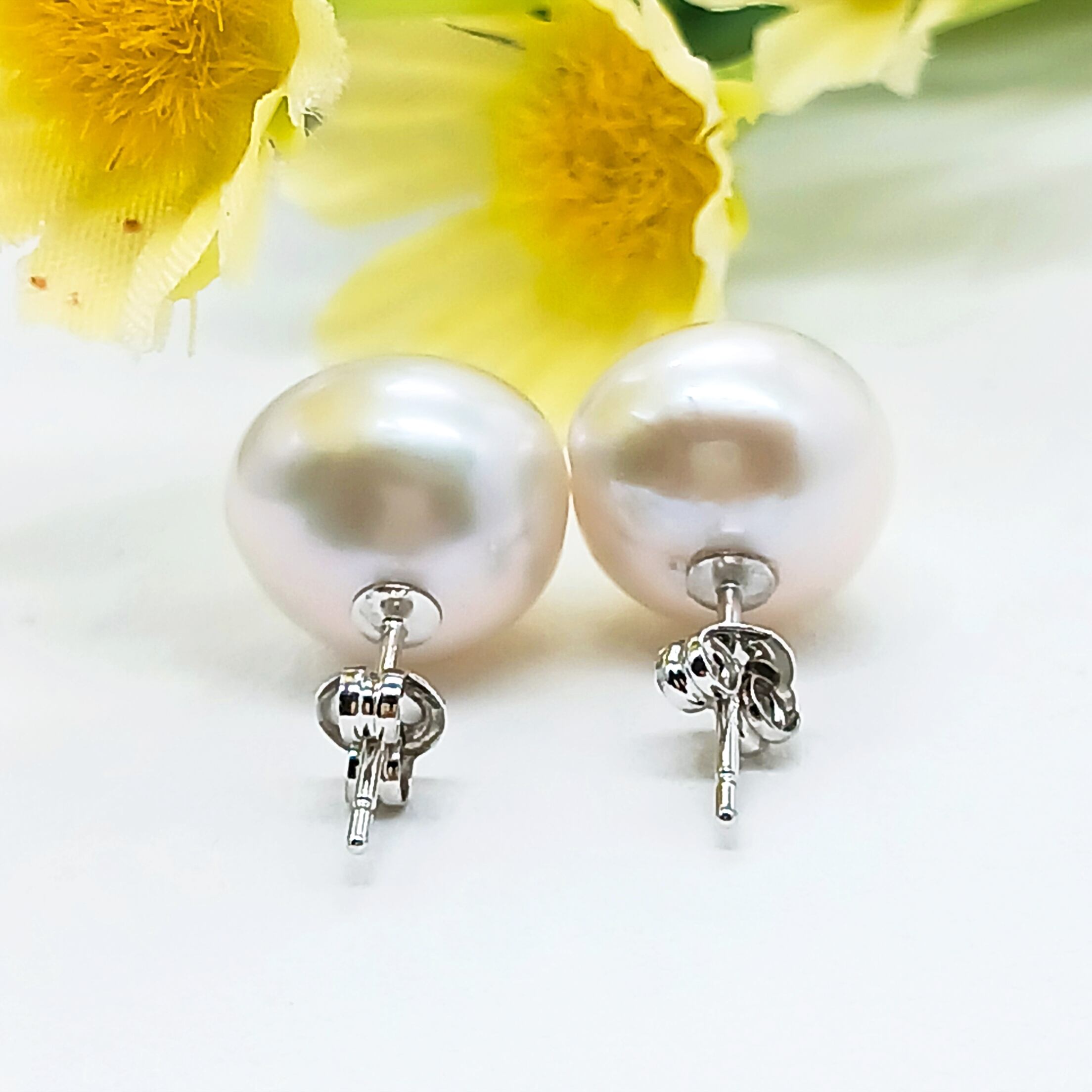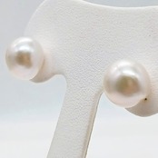 SV淡水バロック真珠スタッドピアス・ホワイト系 直径11~12ミリ(商品番号15-879)