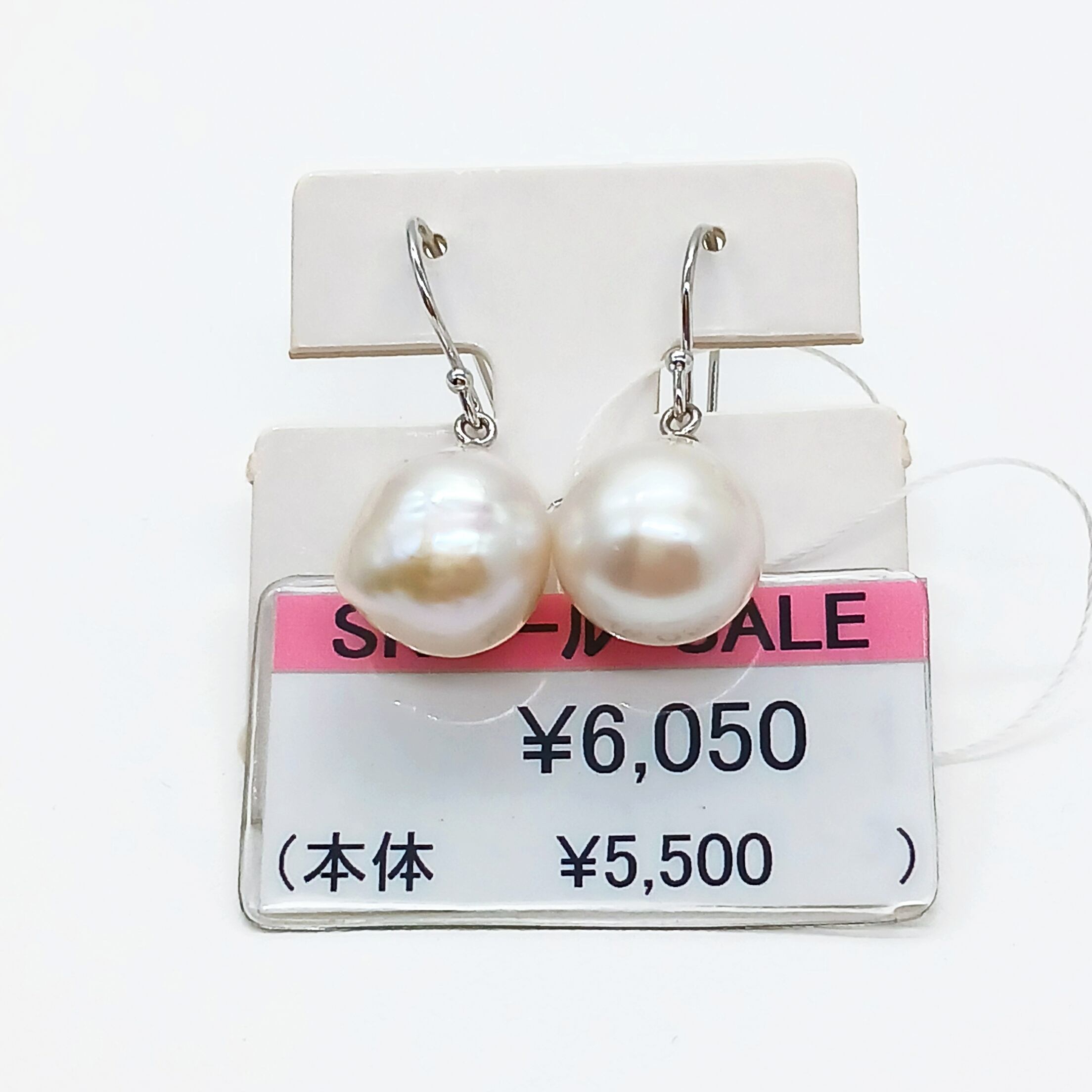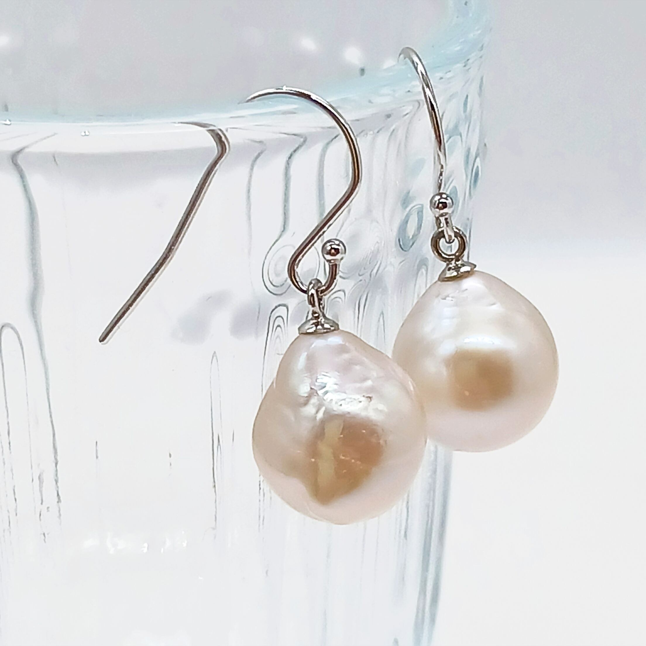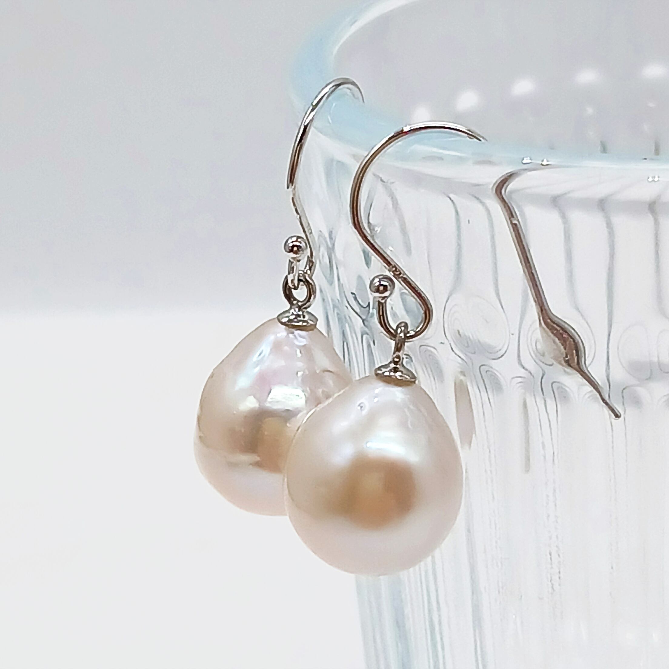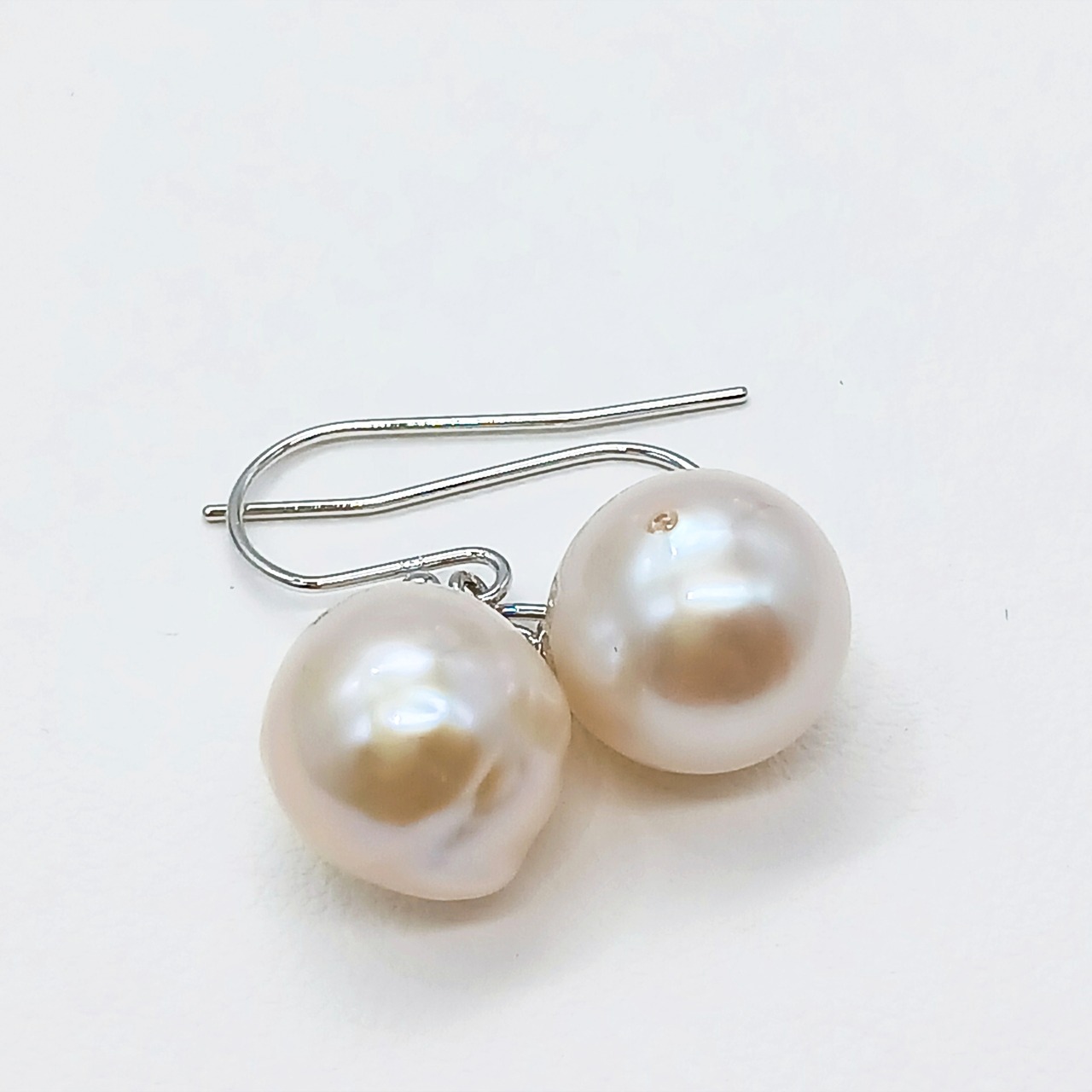 SV淡水バロック真珠フックピアス・ホワイト系 横幅10~11ミリ縦11、5~12ミリ(商品番号15-880)
