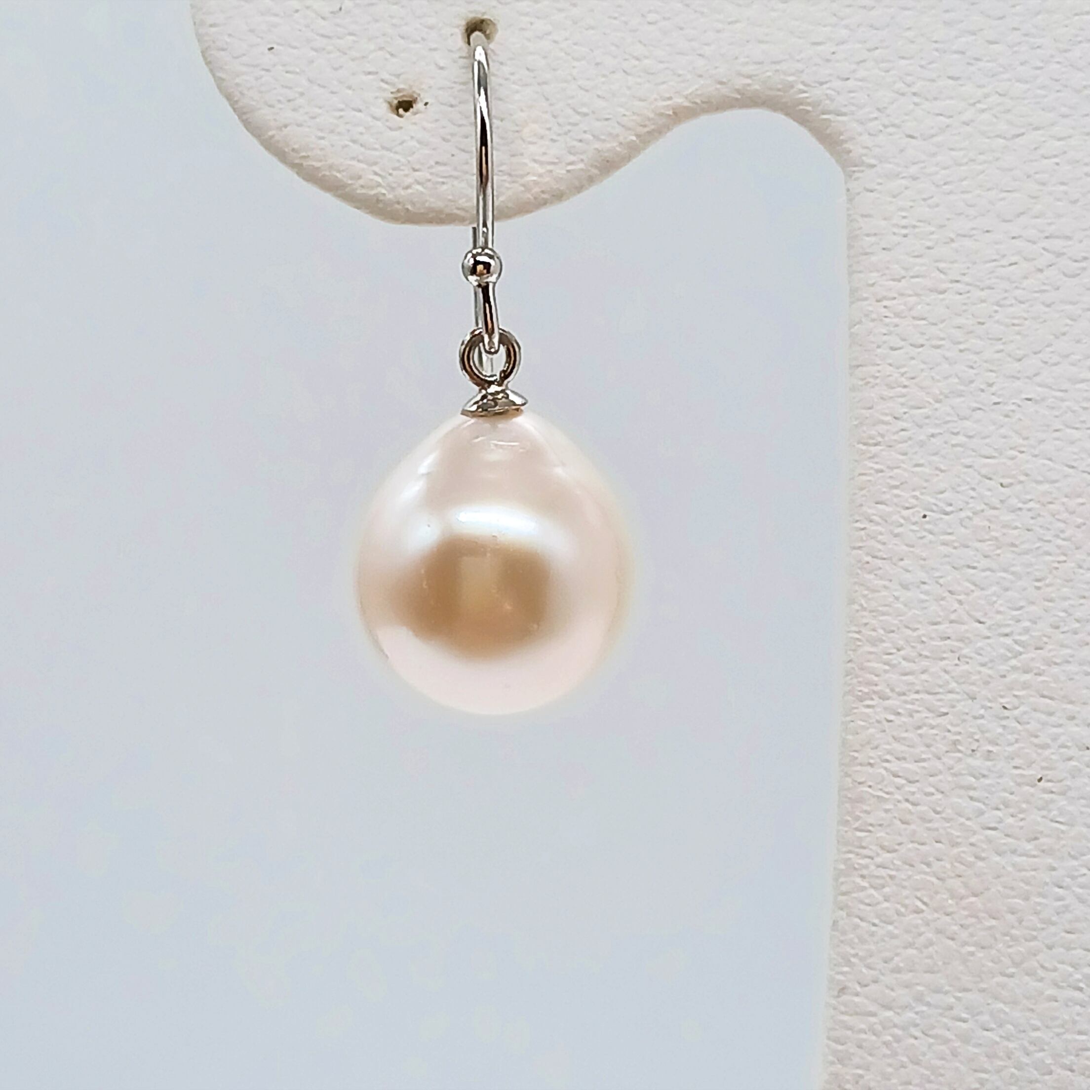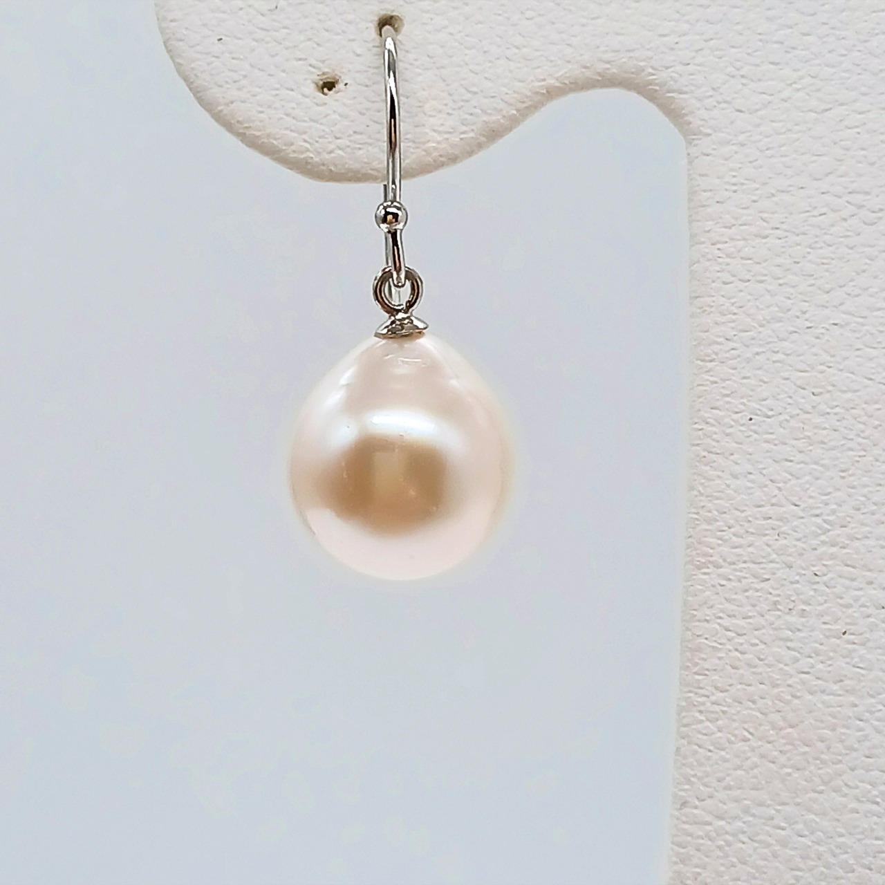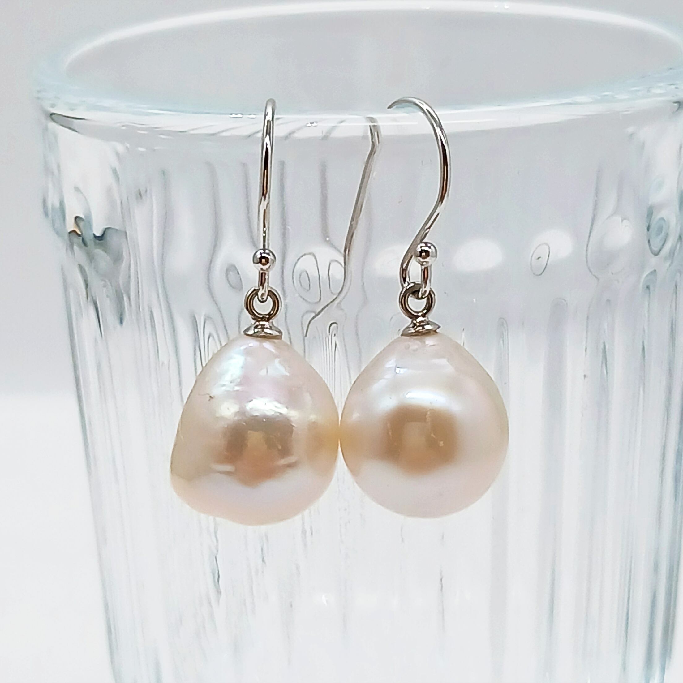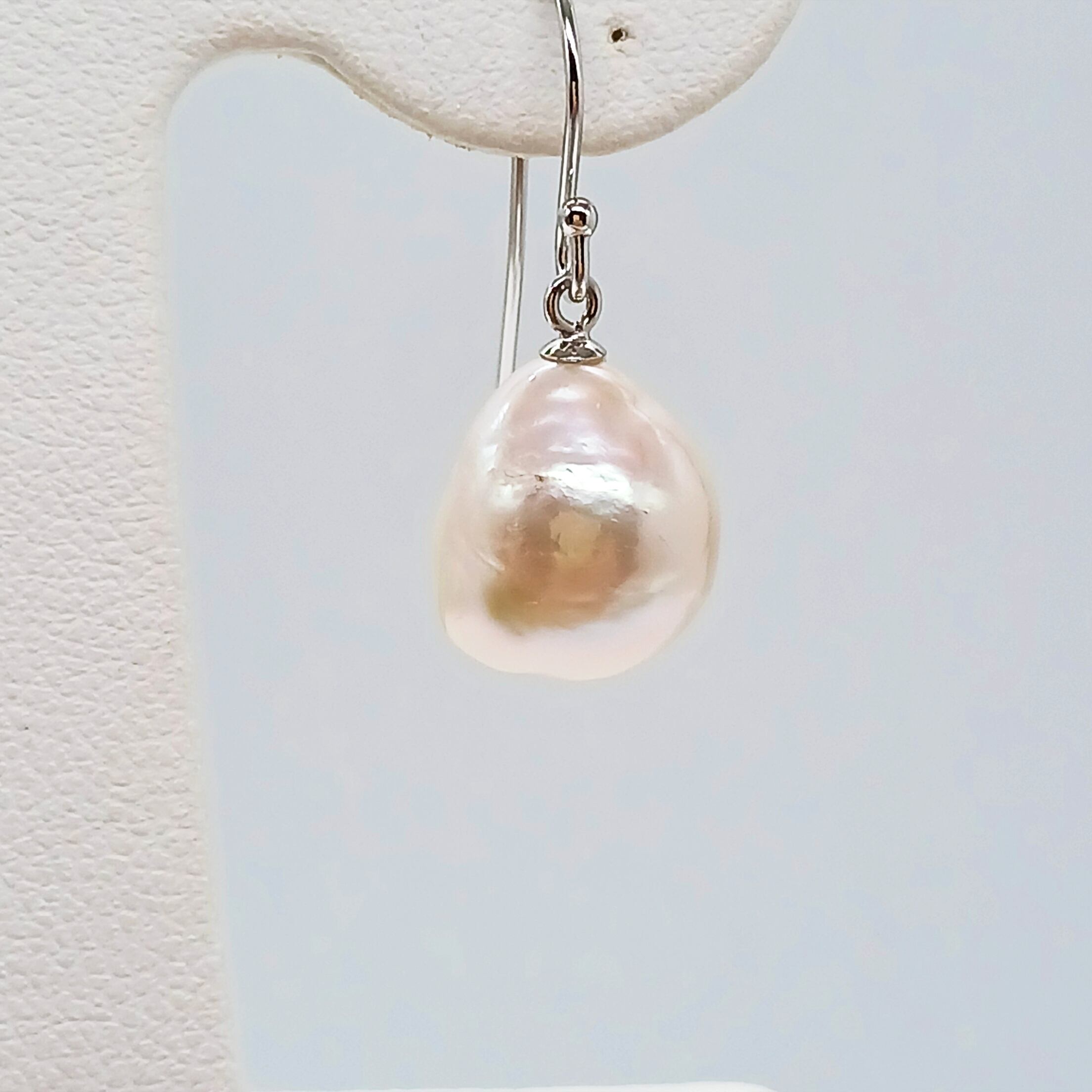 SV淡水バロック真珠フックピアス・ホワイト系 横幅10~11ミリ縦11、5~12ミリ(商品番号15-880)