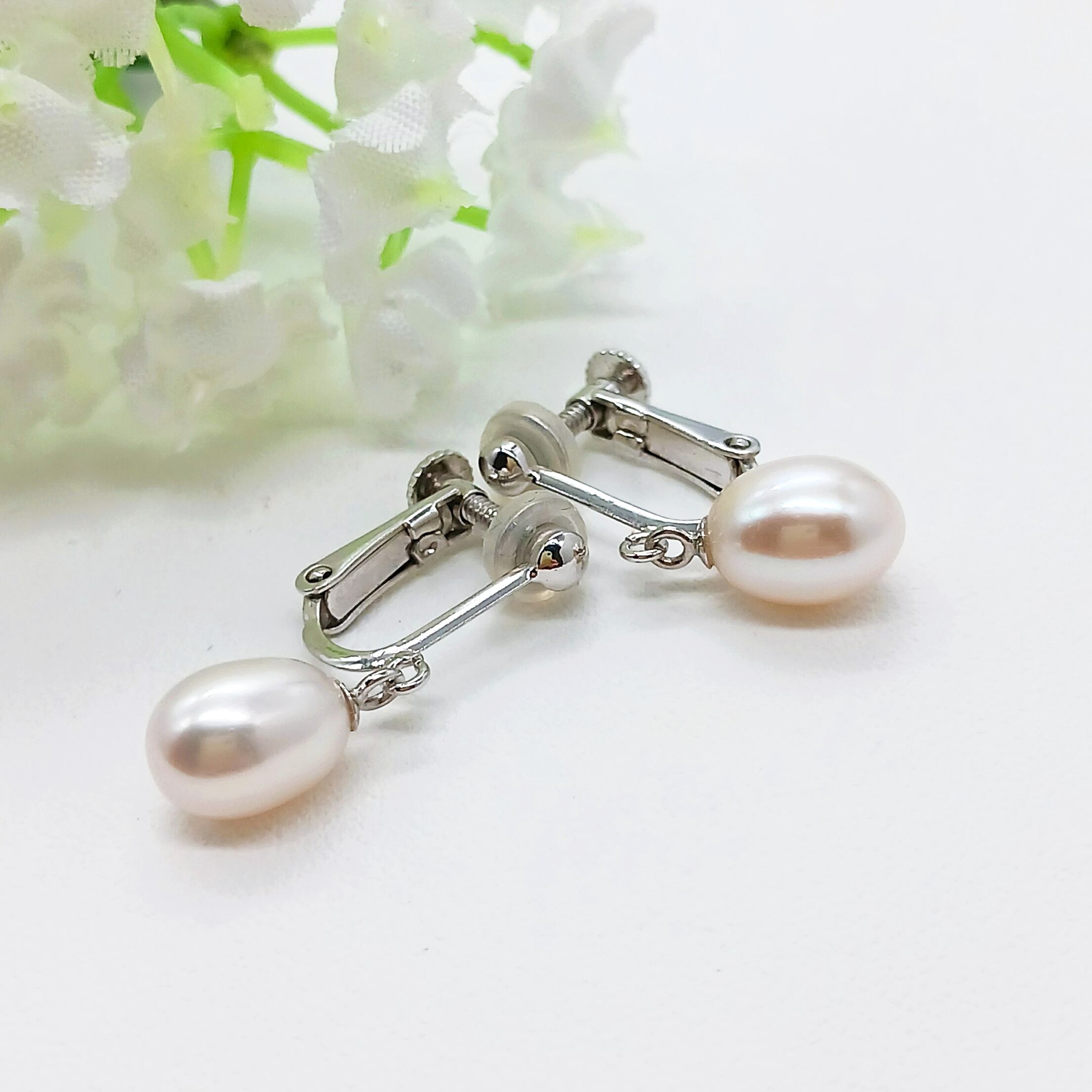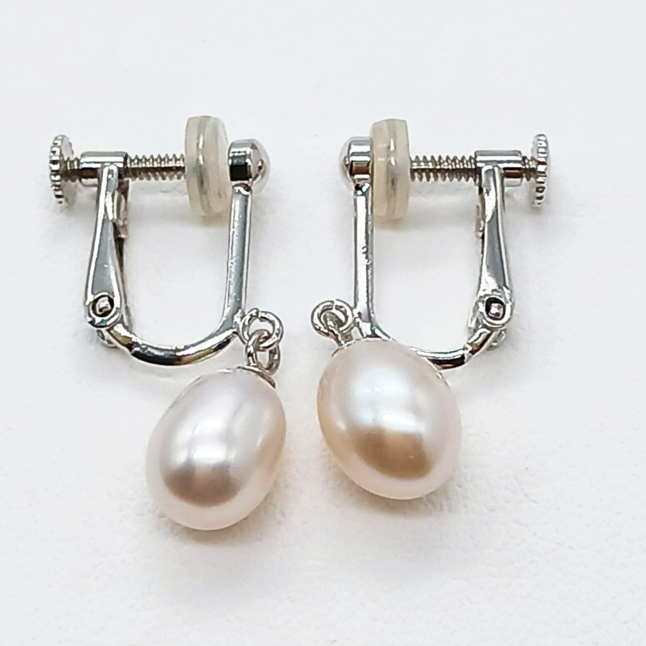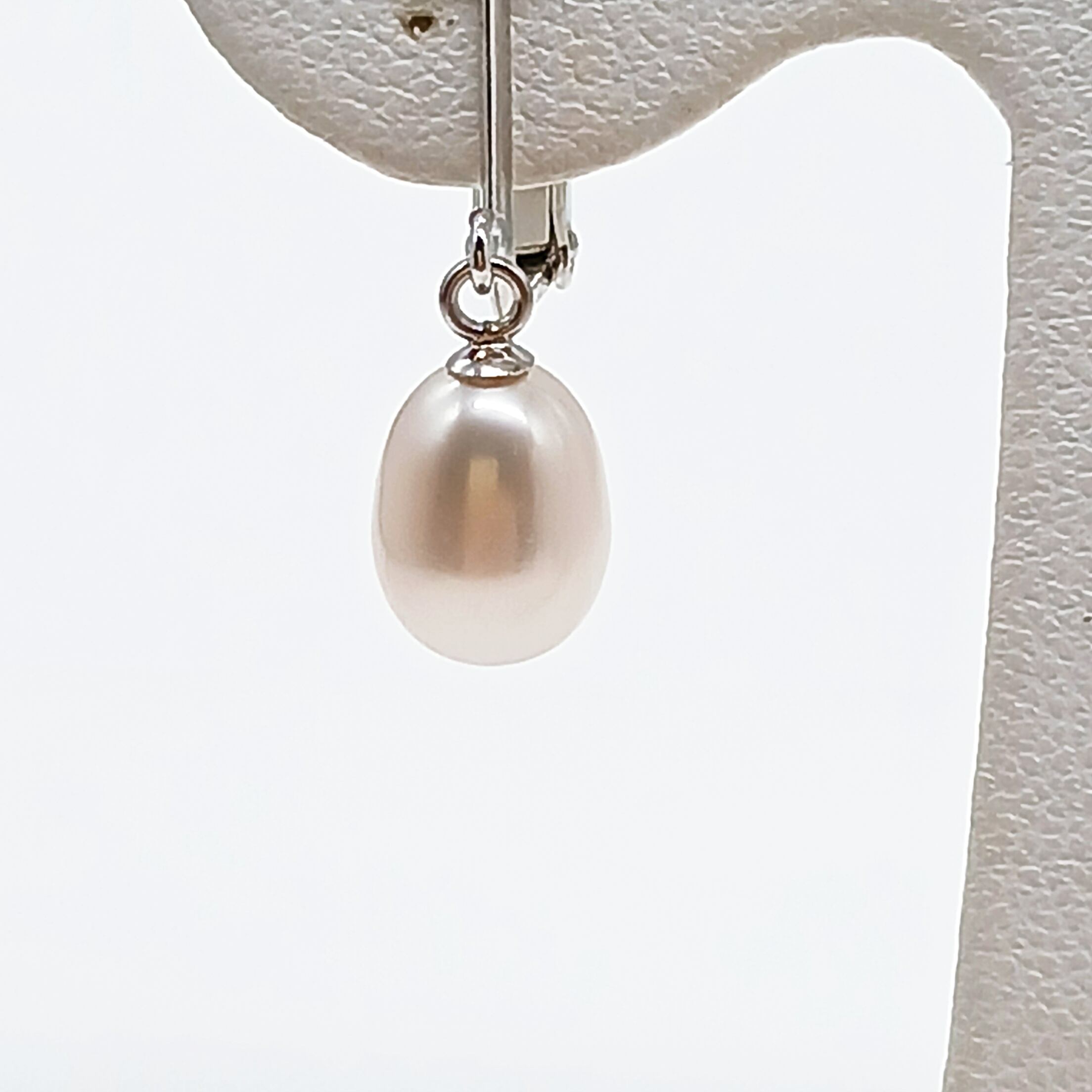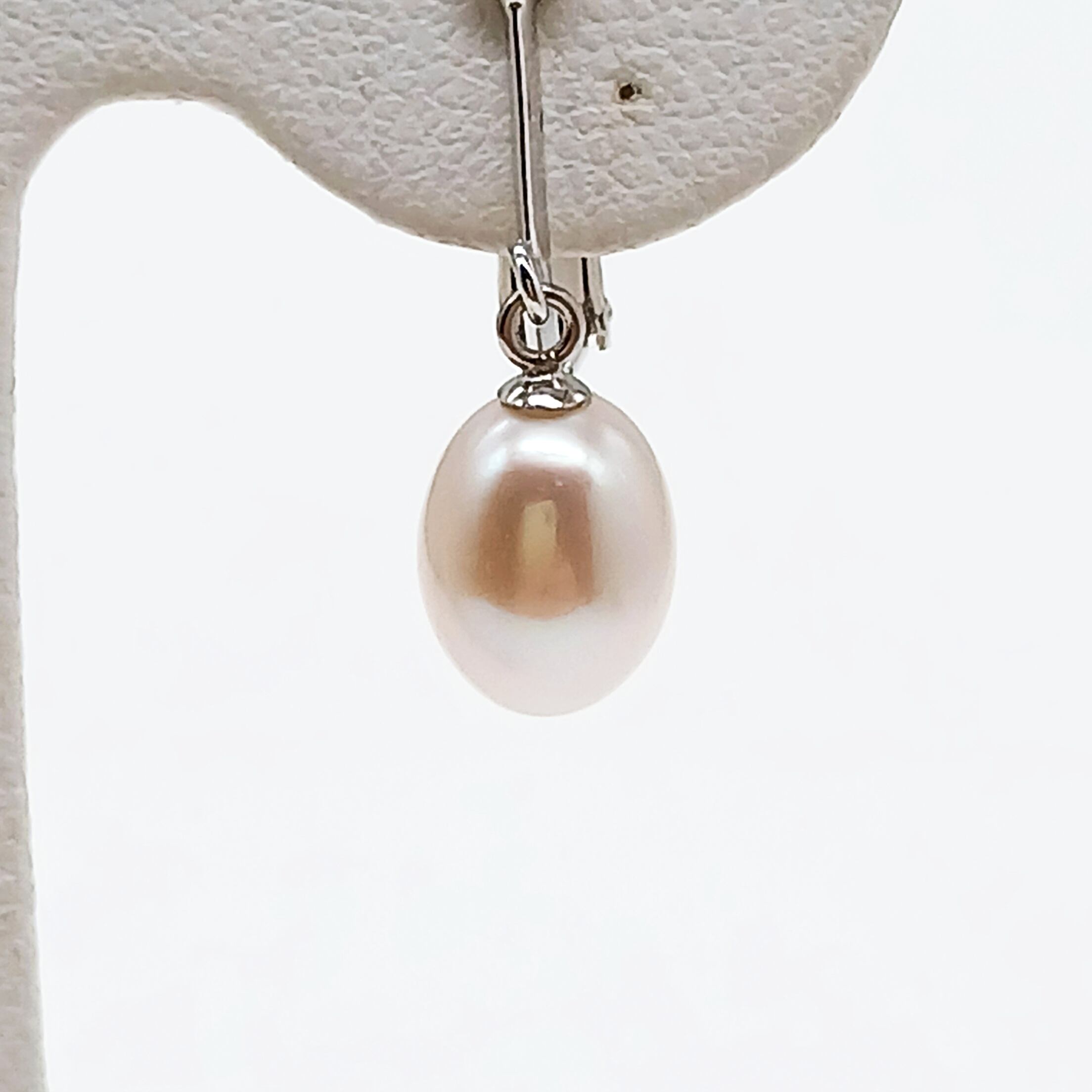 SVライス型淡水真珠ぶら下がりイヤリング・照りの良い真珠(商品番号15-881)