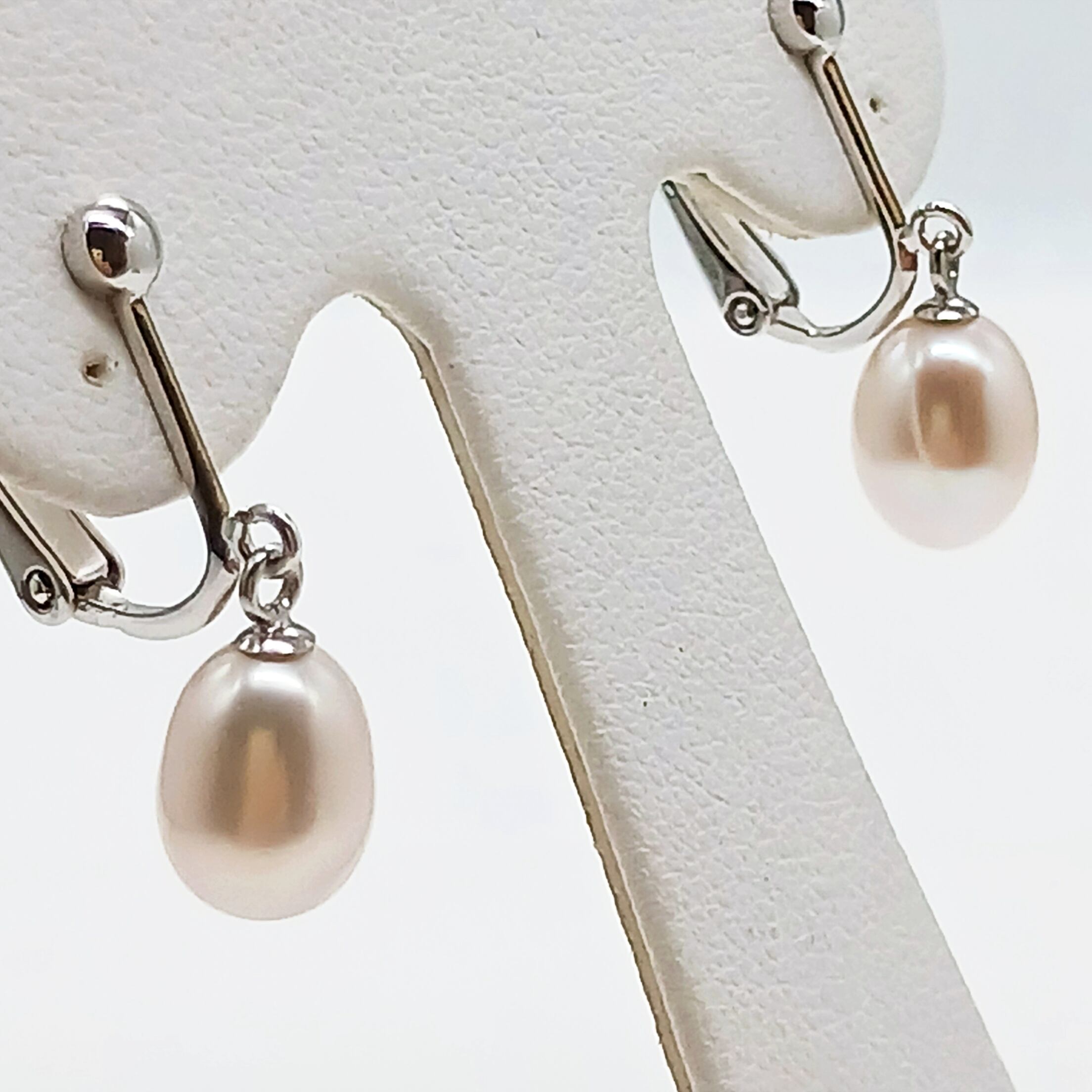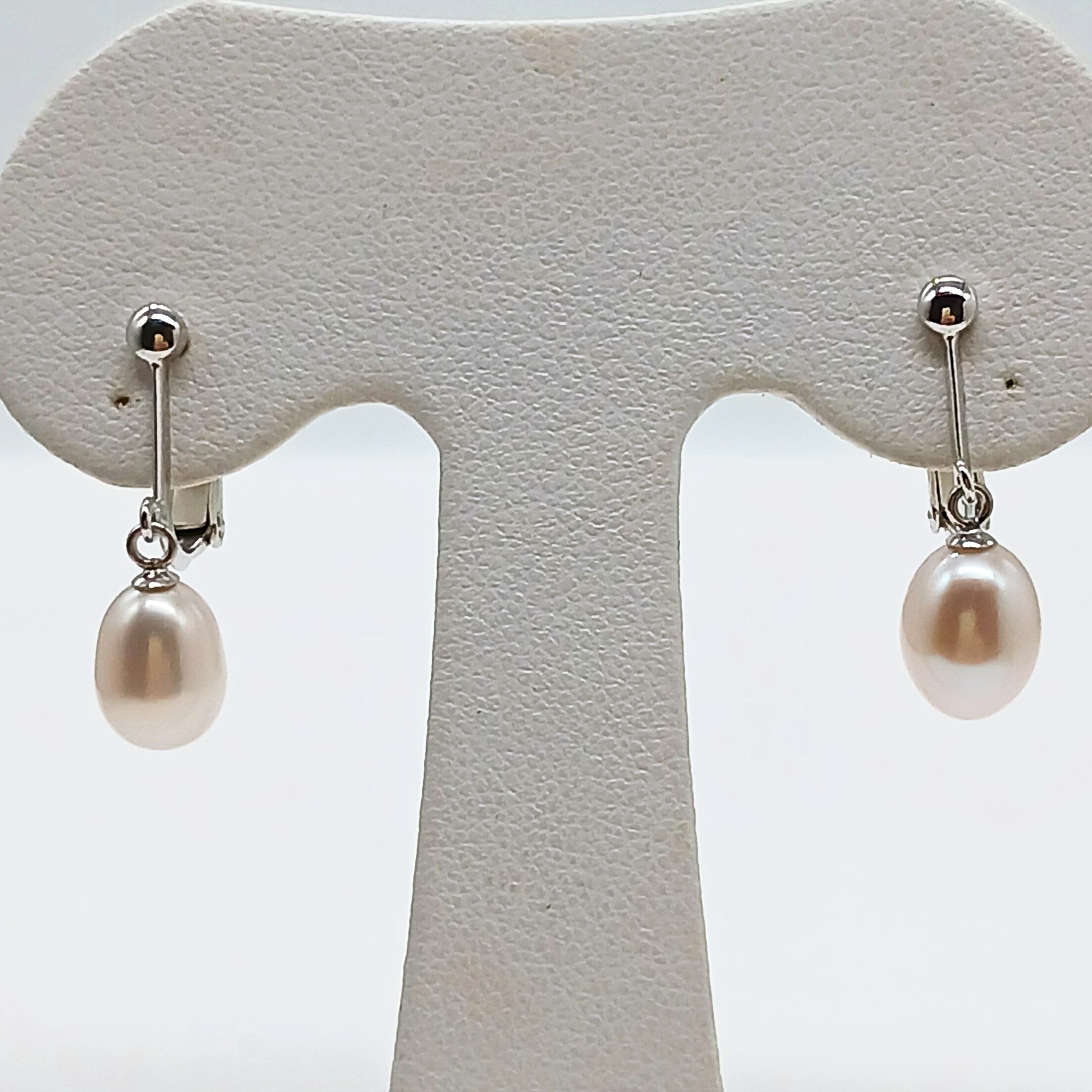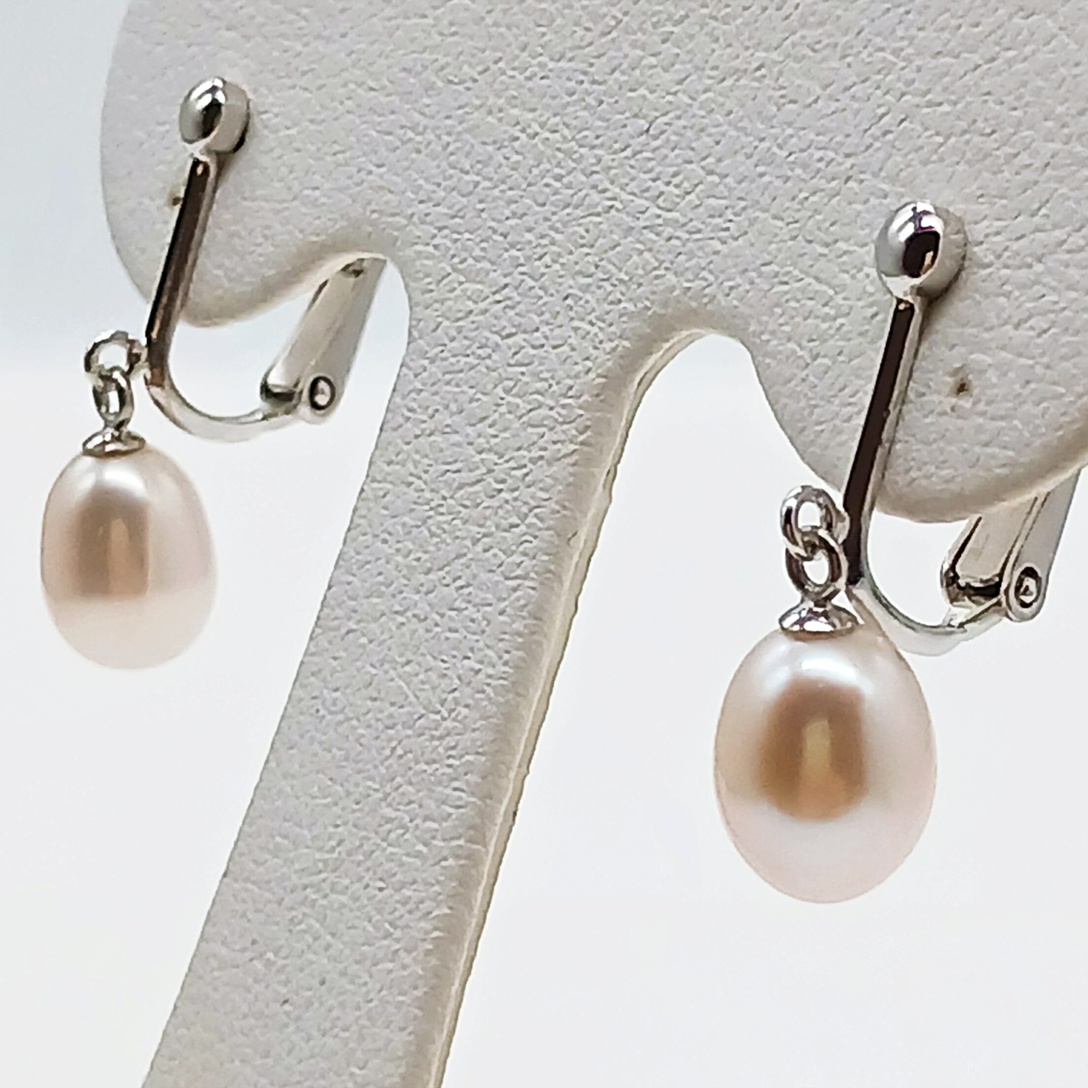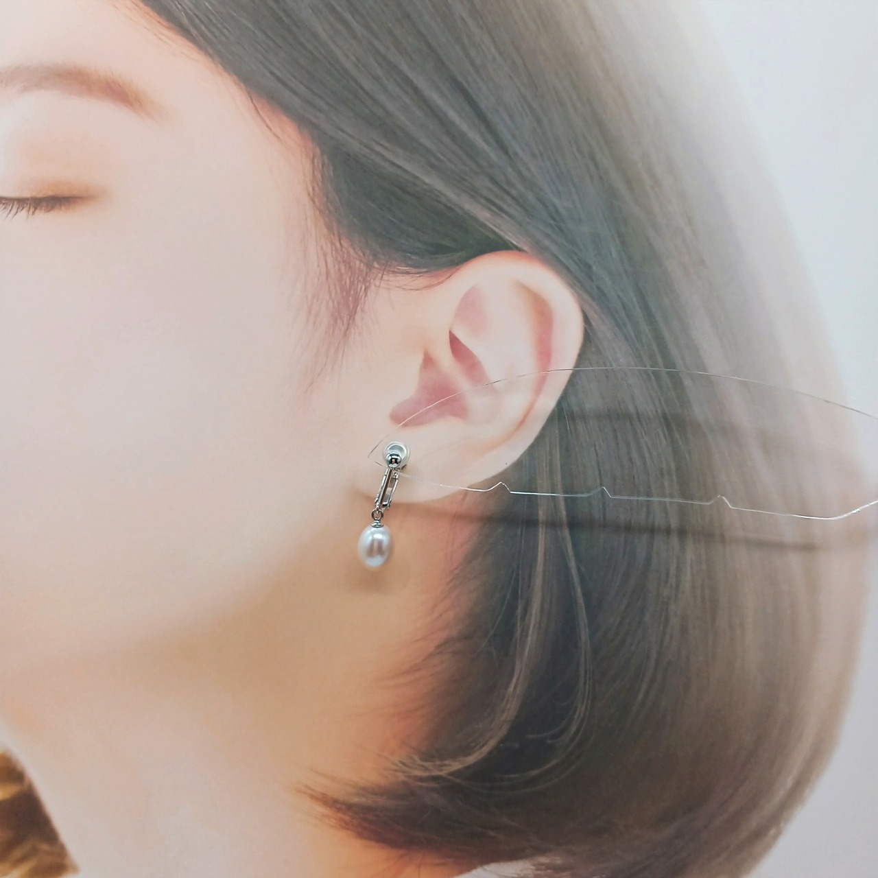 SVライス型淡水真珠ぶら下がりイヤリング・照りの良い真珠(商品番号15-881)