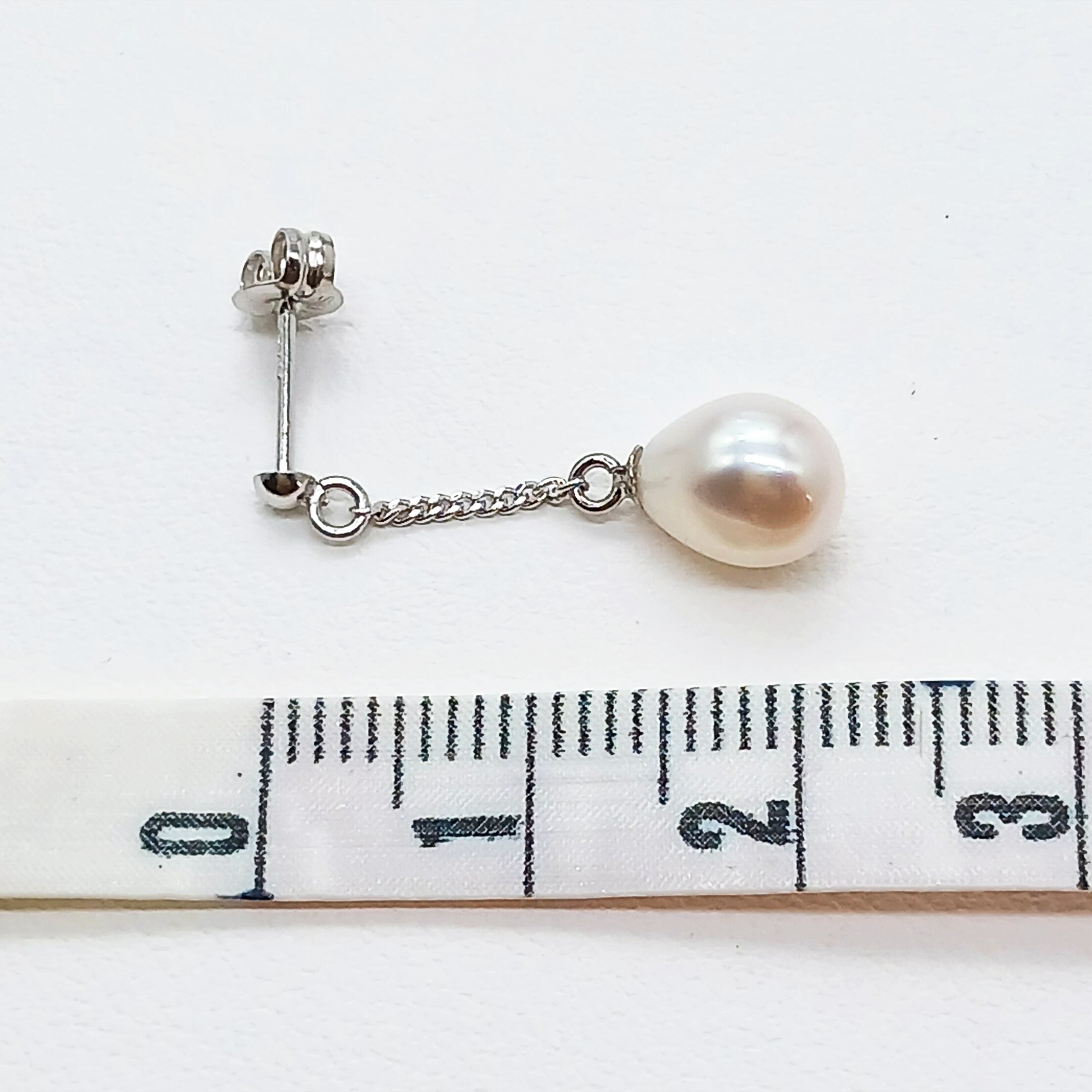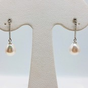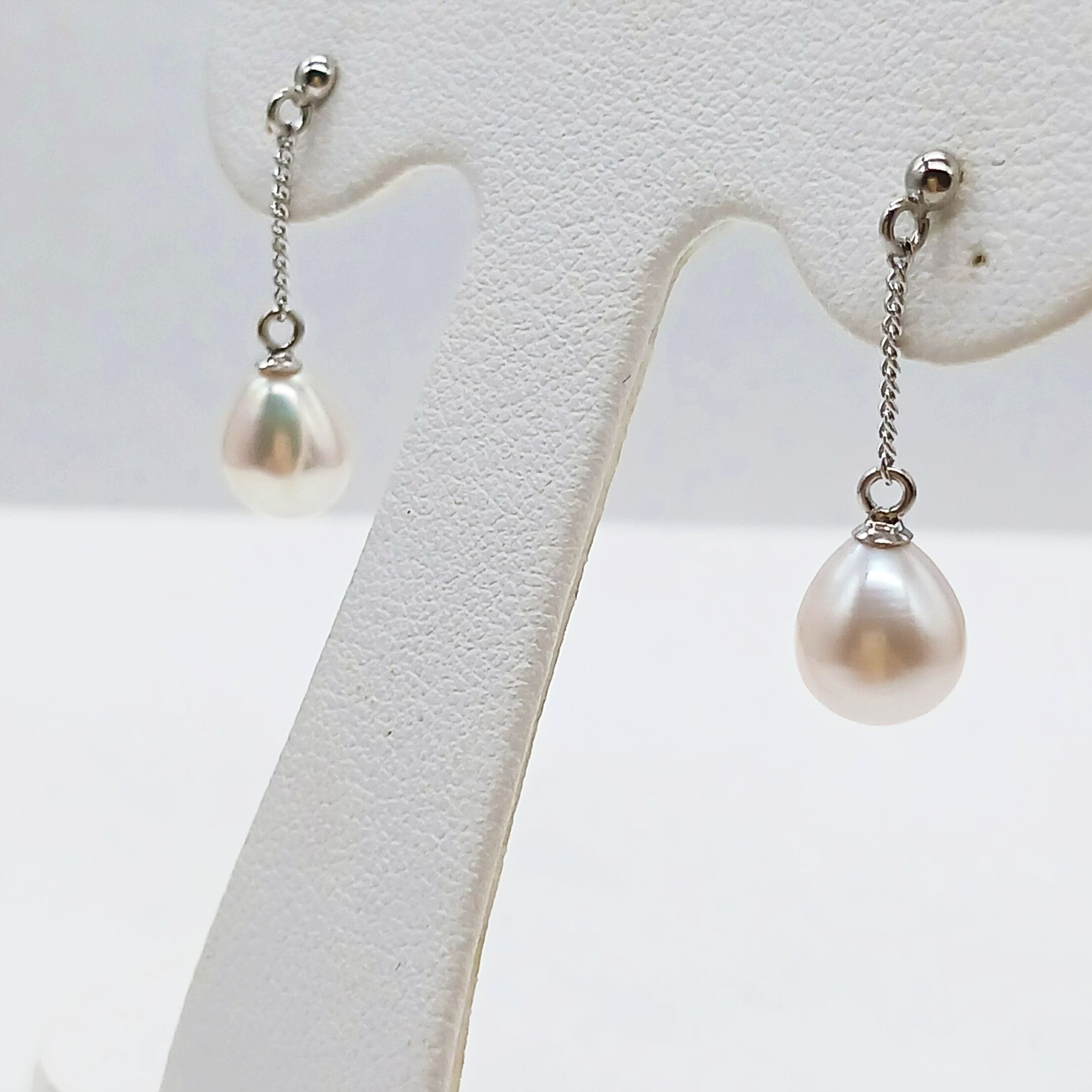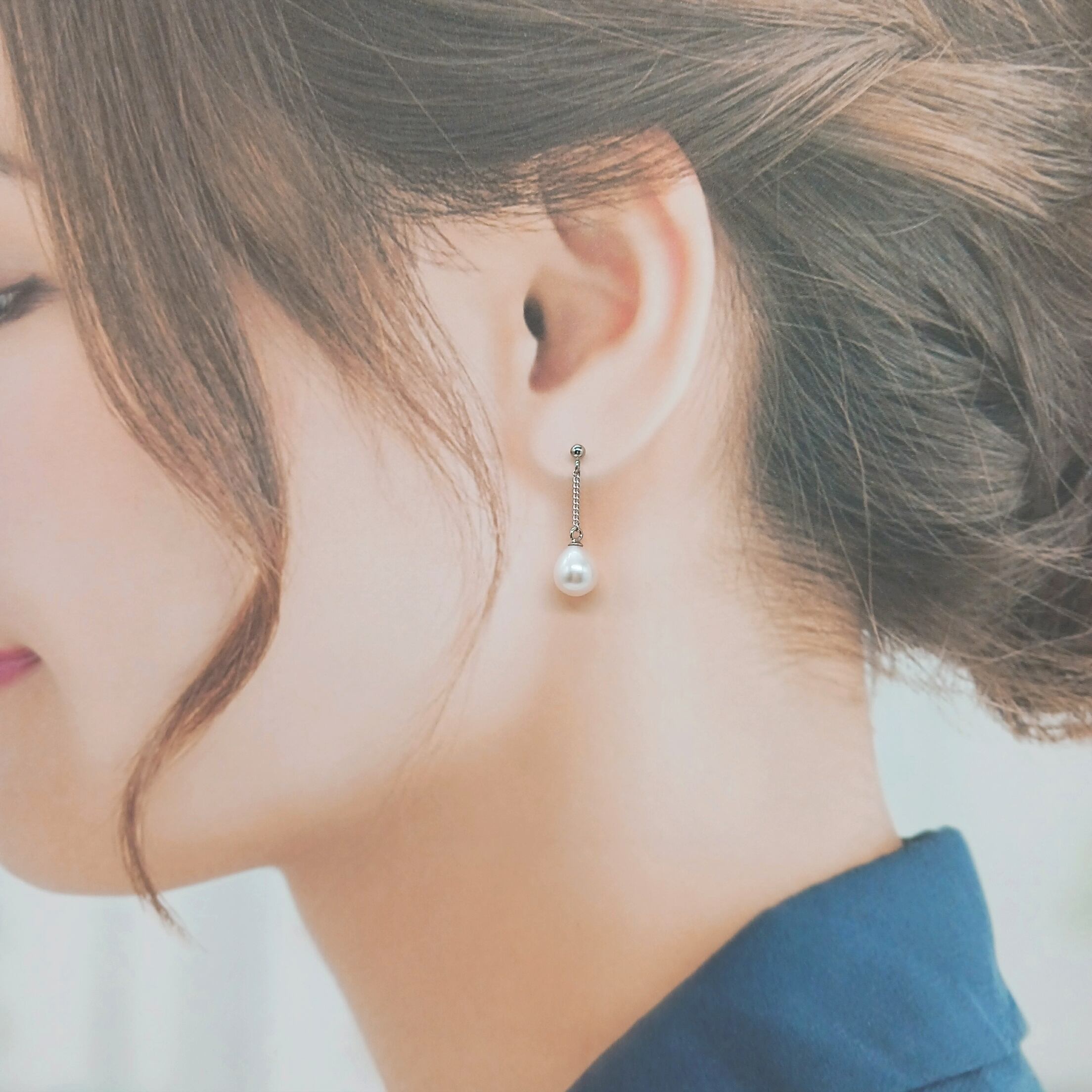 SVライス型淡水真珠ぶら下がりピアス・照りの良い真珠(商品番号15-882)
