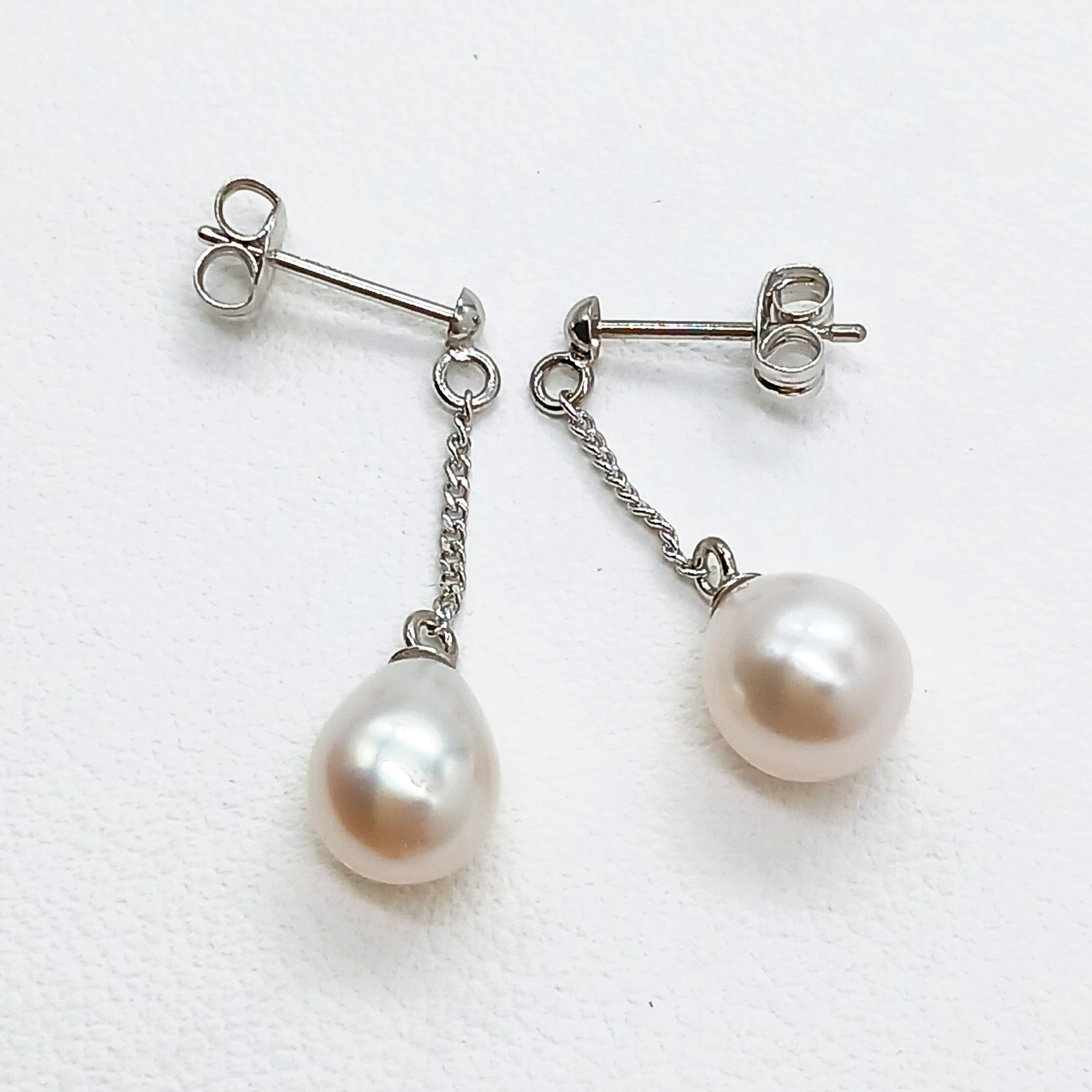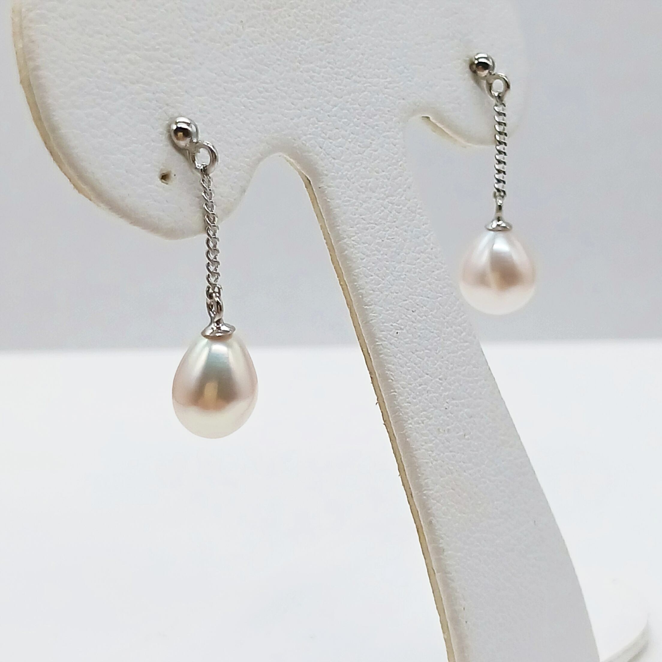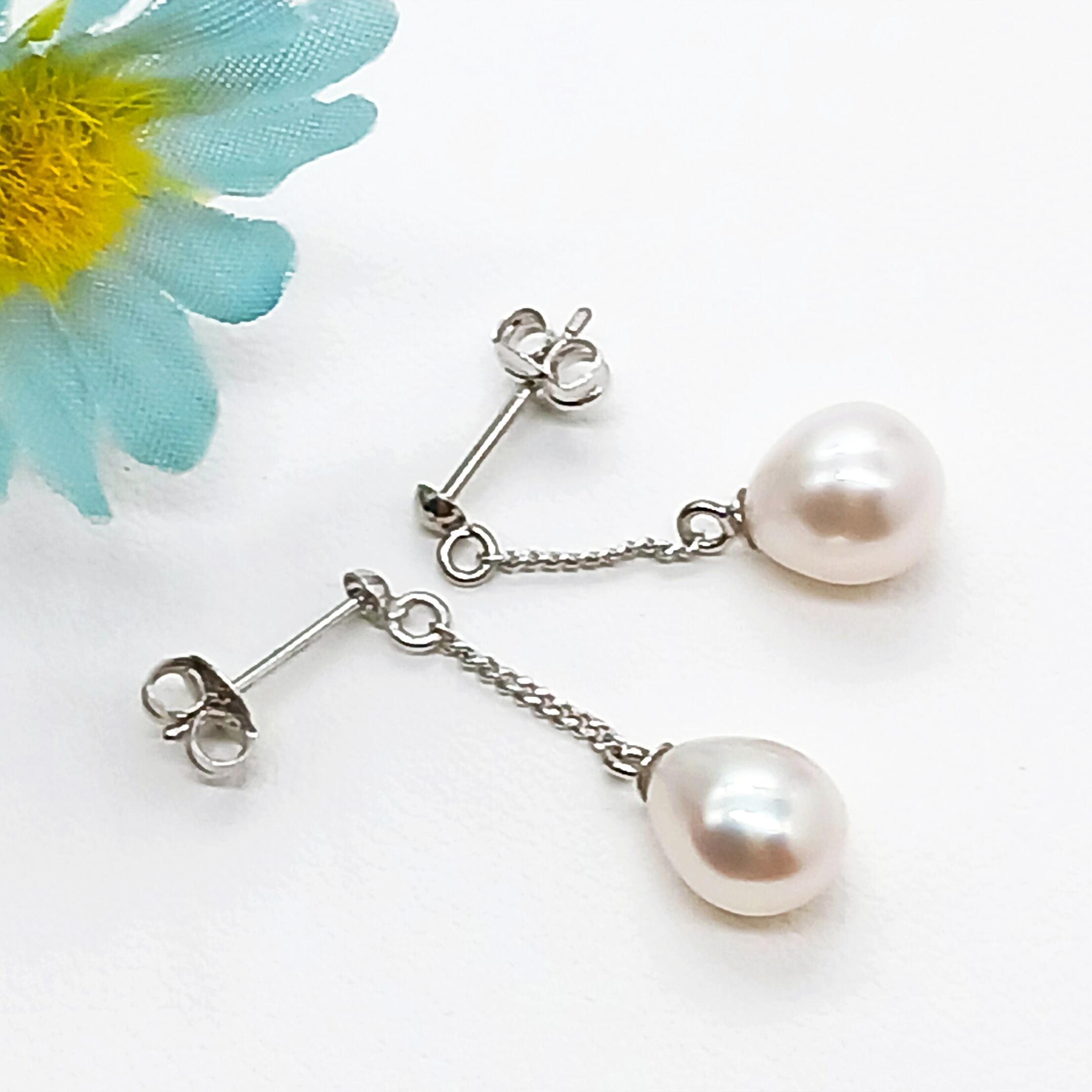 SVライス型淡水真珠ぶら下がりピアス・照りの良い真珠(商品番号15-882)