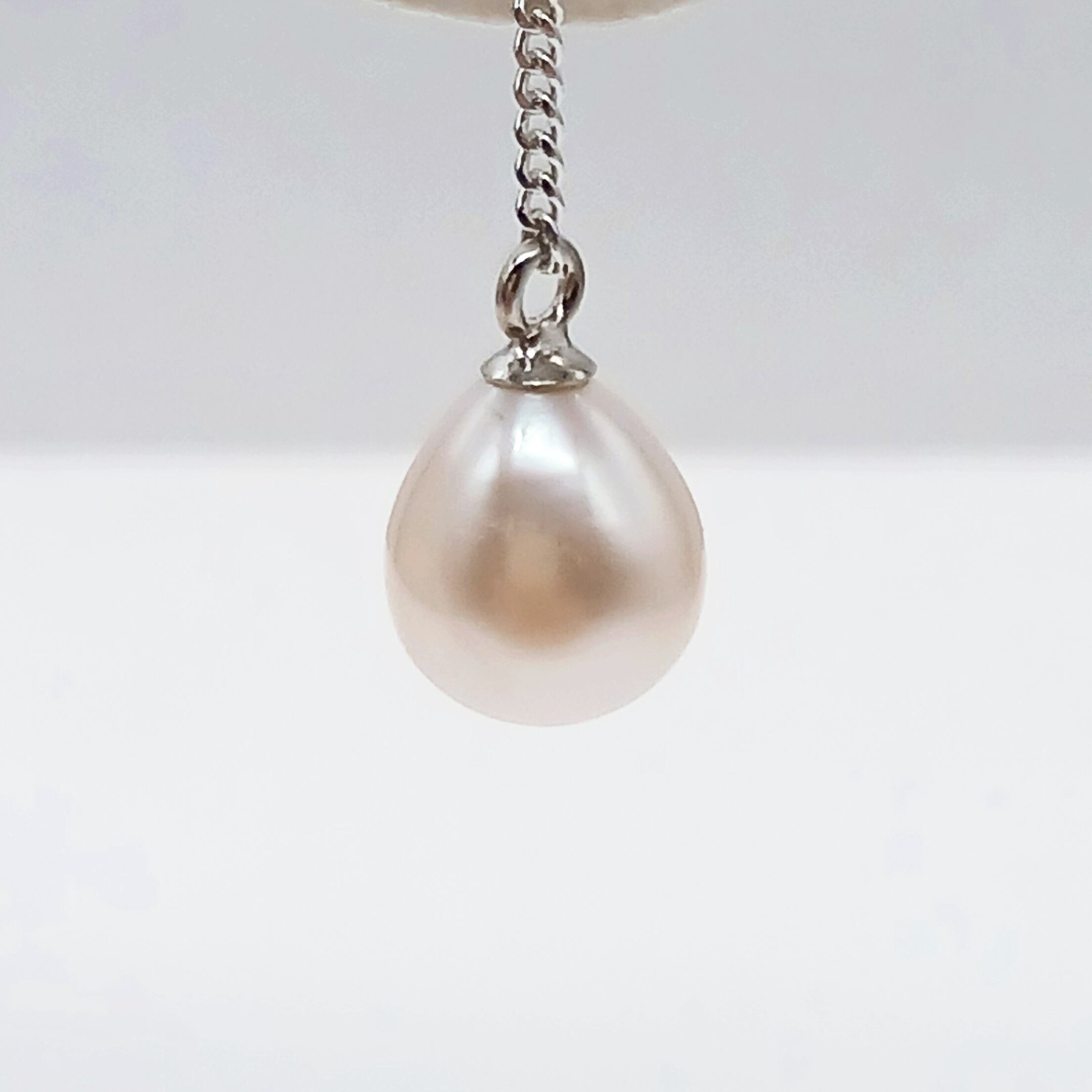 照りの良いライス型淡水真珠をチェーンでぶら下げた、