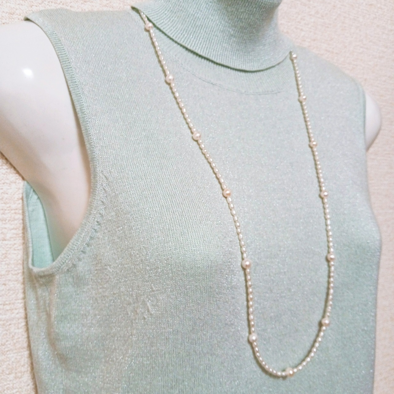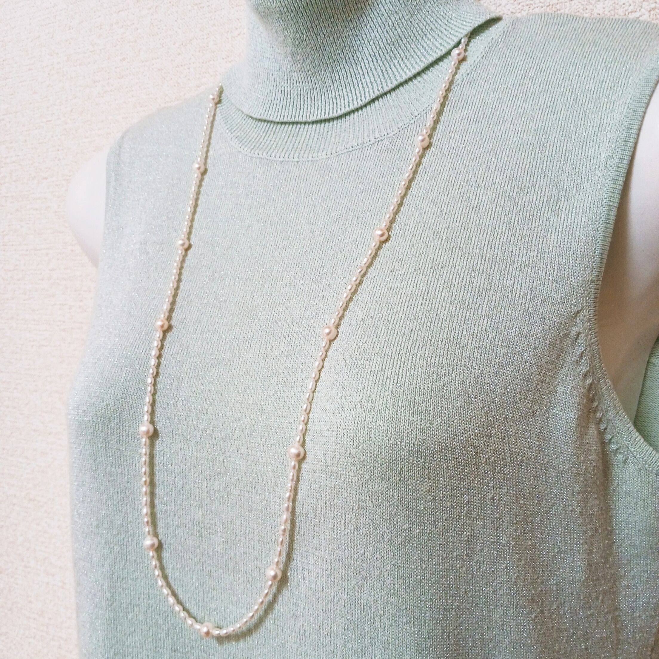 淡水真珠ステーションロングネックレス・照りの良い淡水真珠(商品番号15-886)