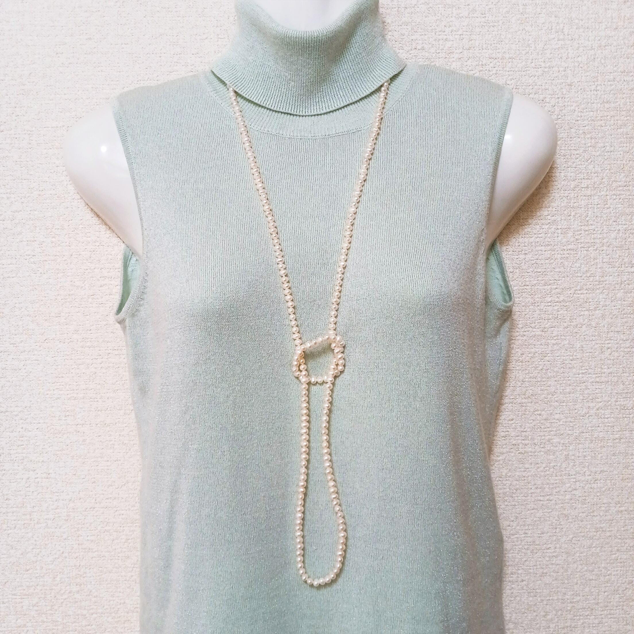 淡水真珠ロングネックレス・約5×6ミリホワイト系・長さ約115センチ(商品番号15-888)