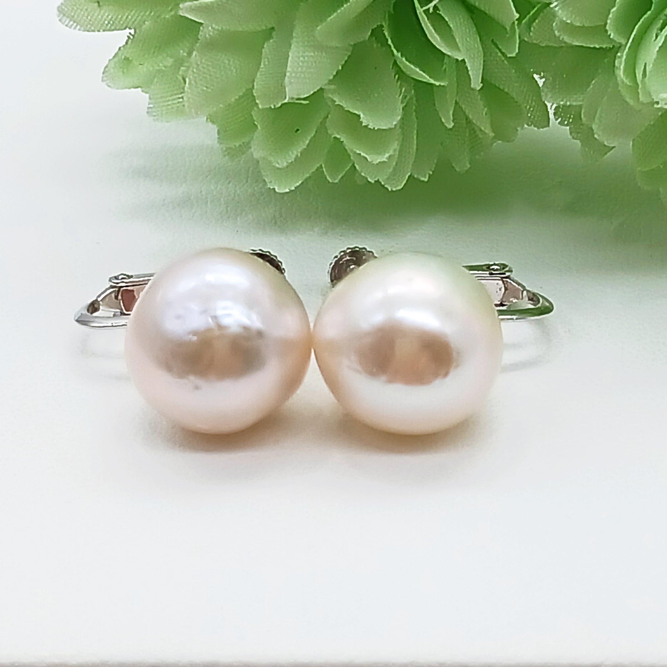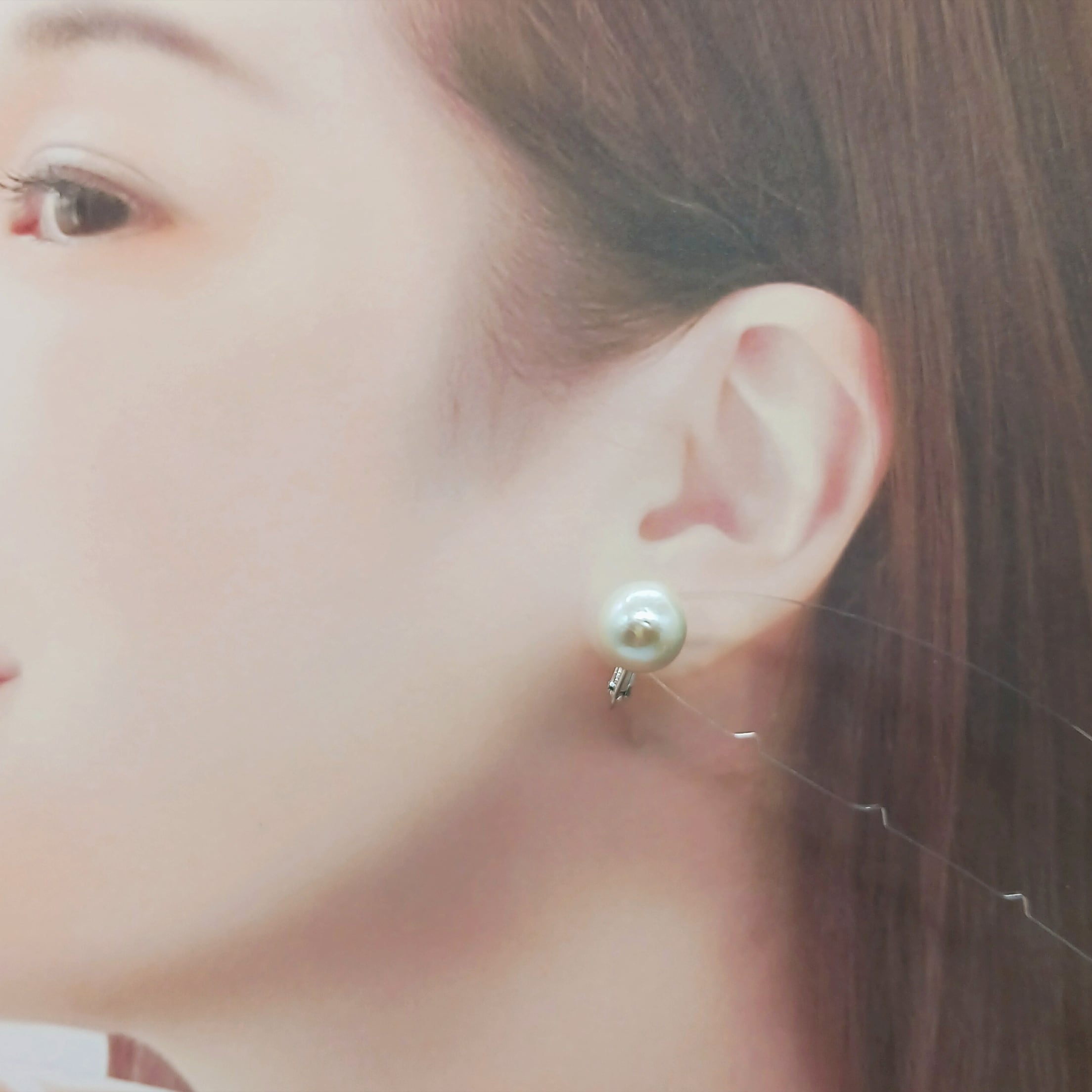 少し歪な形の大きな淡水真珠の直付けタイプイヤリングです。