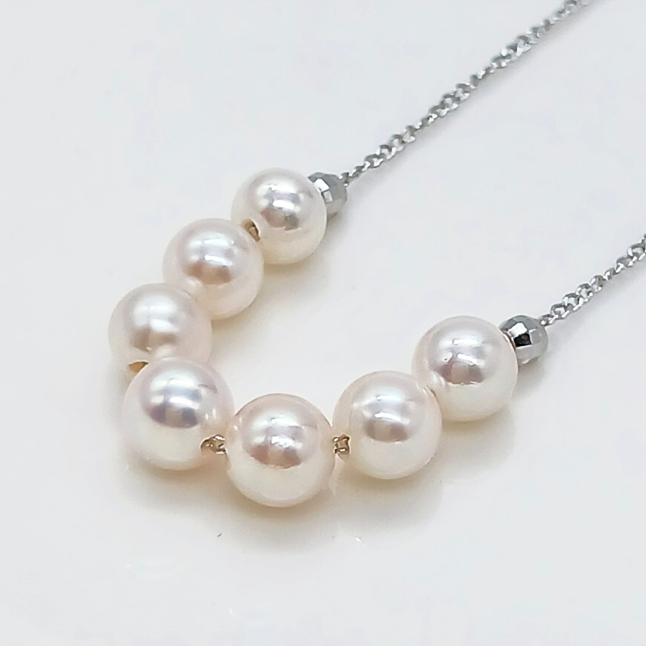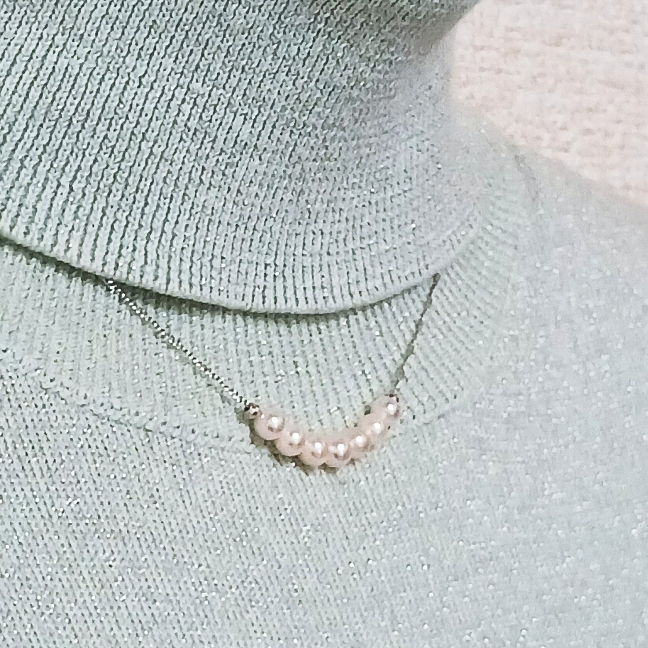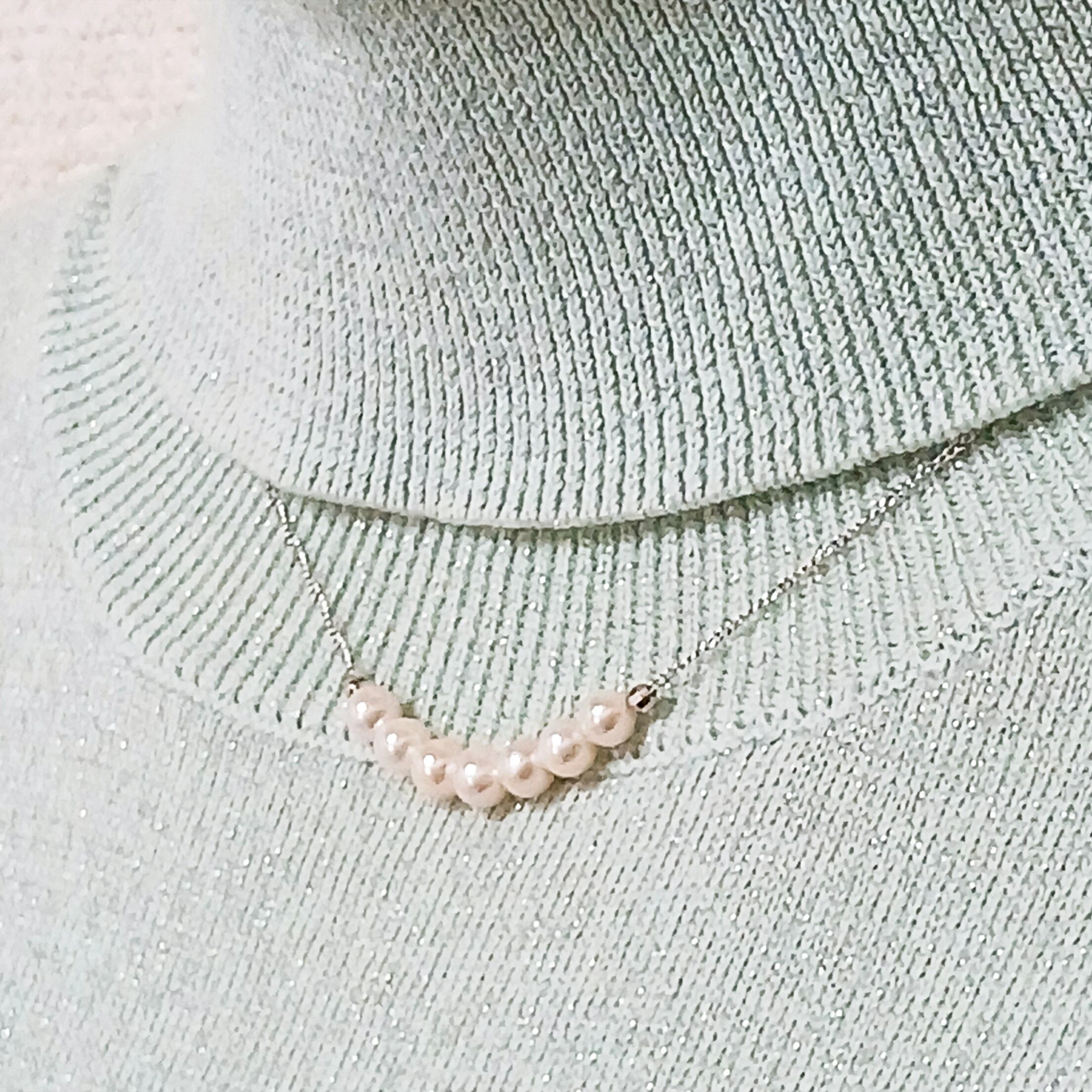 小さな真珠7珠をチェーンに通した、