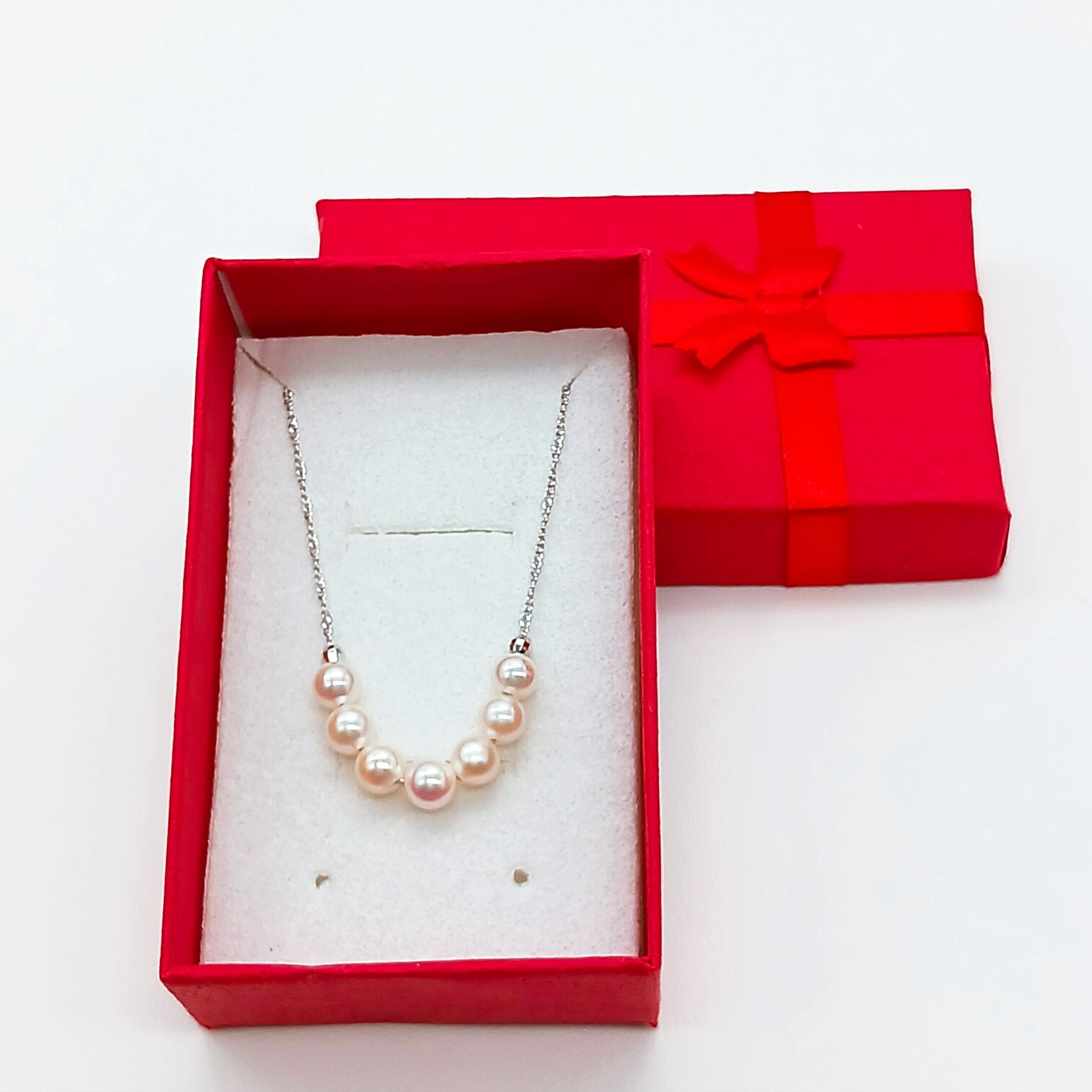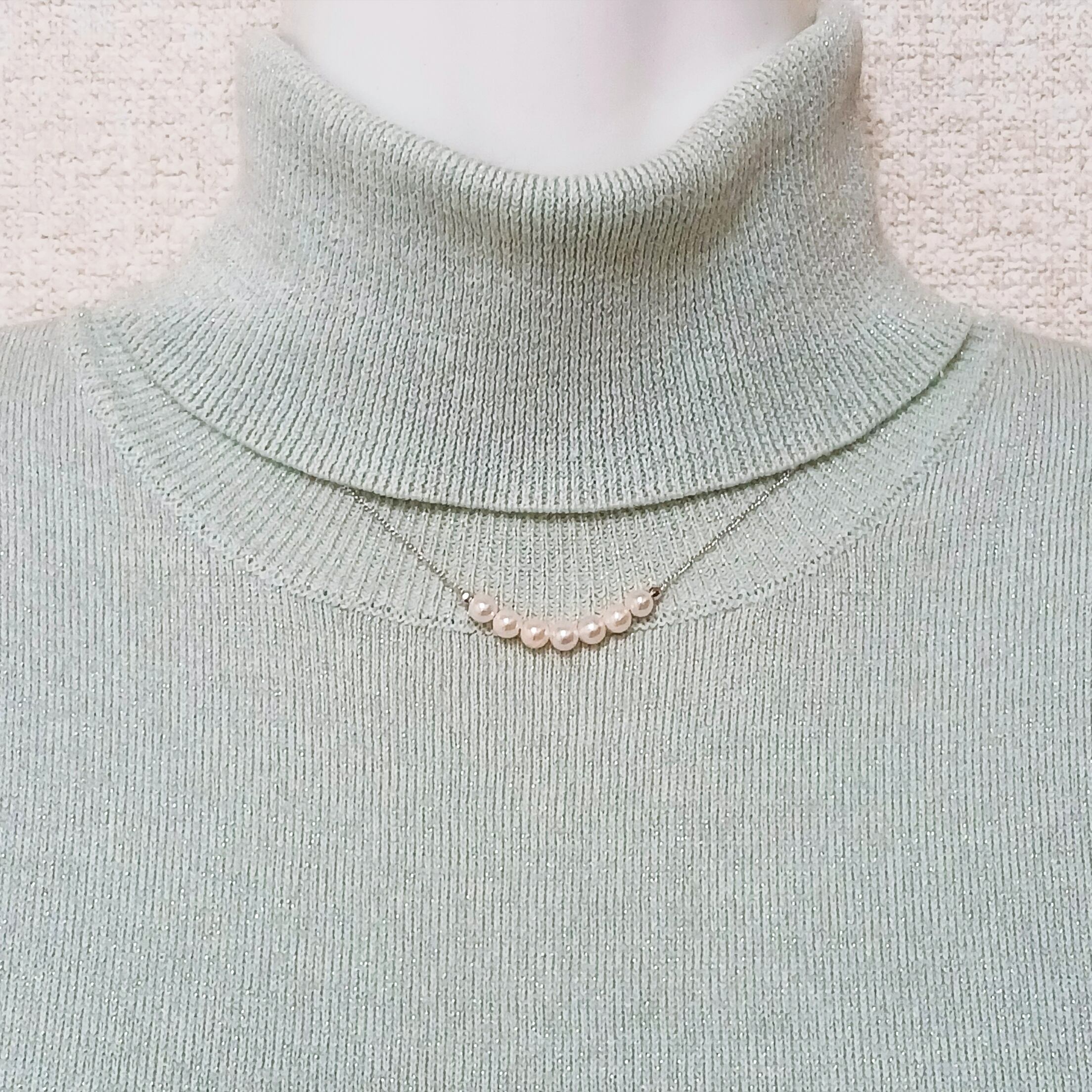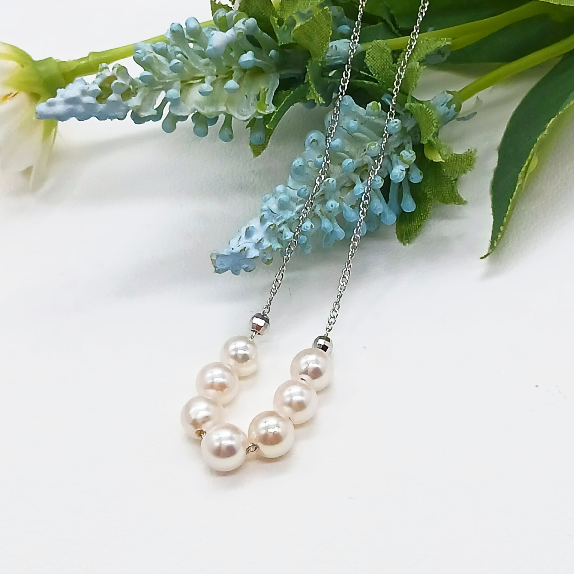 小さな真珠7珠をチェーンに通した、