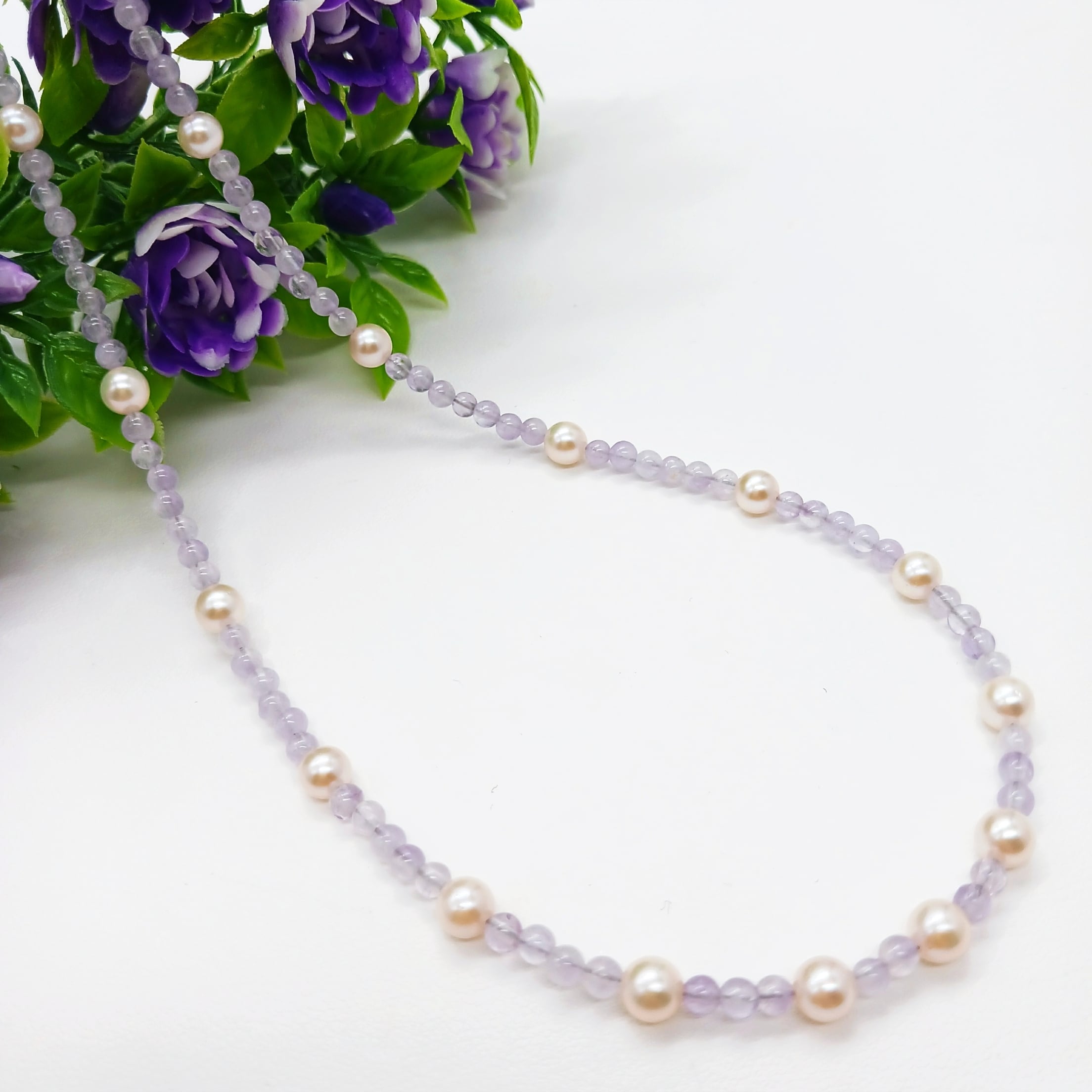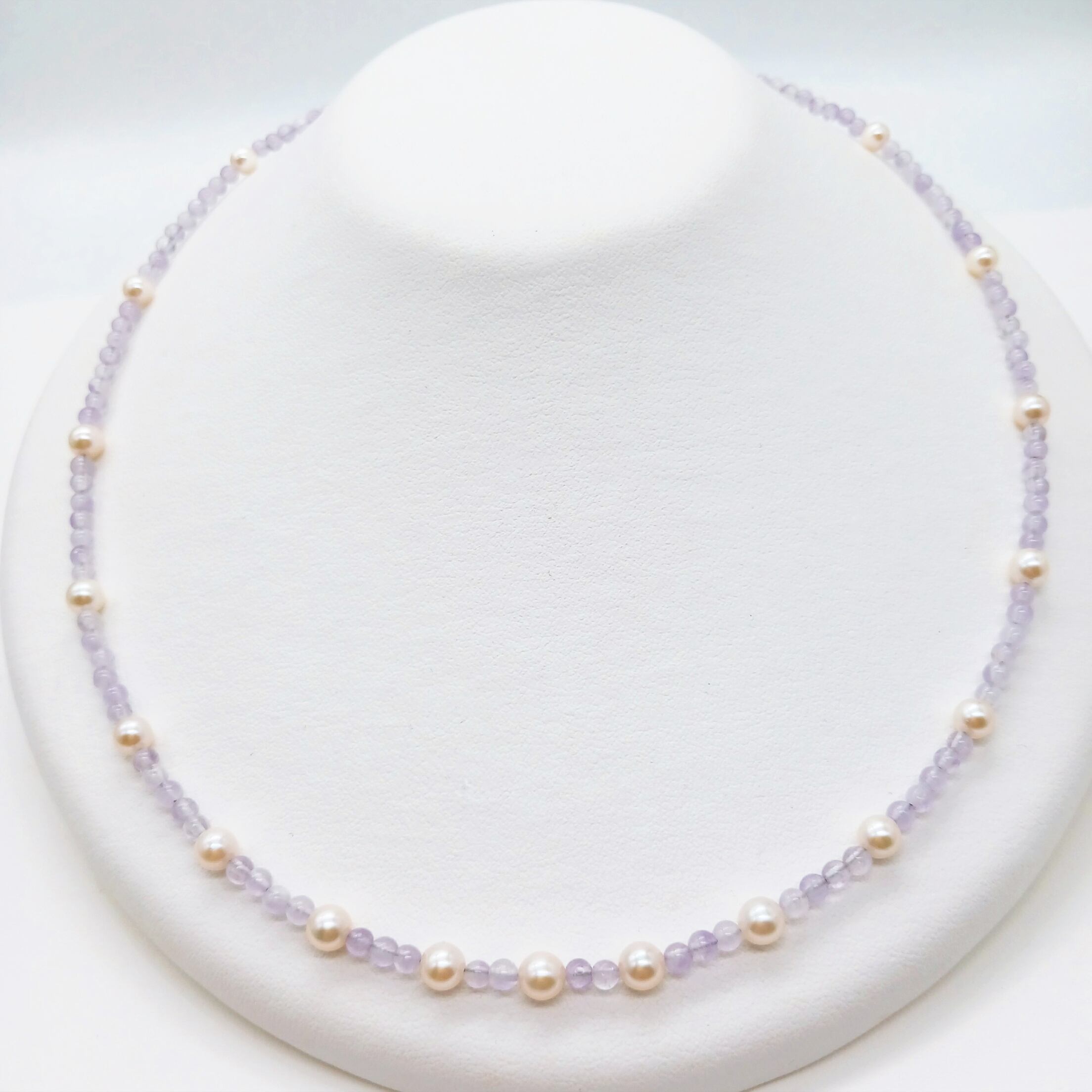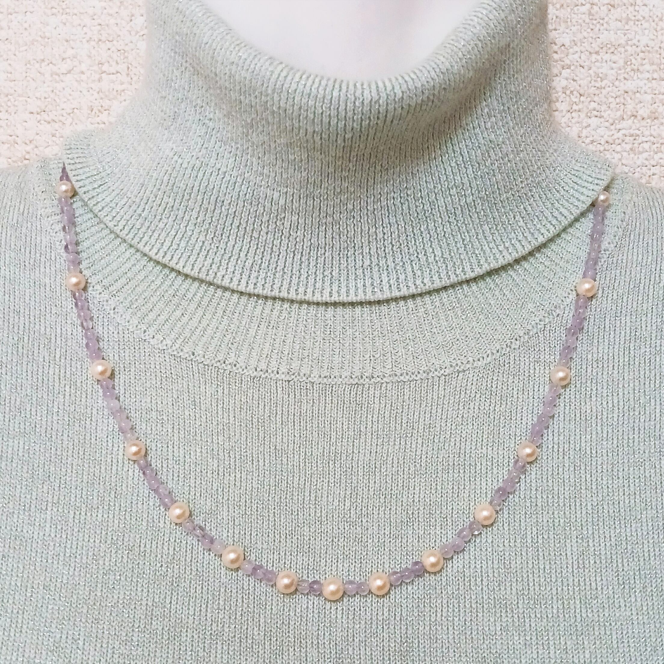 あこやベビー真珠とラベンダーアメジストのネックレス(商品番号15-897)