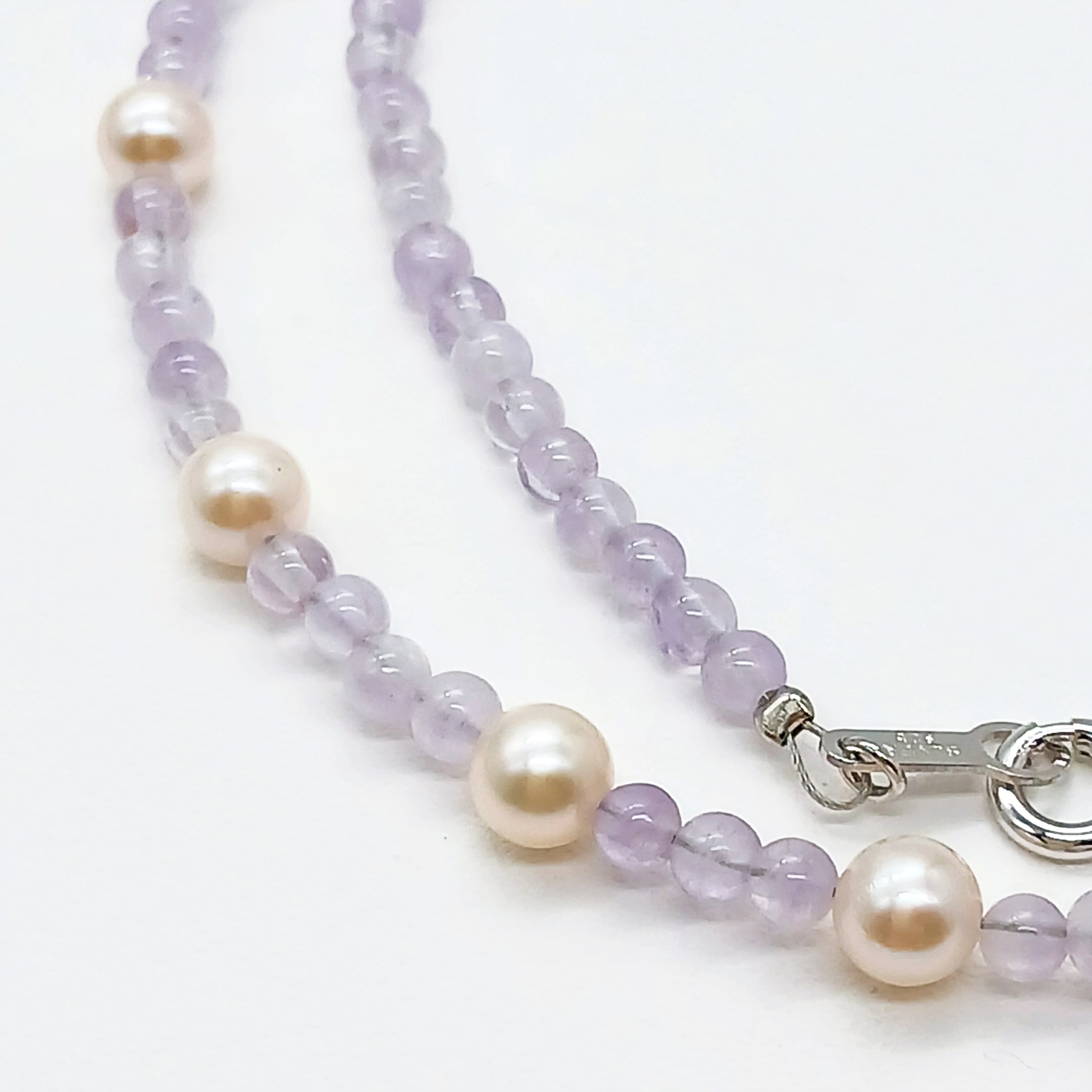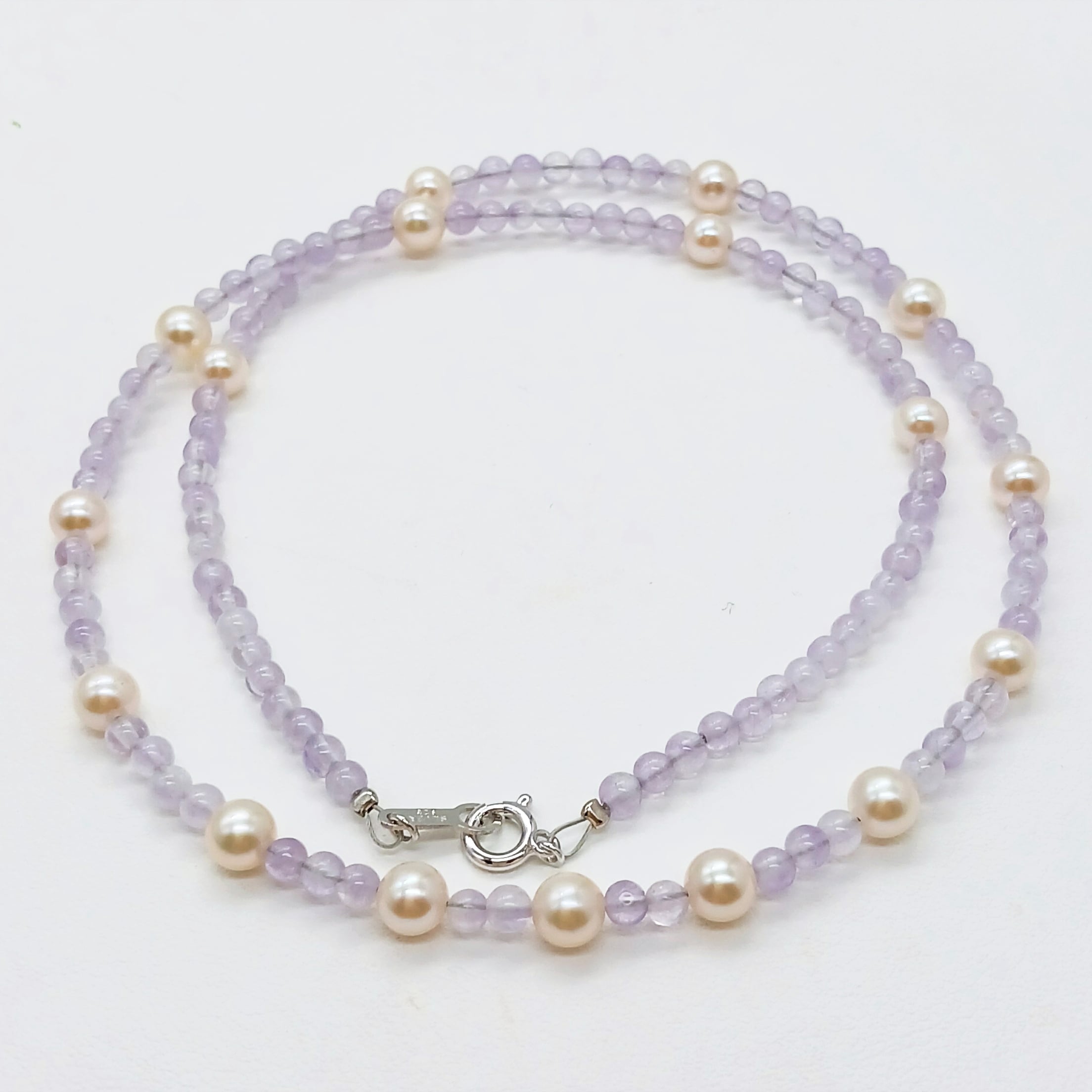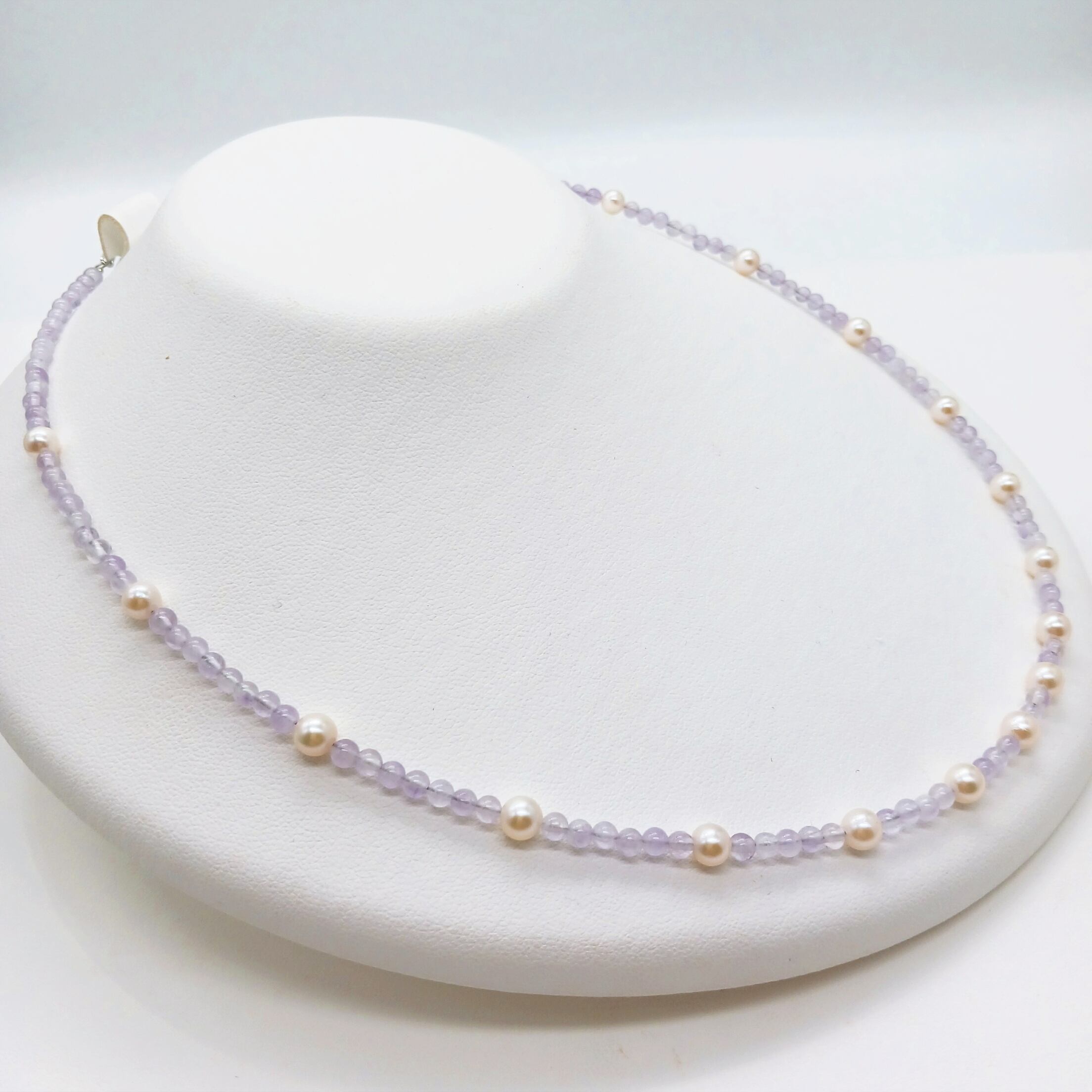 あこやベビー真珠とラベンダーアメジストのネックレス(商品番号15-897)