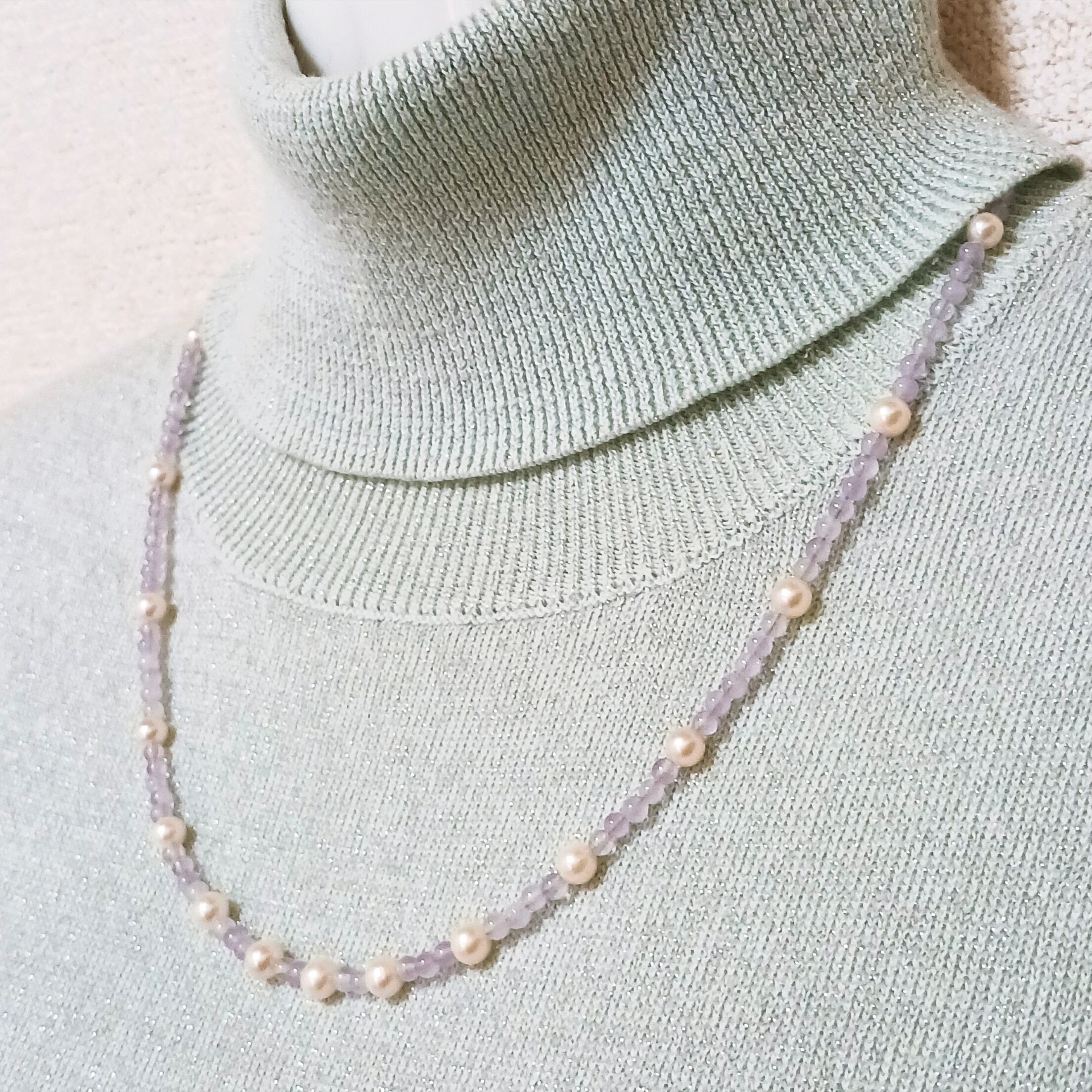 あこやベビー真珠と薄紫色のラベンダーアメジストで作製した、