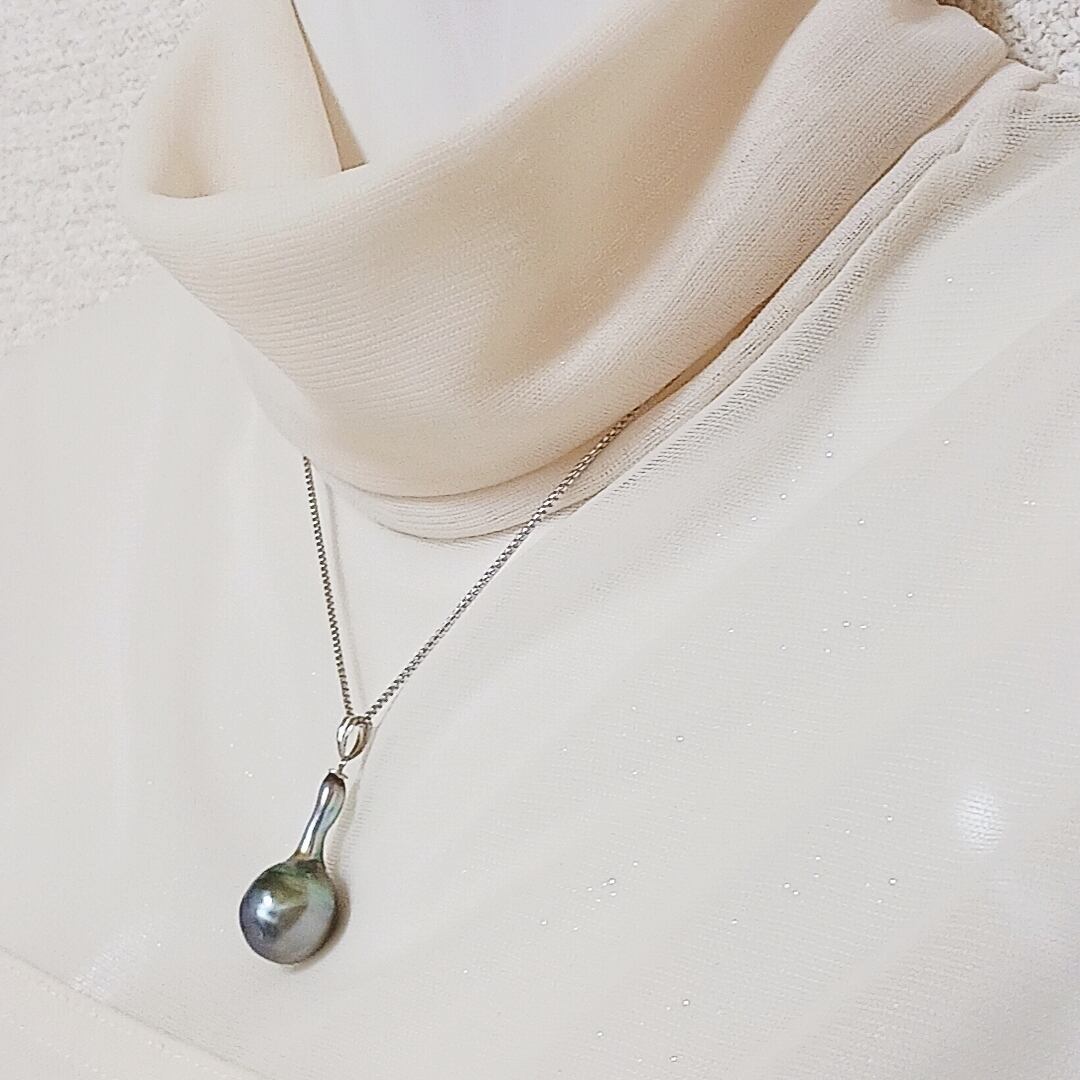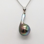 SVチェーン付きK14WG南洋黒蝶バロック真珠ペンダントトップ・横幅約13ミリ珠 (商品番号9-445)