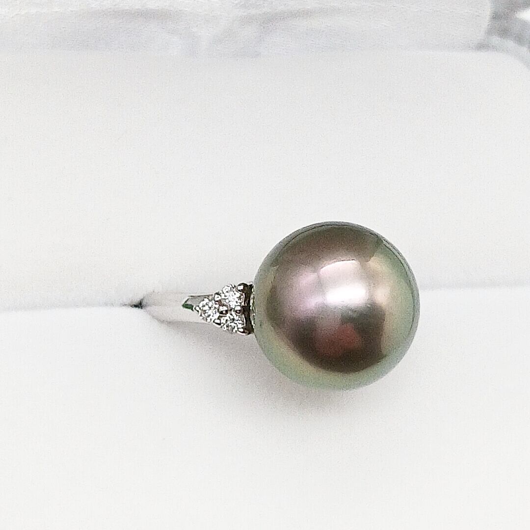 PT南洋黒蝶真珠リング・照りの良いグレー系11、4ミリ ミニ鑑別書付き(商品番号9-462)