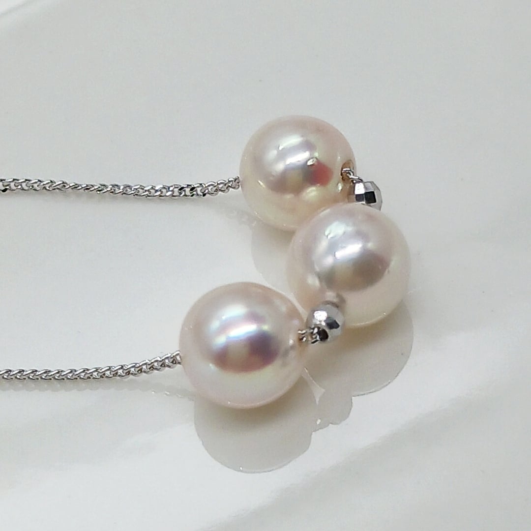 あこや真珠を3珠通したバランスの良いネックレスです。