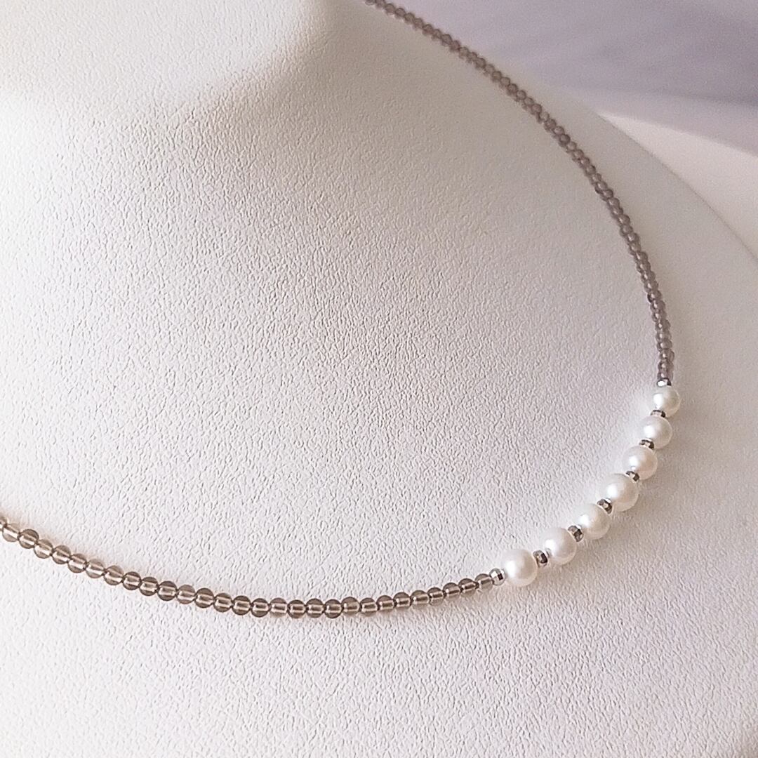 2ミリの丸珠のスモーキークォーツネックレスです。