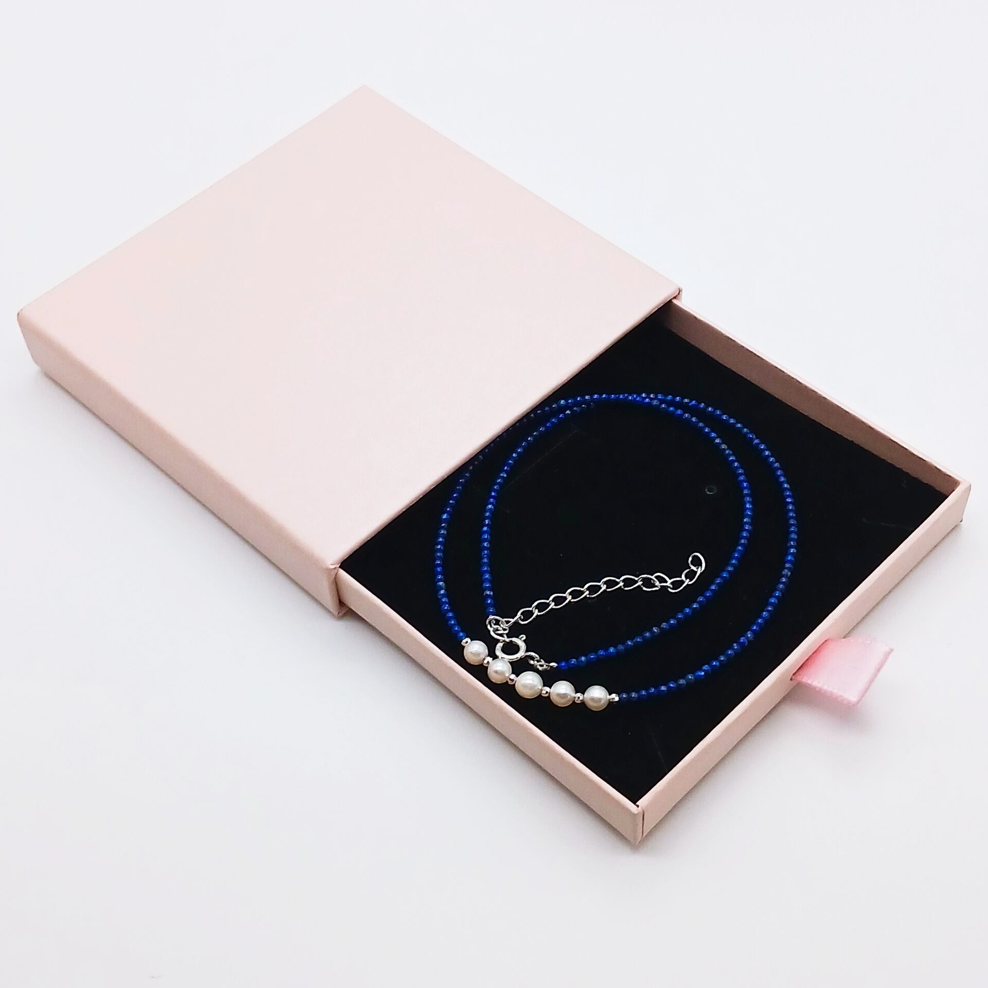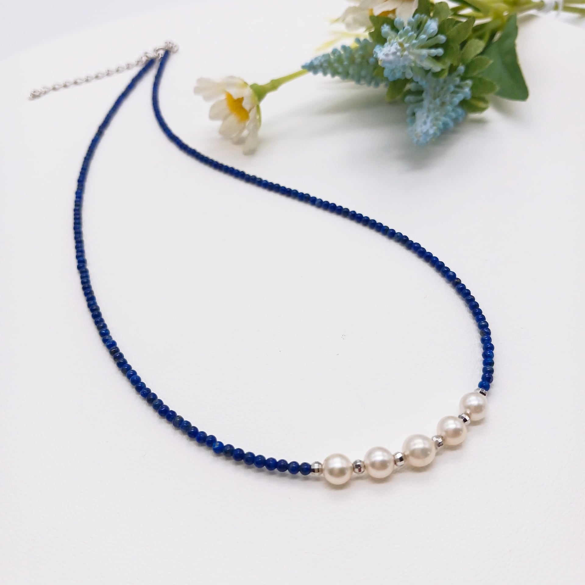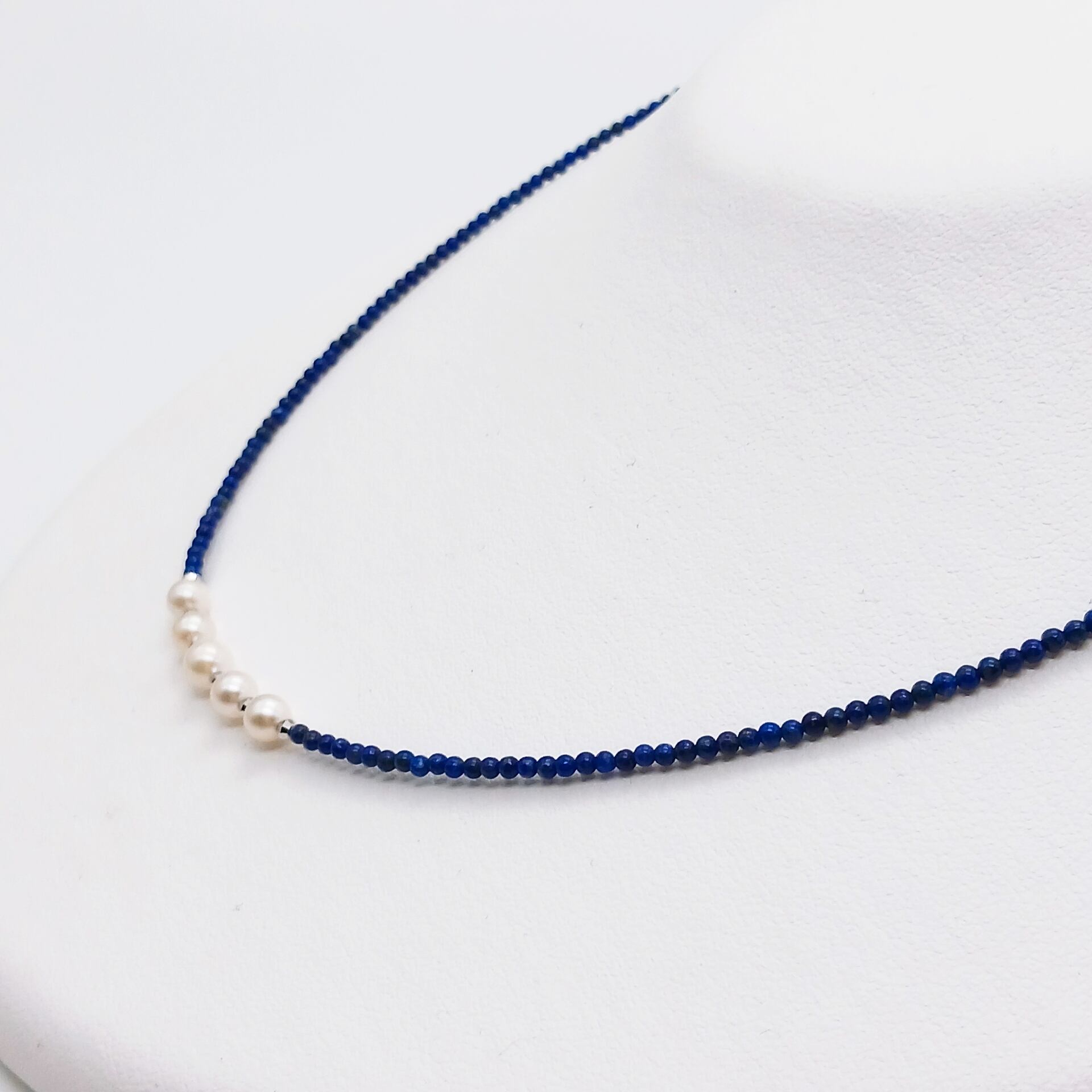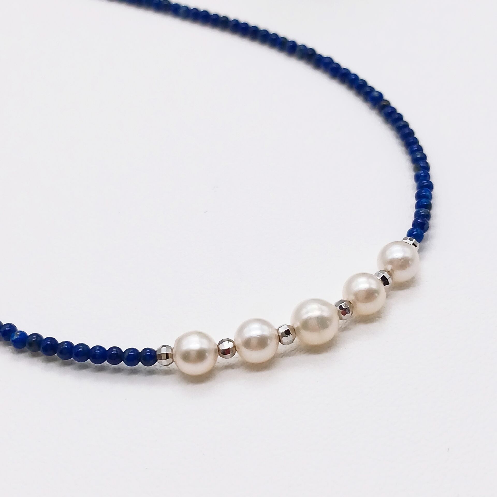 あこやベビー真珠入りラピスラズリネックレス・ホワイト系4、4~4、8ミリ(商品番号10-511)