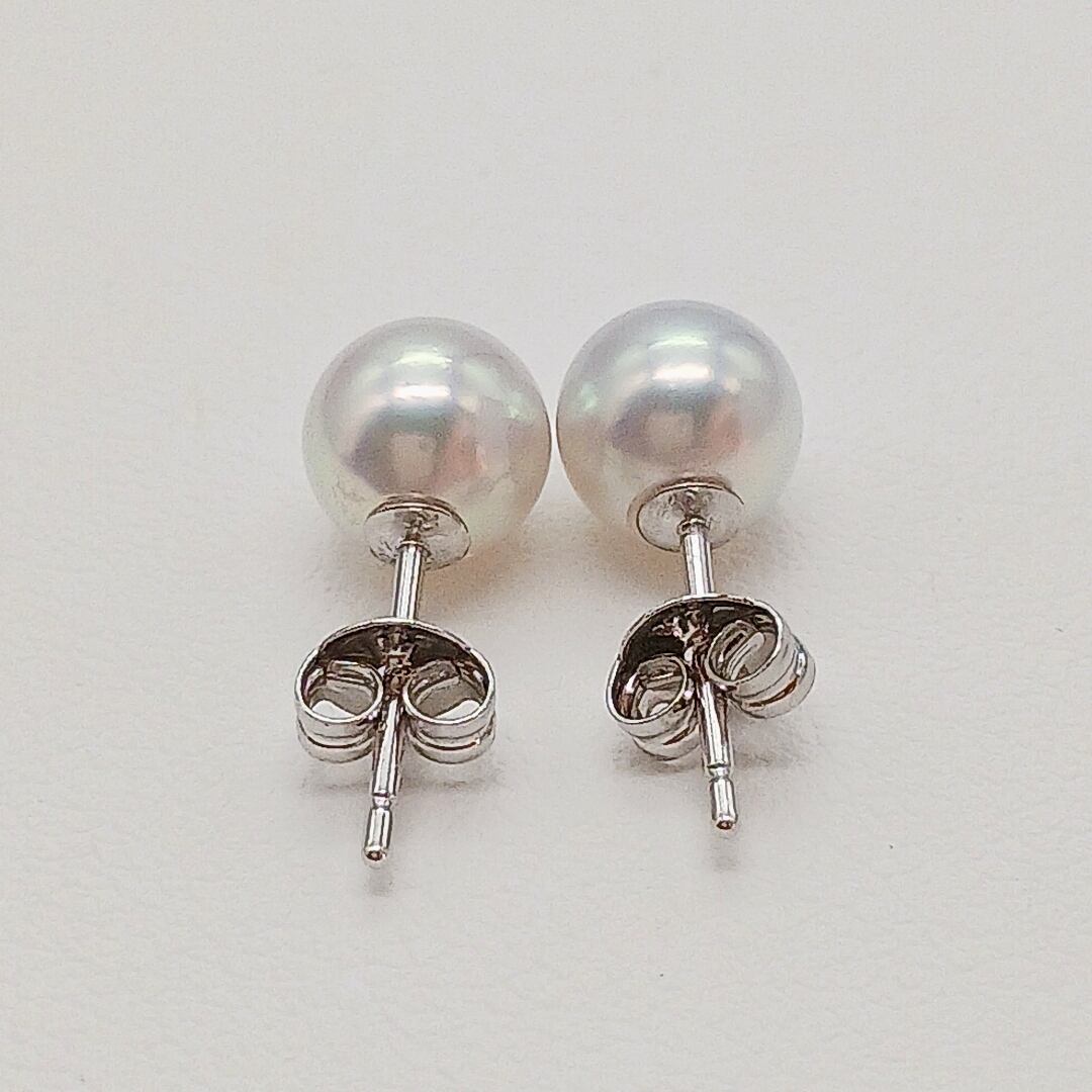 SVあこや無調色真珠ピアス・ブルーグレー6、7ミリ珠(商品番号10-509)