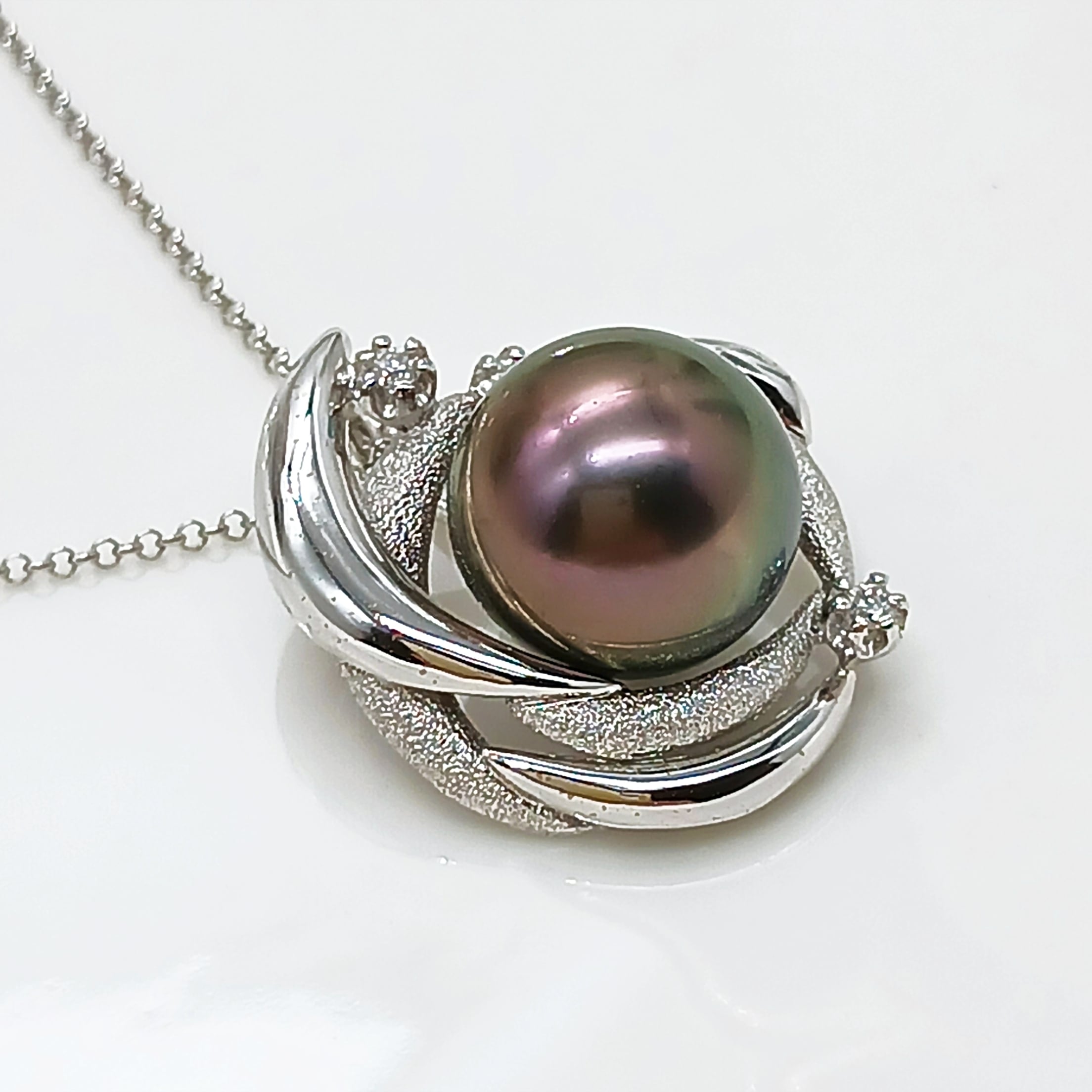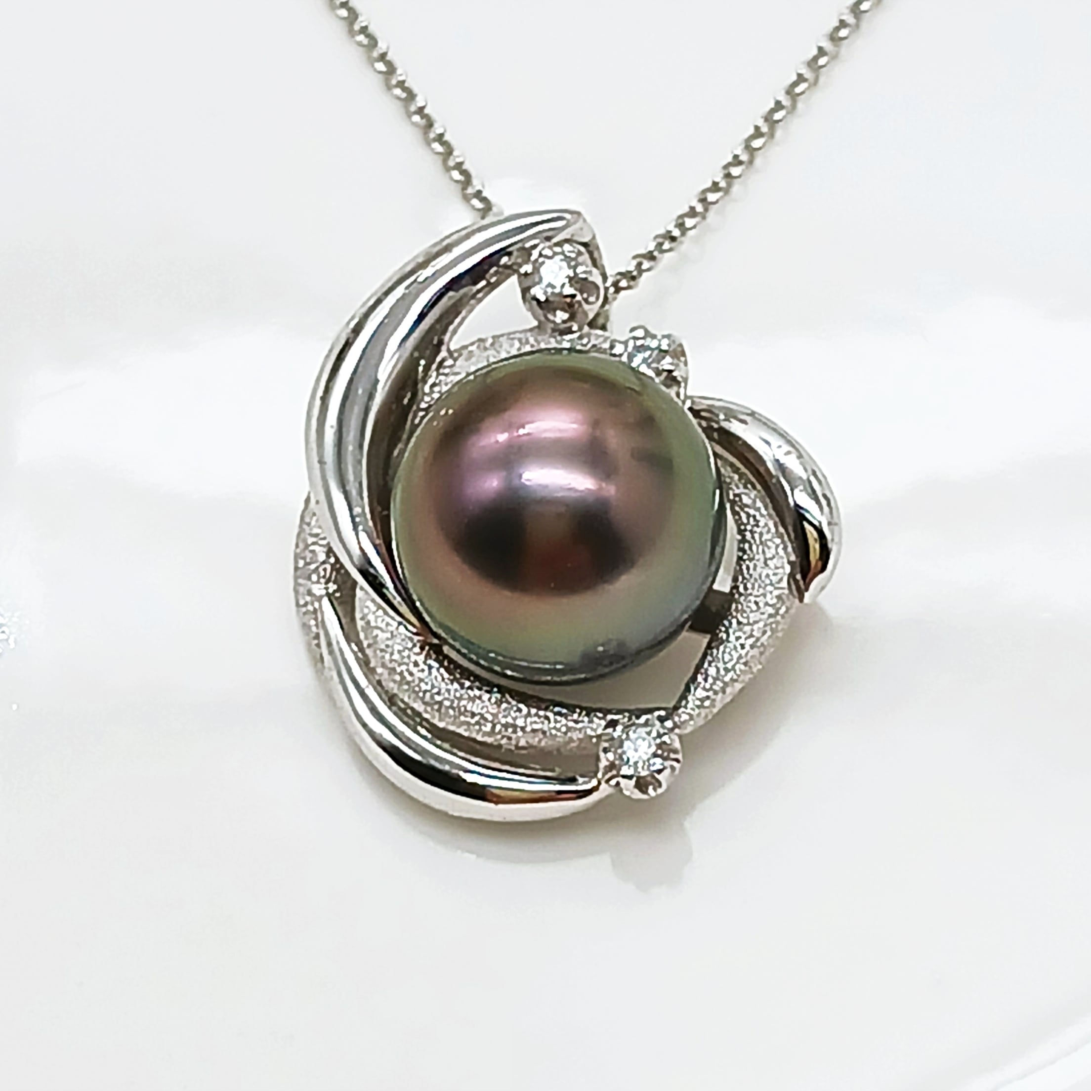 K18WG南洋黒蝶真珠ペンダント・10,5ミリ珠 ミニ鑑別書付き(商品番号2-73)