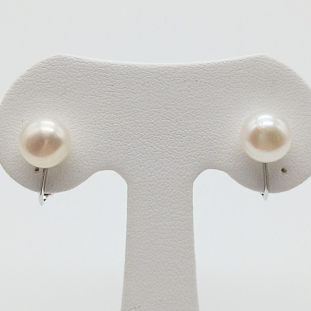 SV淡水真珠イヤリング・ホワイト系直径9、3ミリ珠(商品番号11-618)