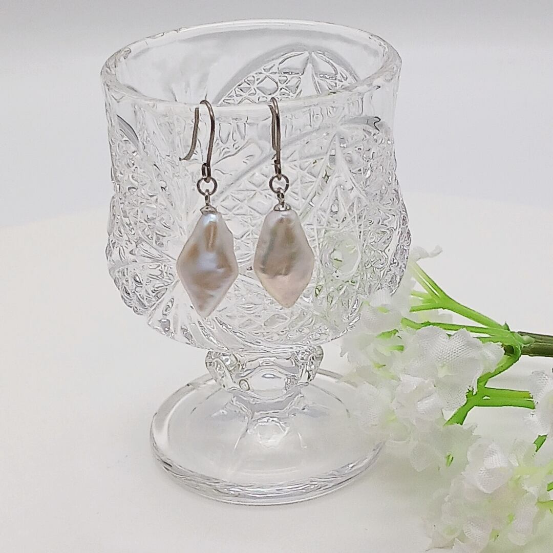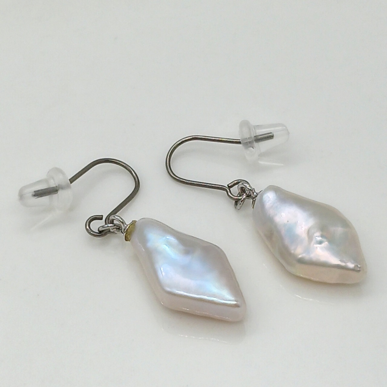 淡水ダイヤ型真珠フックピアス・チタン金具(商品番号12-647)